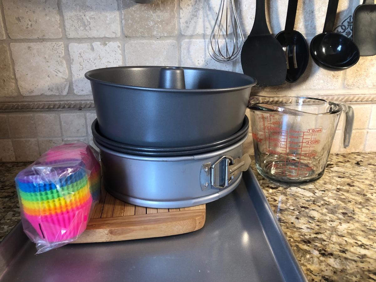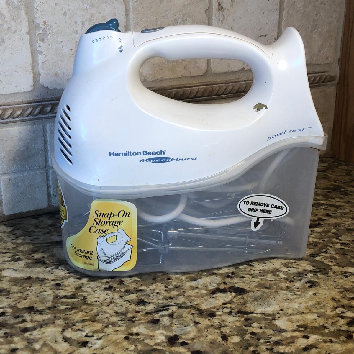LOT 28M: Baking Essentials: Hamilton Beach Hand Mixer Model 62695R, Cake & Sheet Pans, Silicone Cupcake Molds, Mixing Bowls, Mortar & Pestle