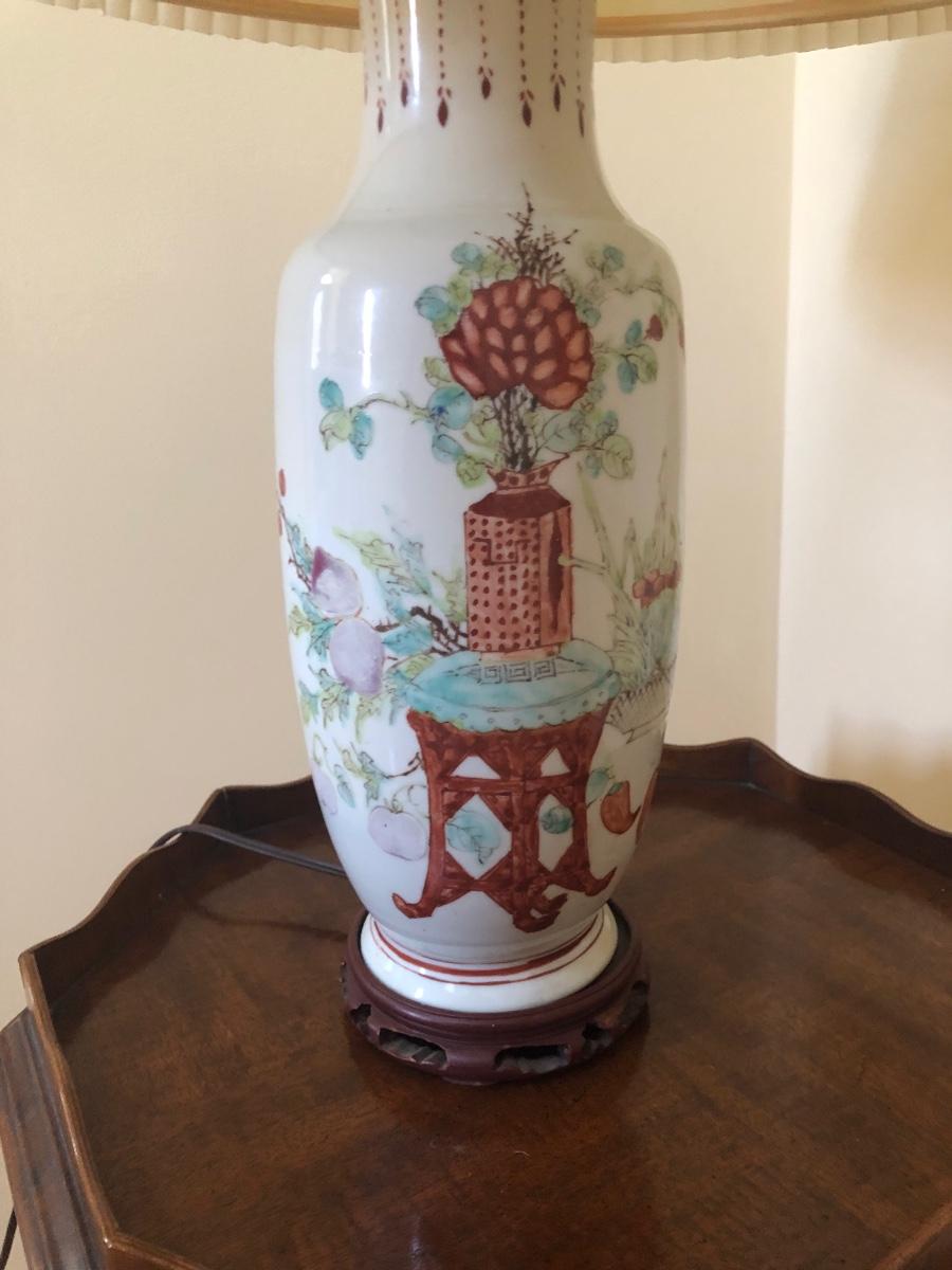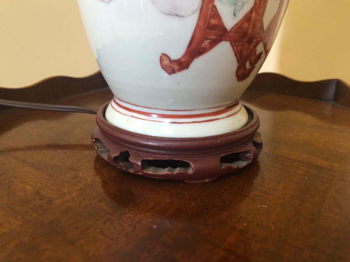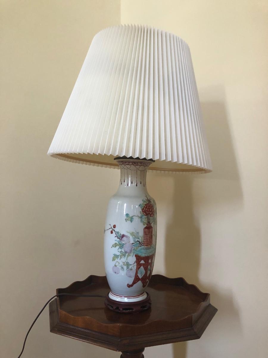 LOT 36M: Vintage Pie Crust Table & East Asian Design Vase Lamp