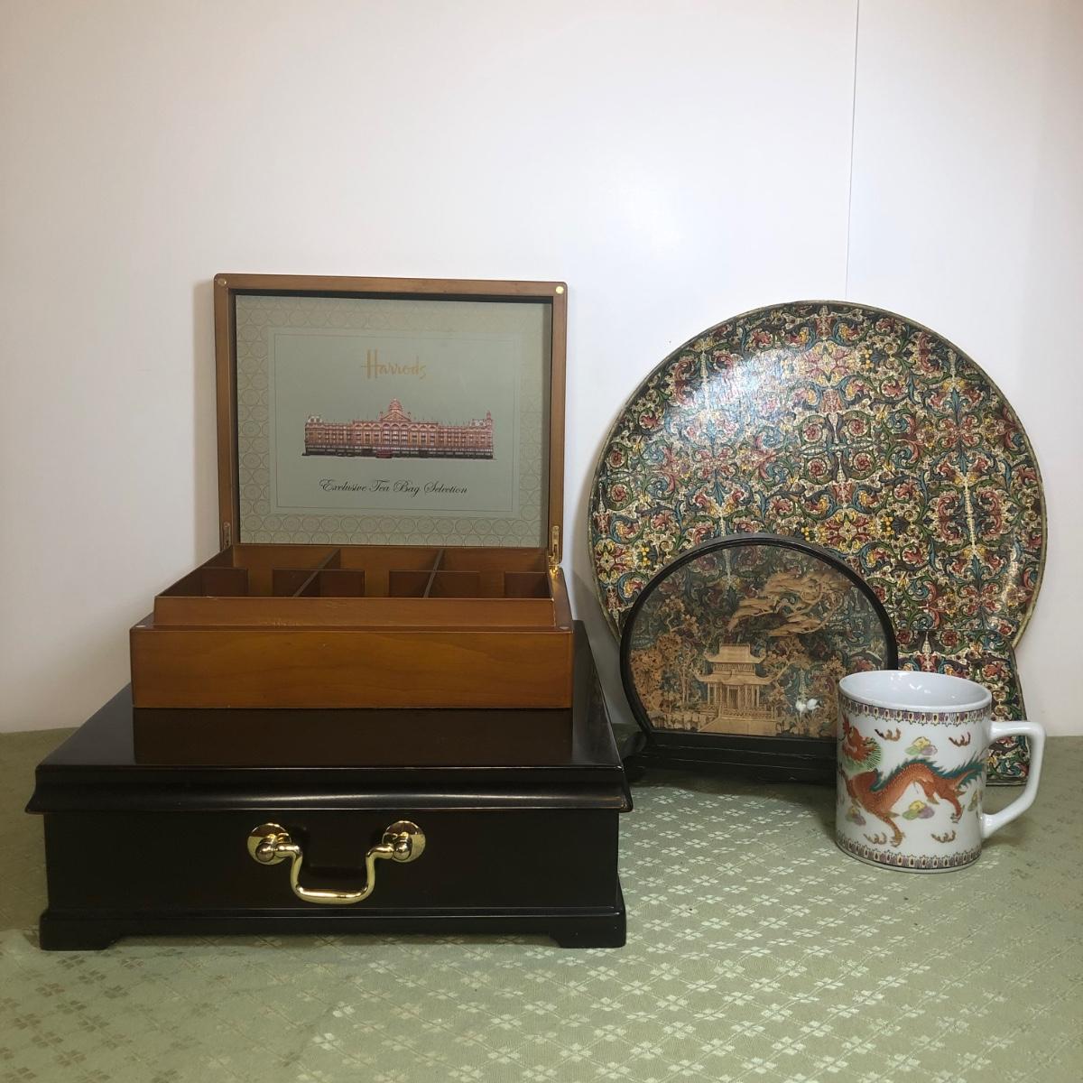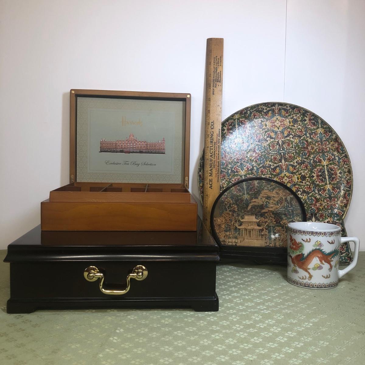 LOT 44M: Tea Boxes w/ Tea, Vintage Chinese Cork Diorama, Vintage Viking Imports Trays