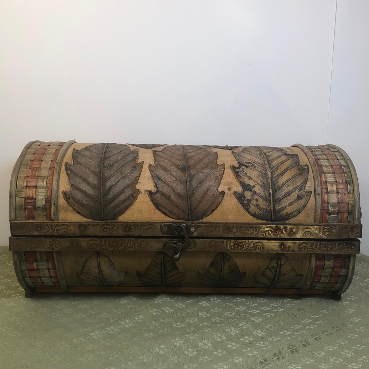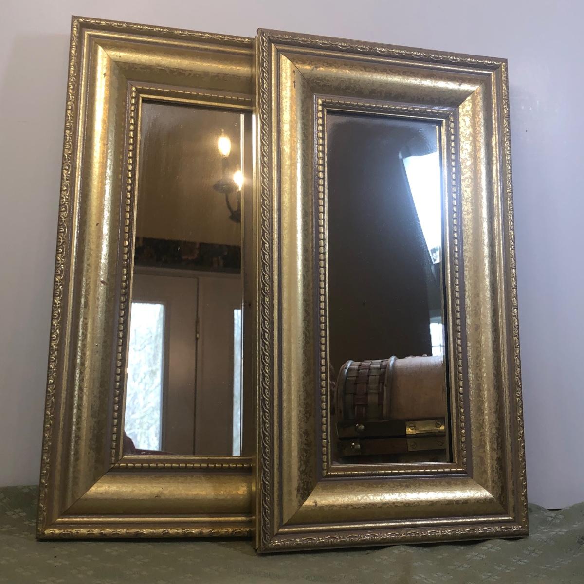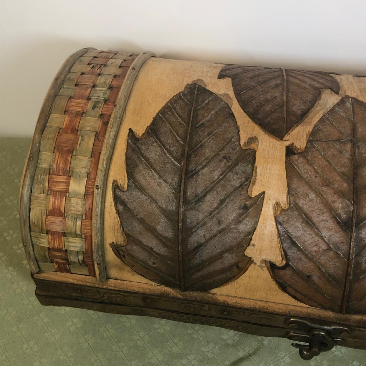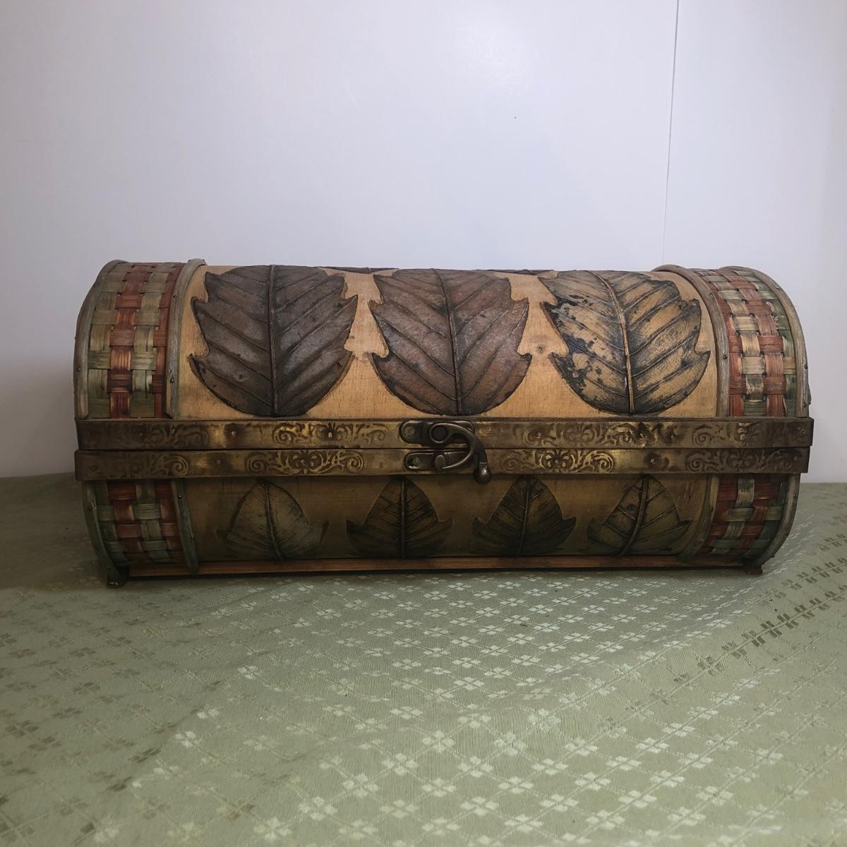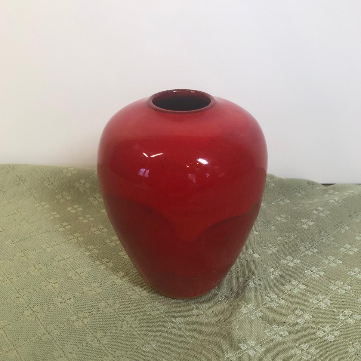 LOT 45M: Signed Terra Cotta Red Drip Vase, Wooden Leaf Box, Lion Bookends & Gilded Mirrors