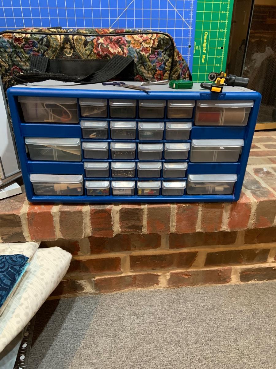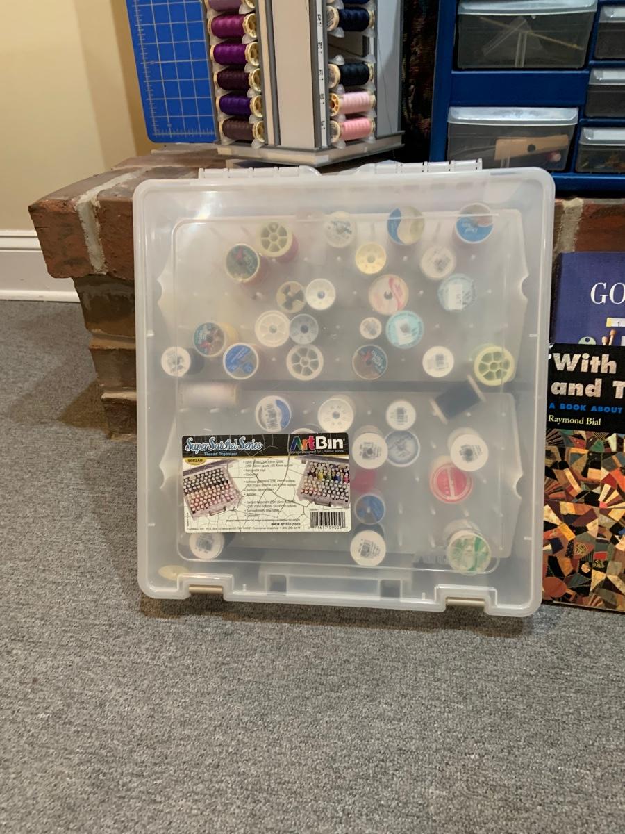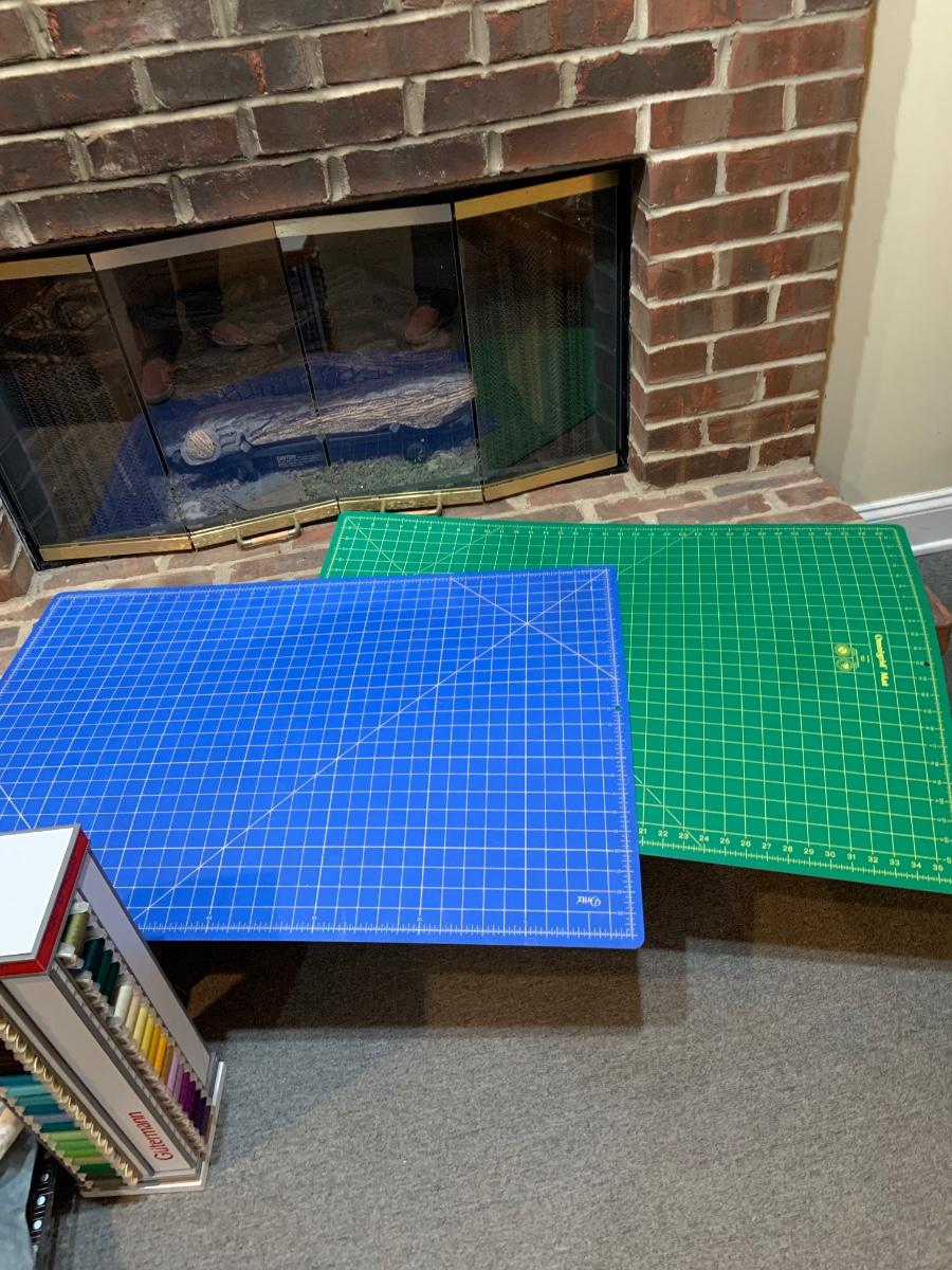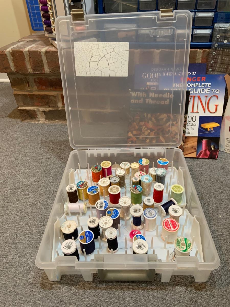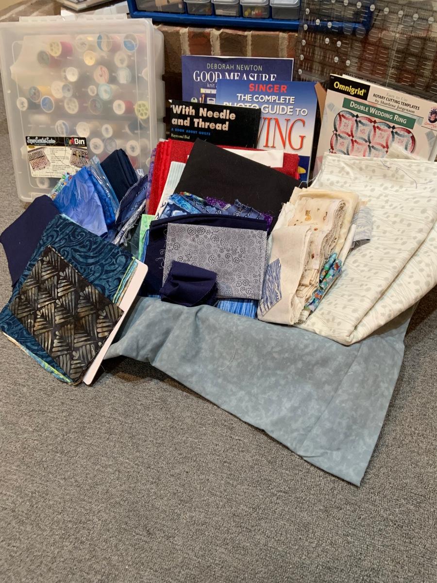 LOT:57G: Large Lot of Sewing and Quilting Supplies Including Books, Patterns, Squares, Thread, Mats and Sewing Machine Cover and Much More.