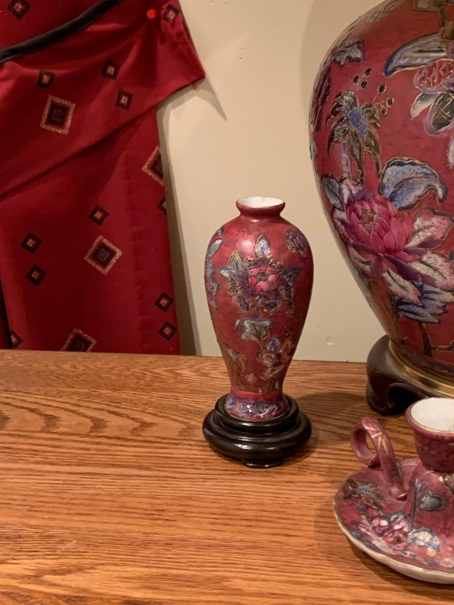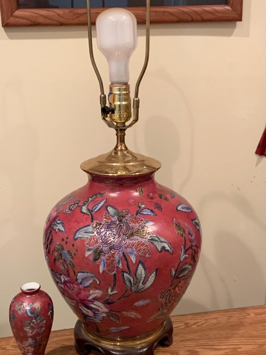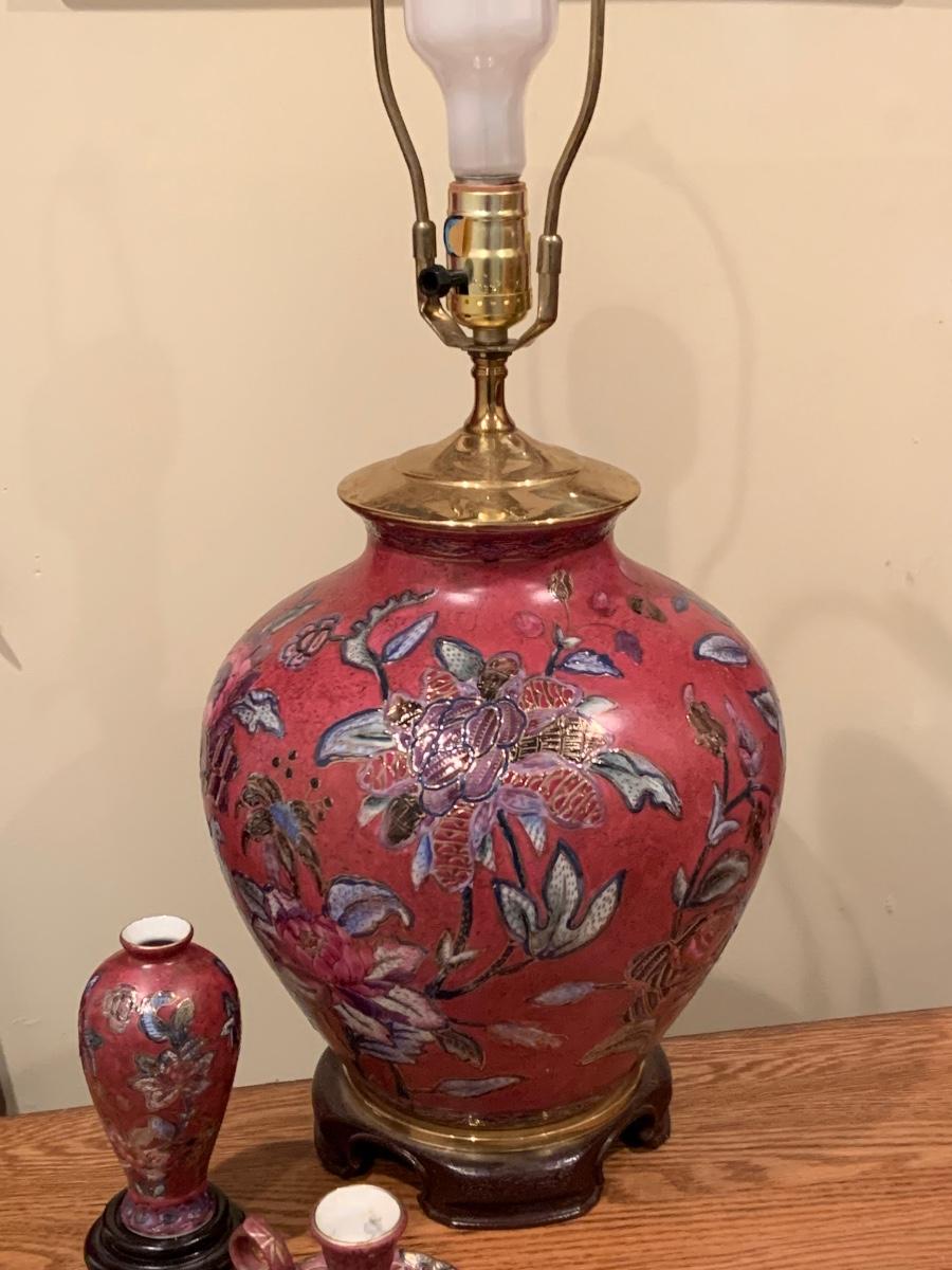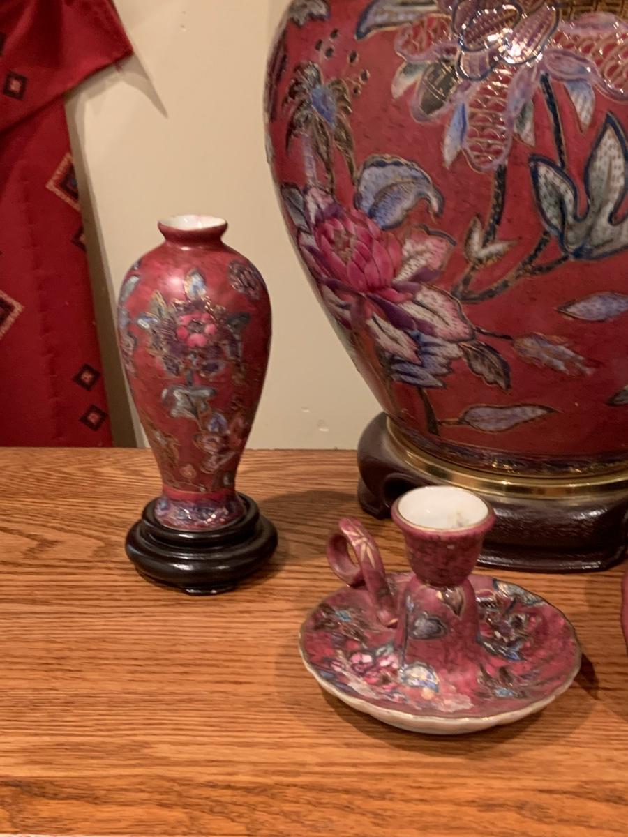 LOT:61G: Ginger Jar Style Lamp, Vase, Candle Holder and Box w/Floral Motify