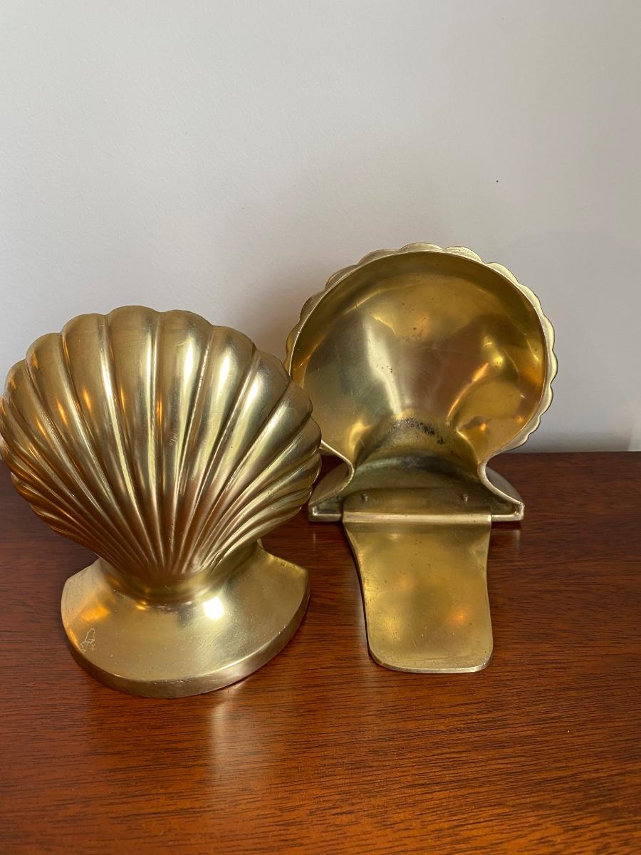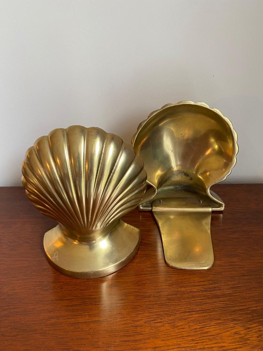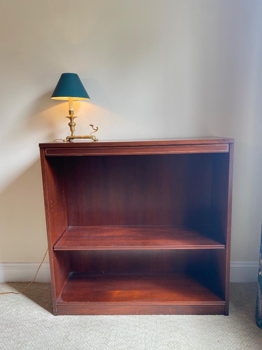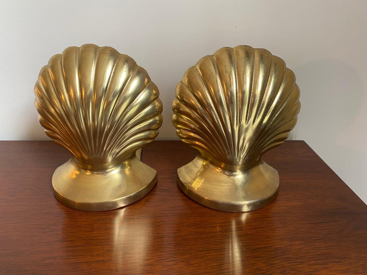 LOT 73C: Wood Bookshelf, Lamp and Brass Shell Bookends