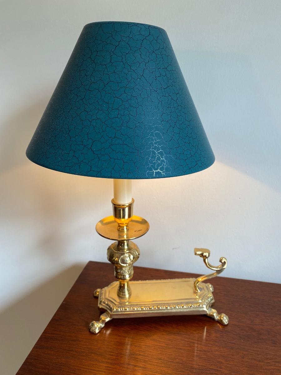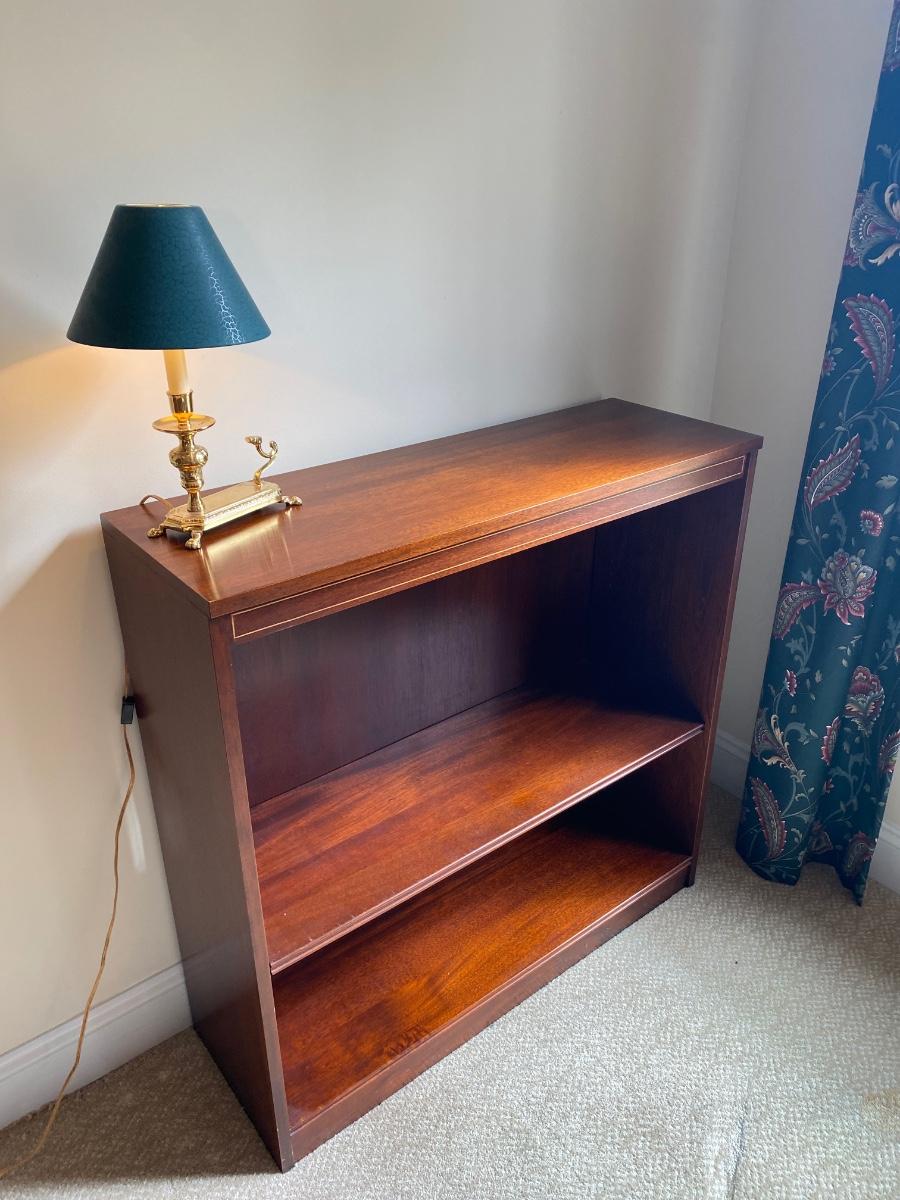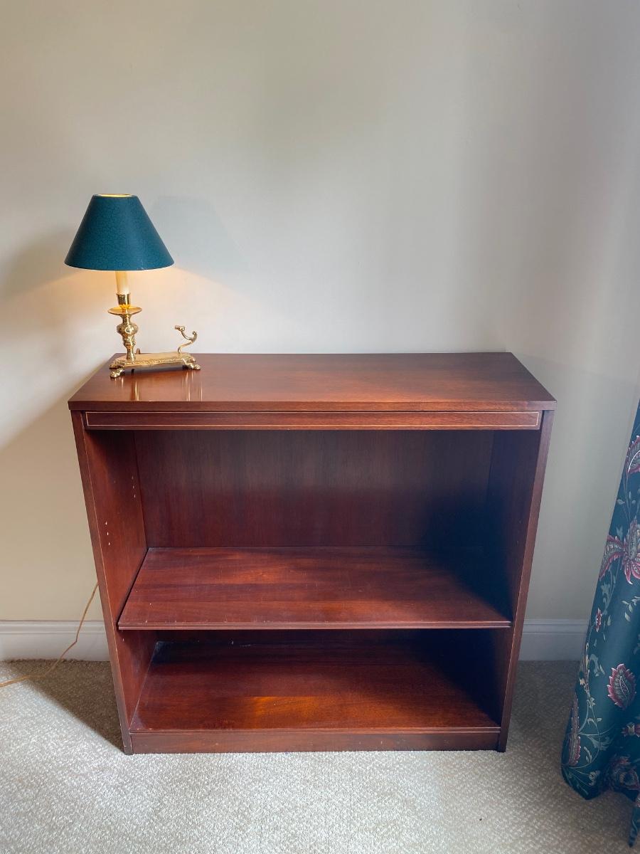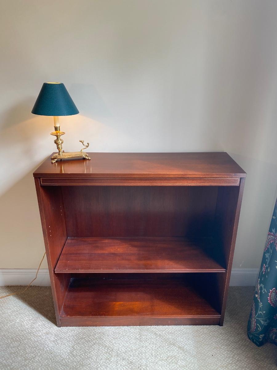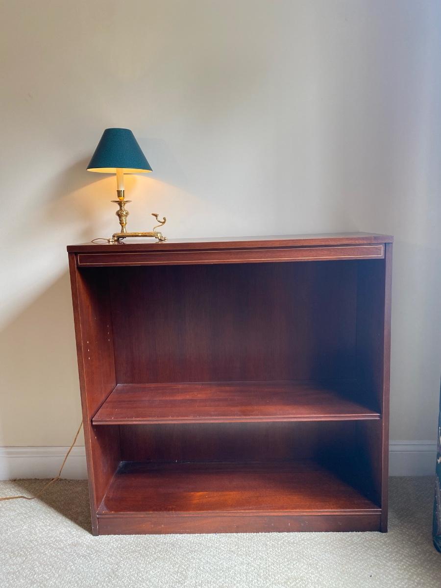 LOT 73C: Wood Bookshelf, Lamp and Brass Shell Bookends