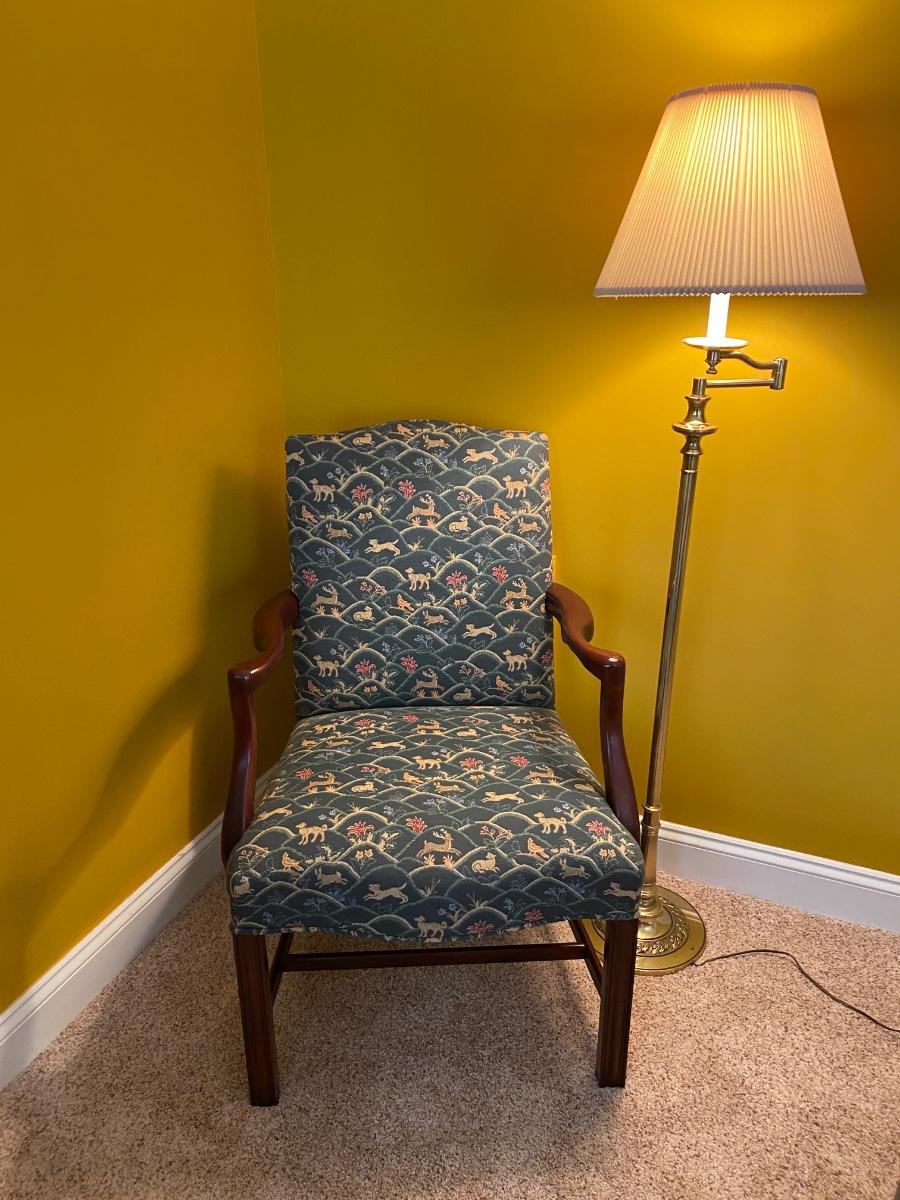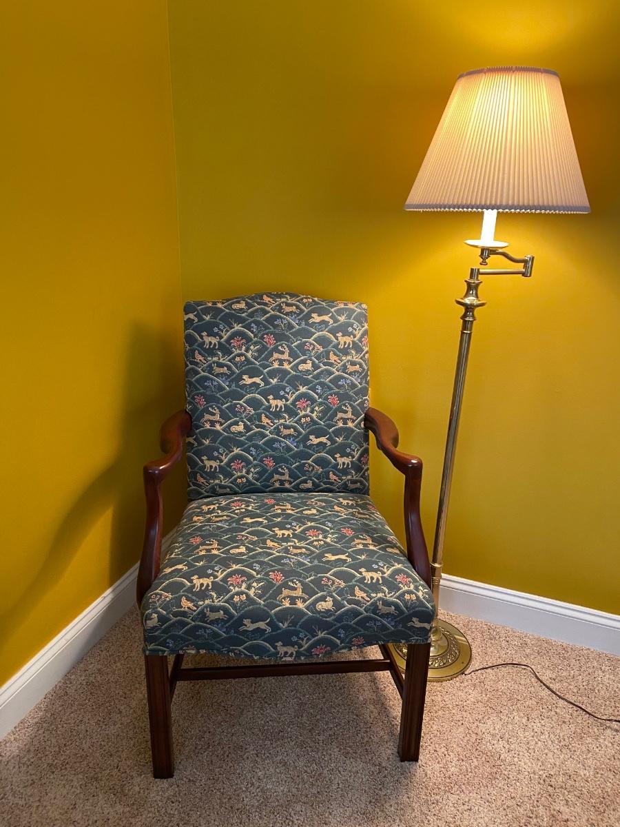 LOT 80C: Upholstered Accent Chair by Century &Floor Lamp