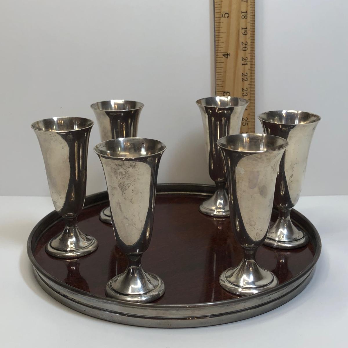 LOT 97M: Vintage Alvin Sterling Silver Cordials & Tray (122.24g)