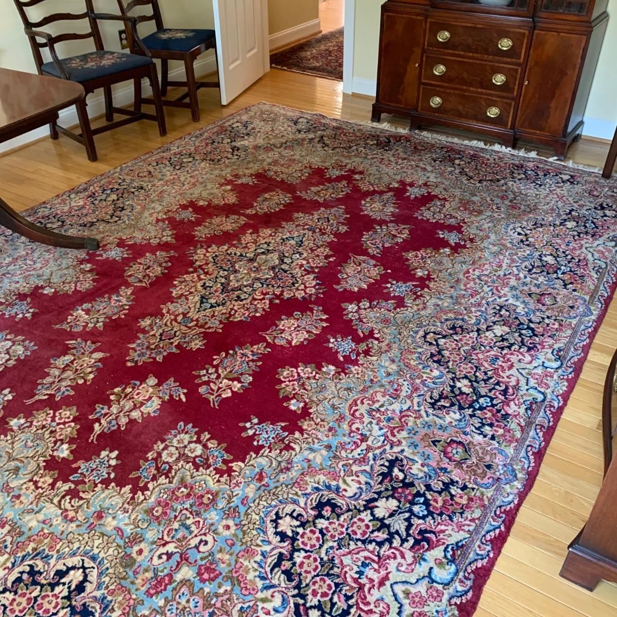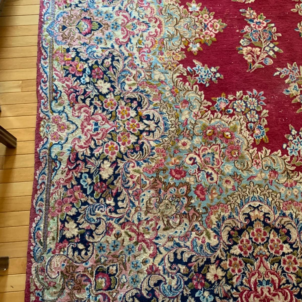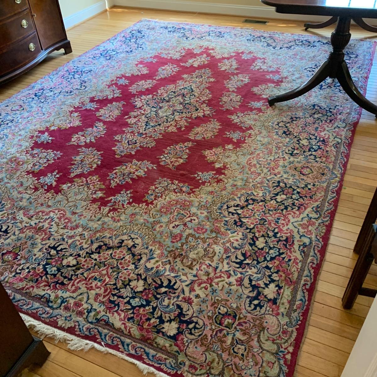 Large area rug measures about 105" x 146" - Rug is in used condition with minor wear spots