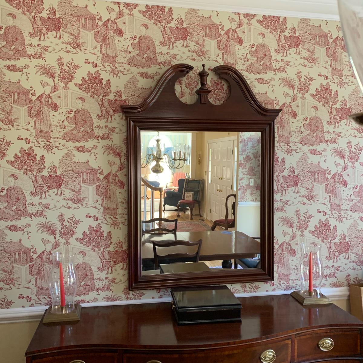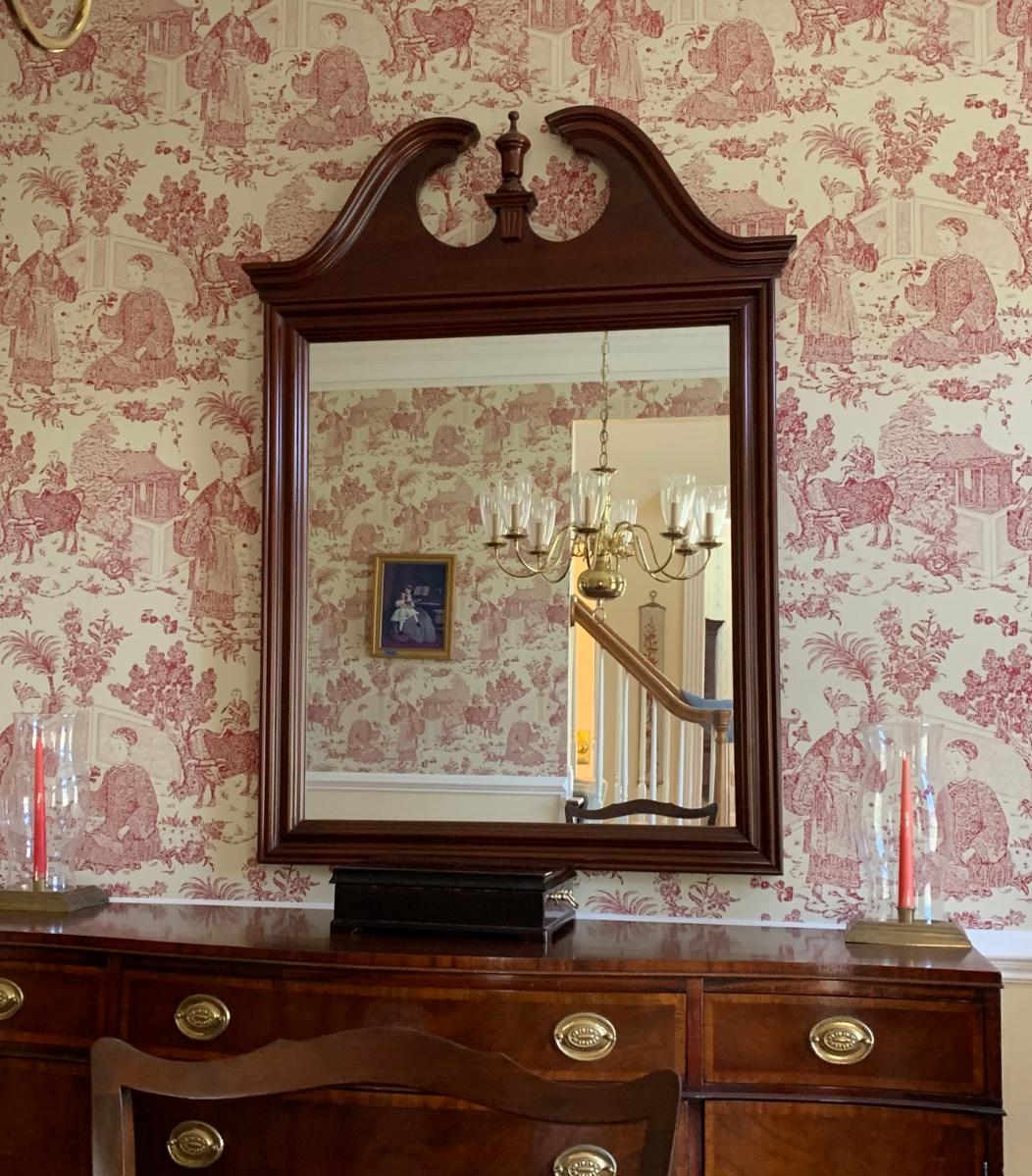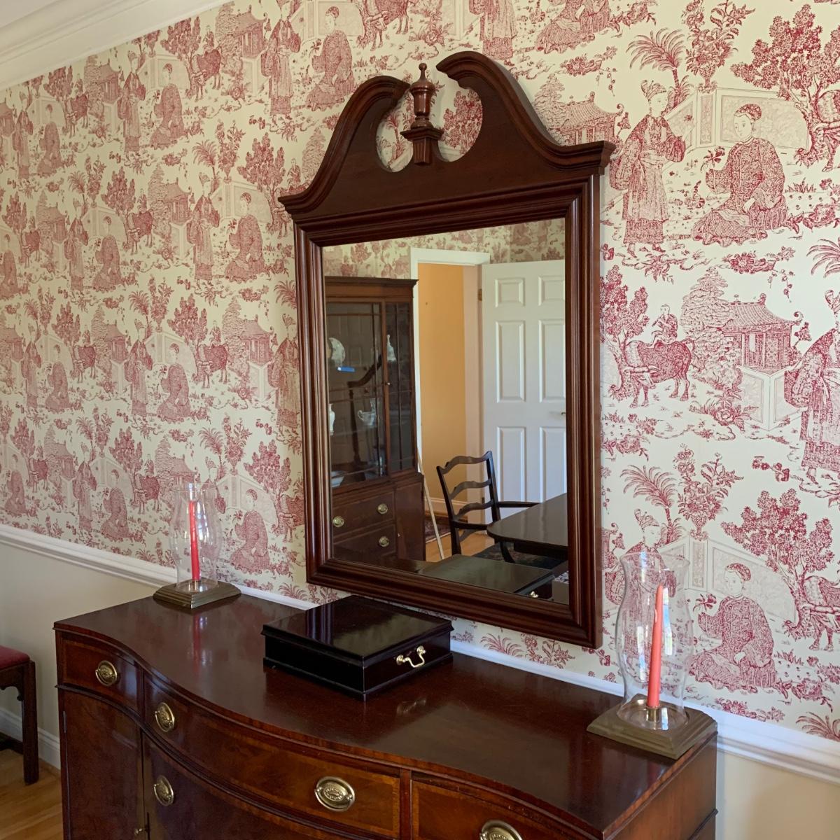 LOT 104R: Vintage Colonal Style Scroll Top Wall Mirror