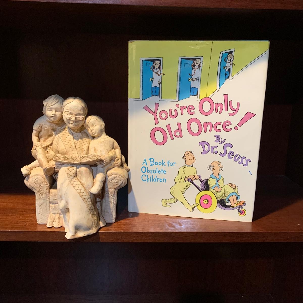LOT 109R: Dr Seuss "You're Only Old Once!" Book along with a Statue of a Grandmother Reading.