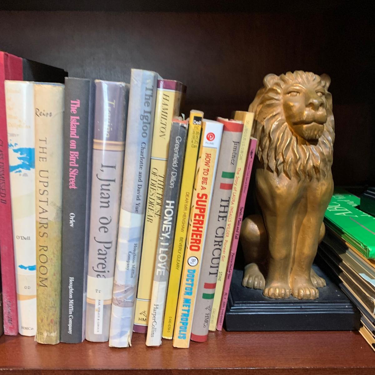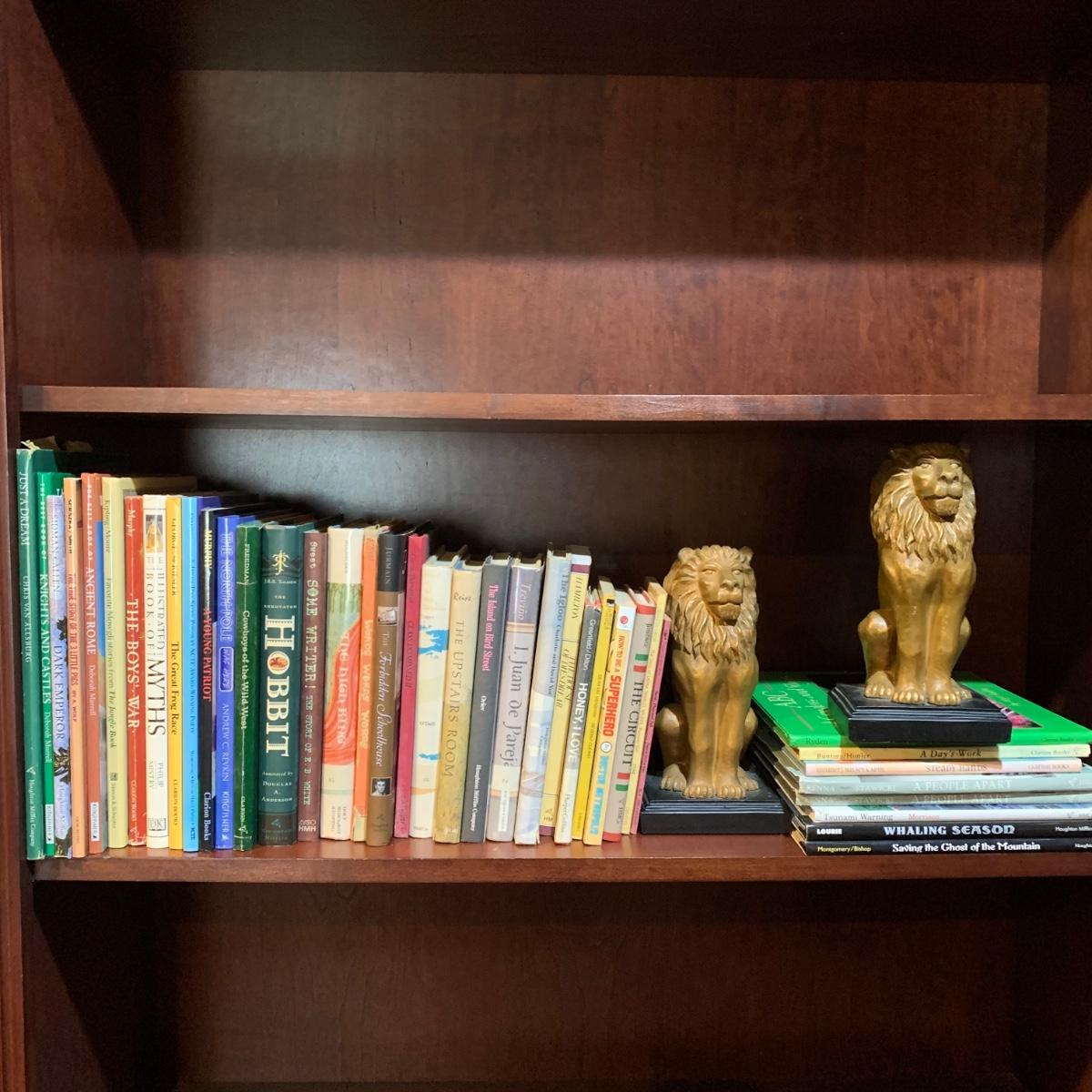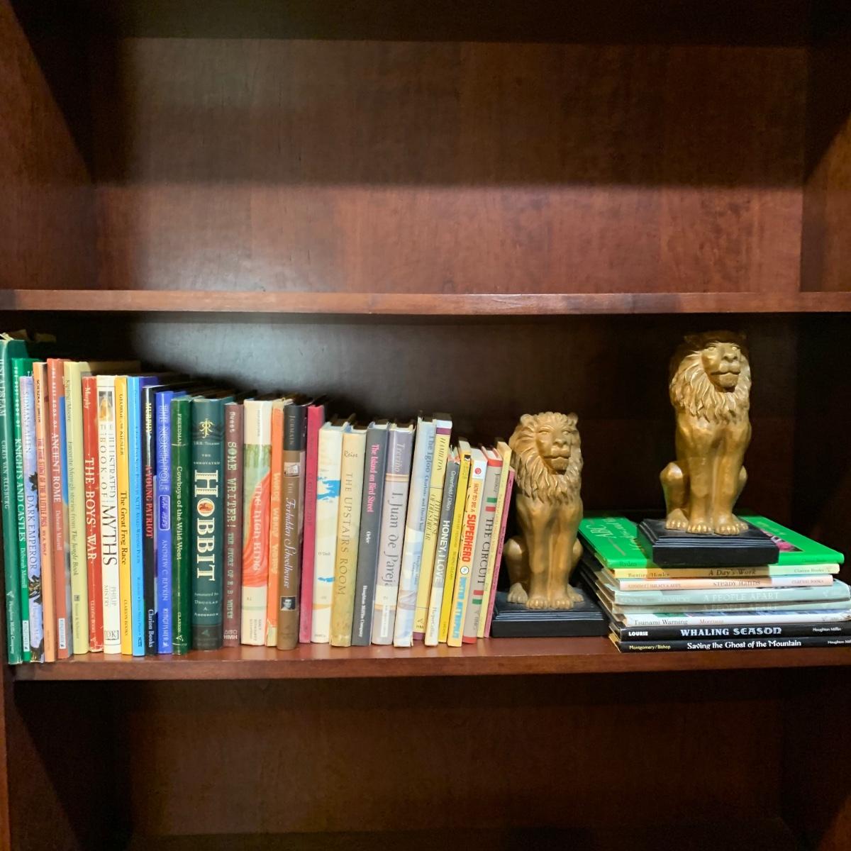 LOT 111R:Classic Young Adult Literature Collection of Hard Back Books Including Tolkien's "The Hobbit" and other Contemporary and Classical Selections and 2 Lion Book Ends