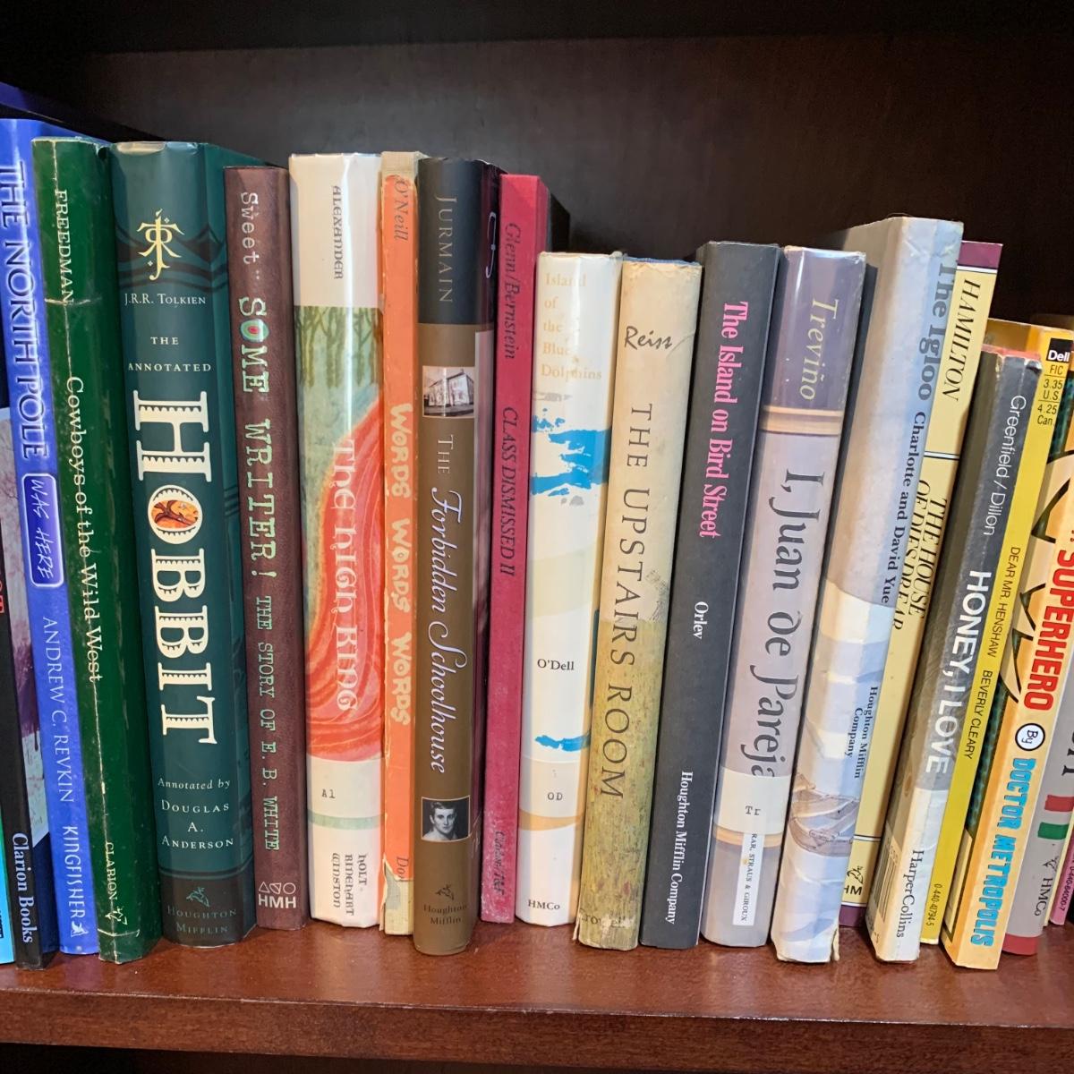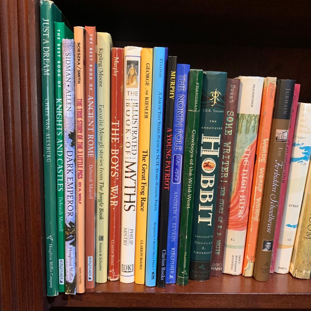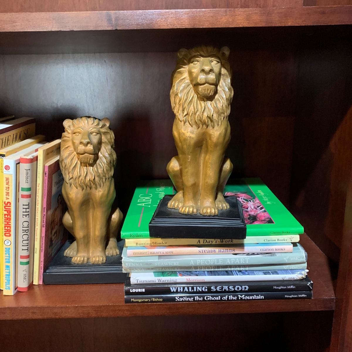 LOT 111R:Classic Young Adult Literature Collection of Hard Back Books Including Tolkien's "The Hobbit" and other Contemporary and Classical Selections and 2 Lion Book Ends