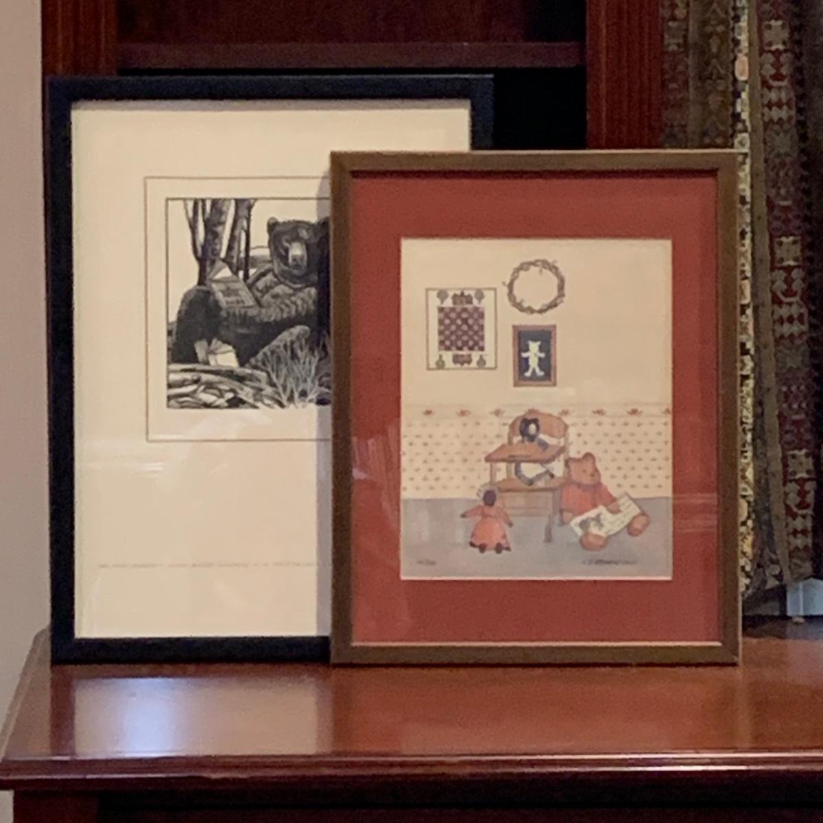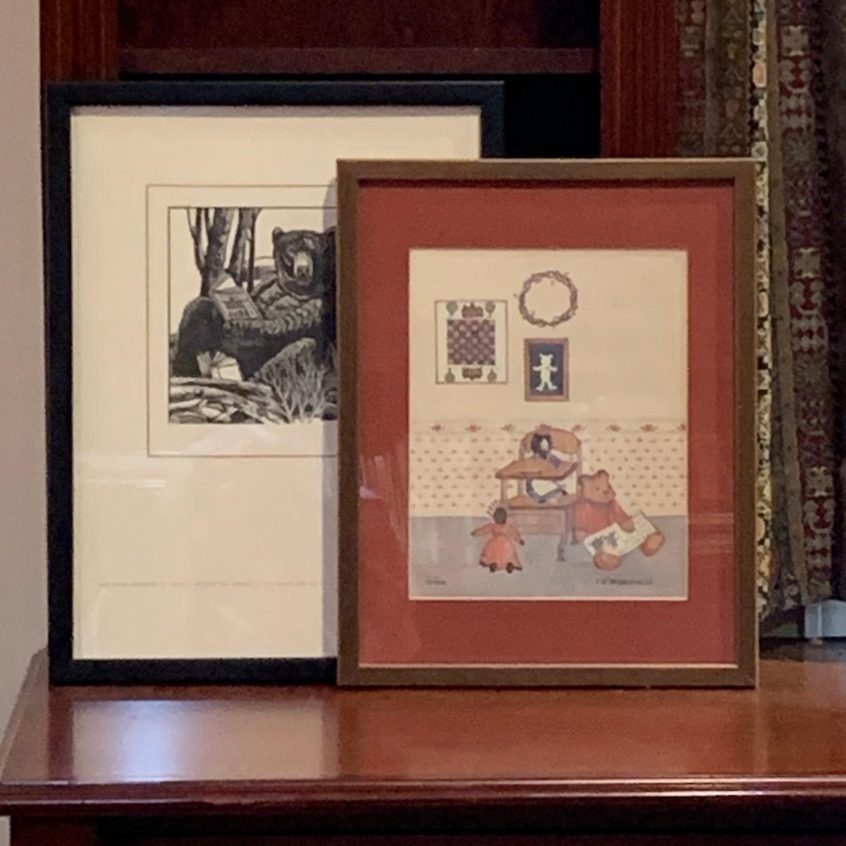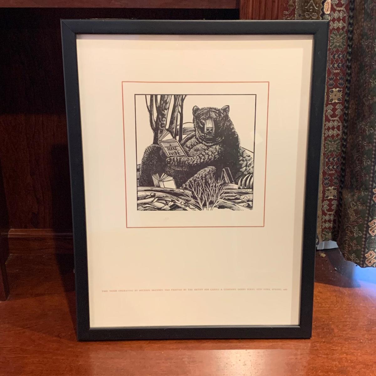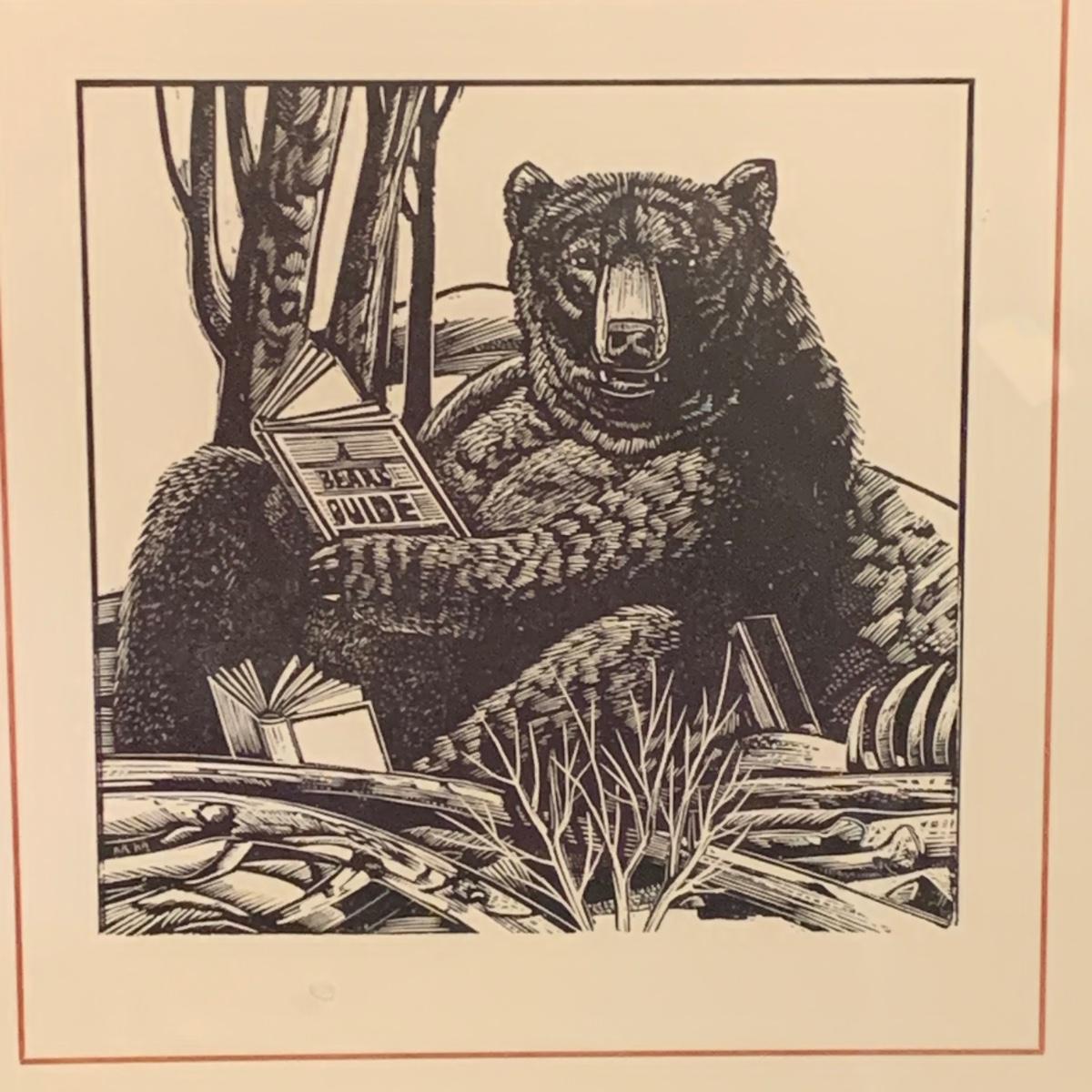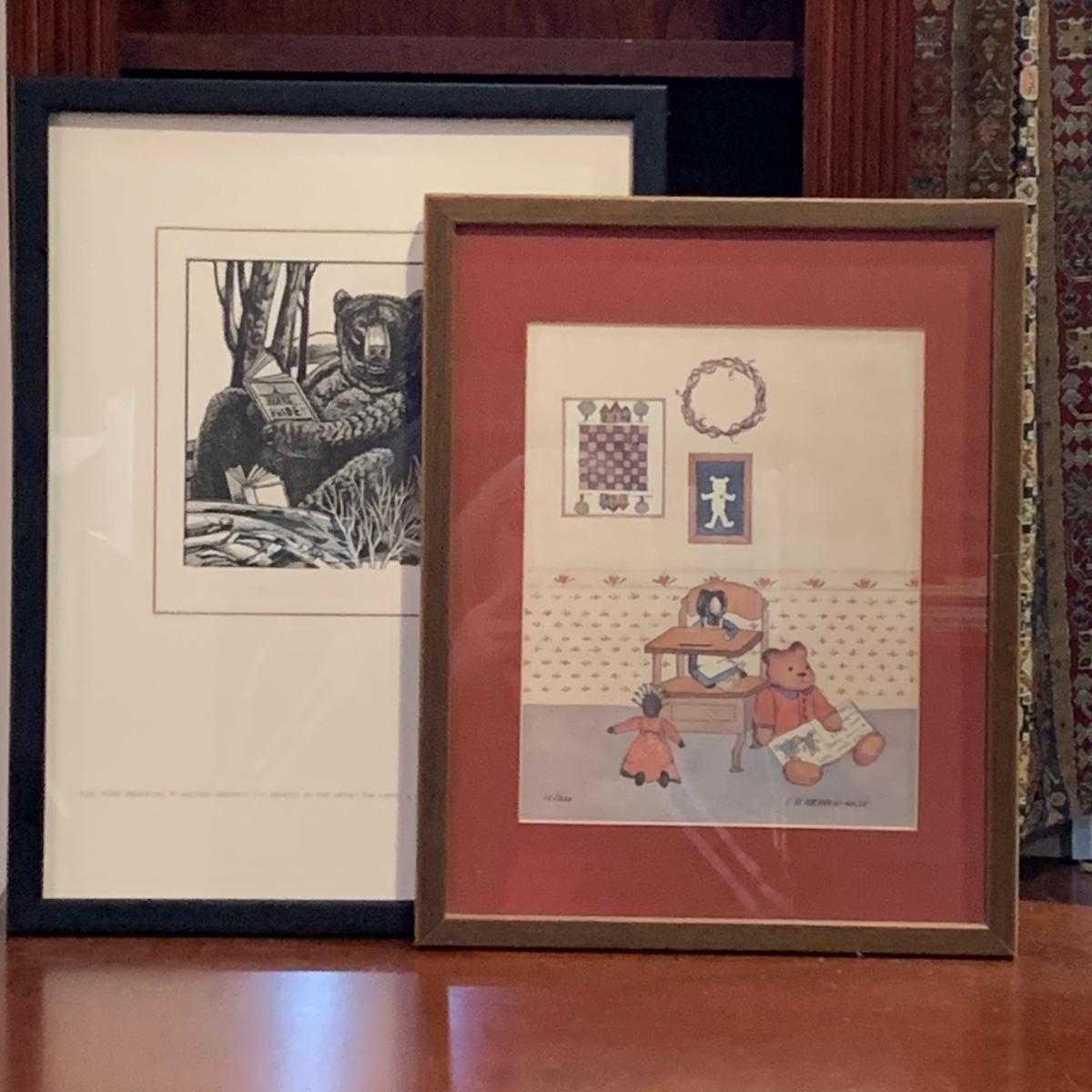 LOT:118: 2 Pieces of Folk Art Including Michael McCurdy Wood Engraving Depicting a Bear Reading and PJ Rankin-Hults Numbered Print