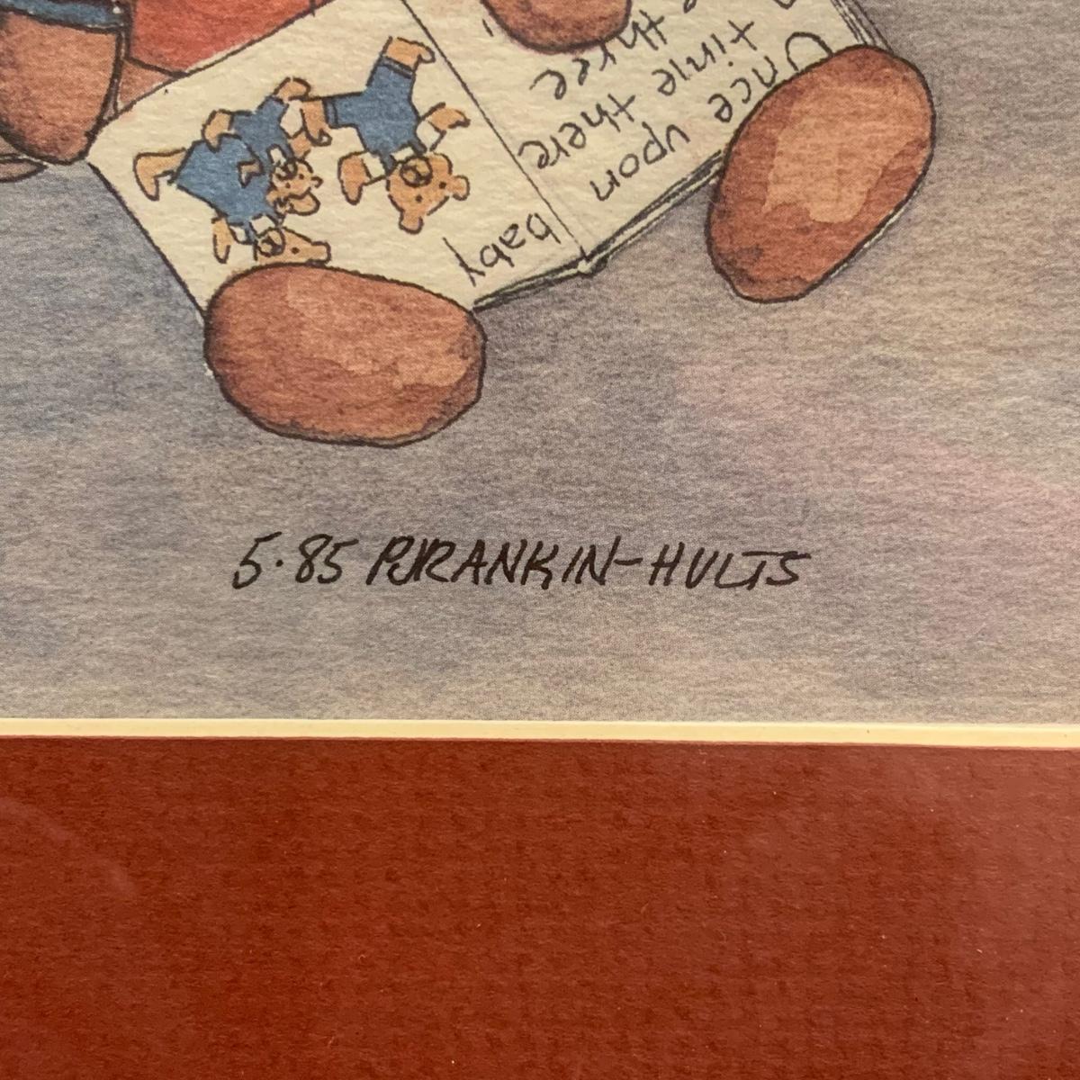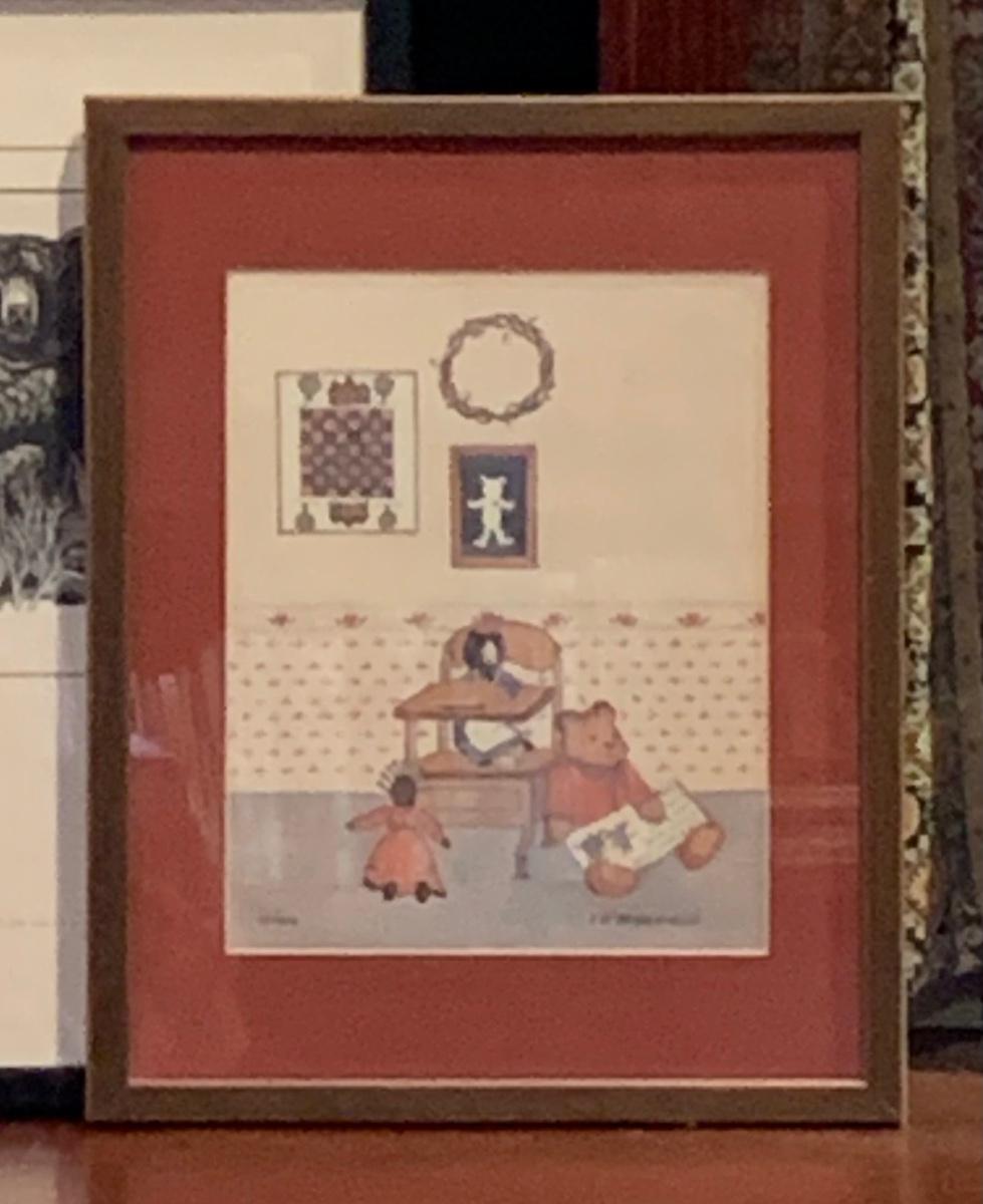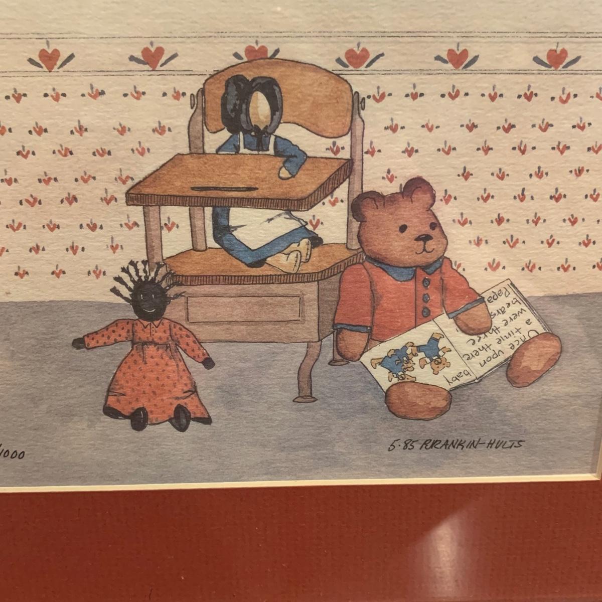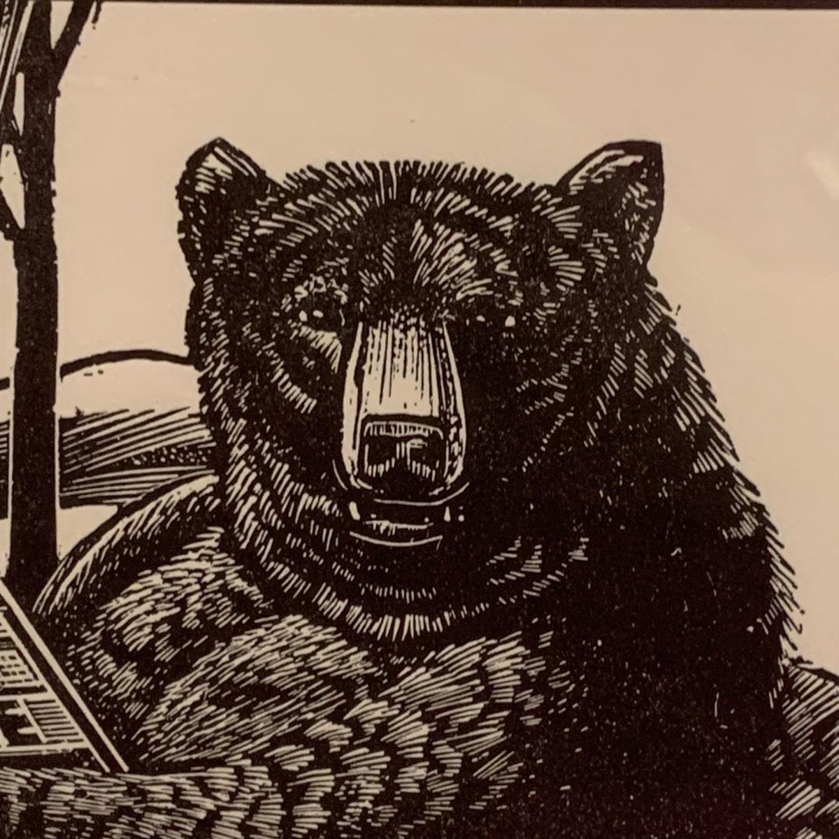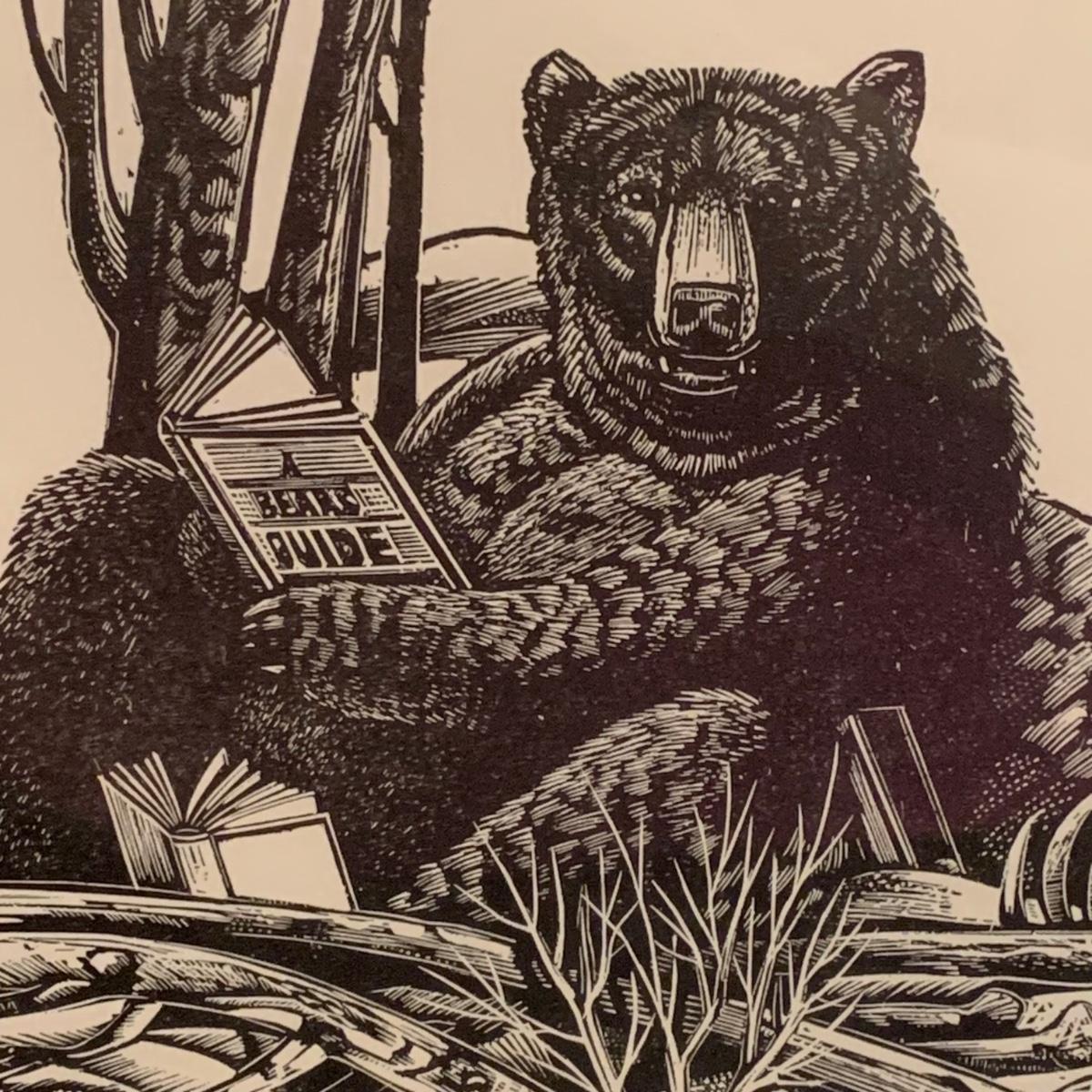 LOT:118: 2 Pieces of Folk Art Including Michael McCurdy Wood Engraving Depicting a Bear Reading and PJ Rankin-Hults Numbered Print