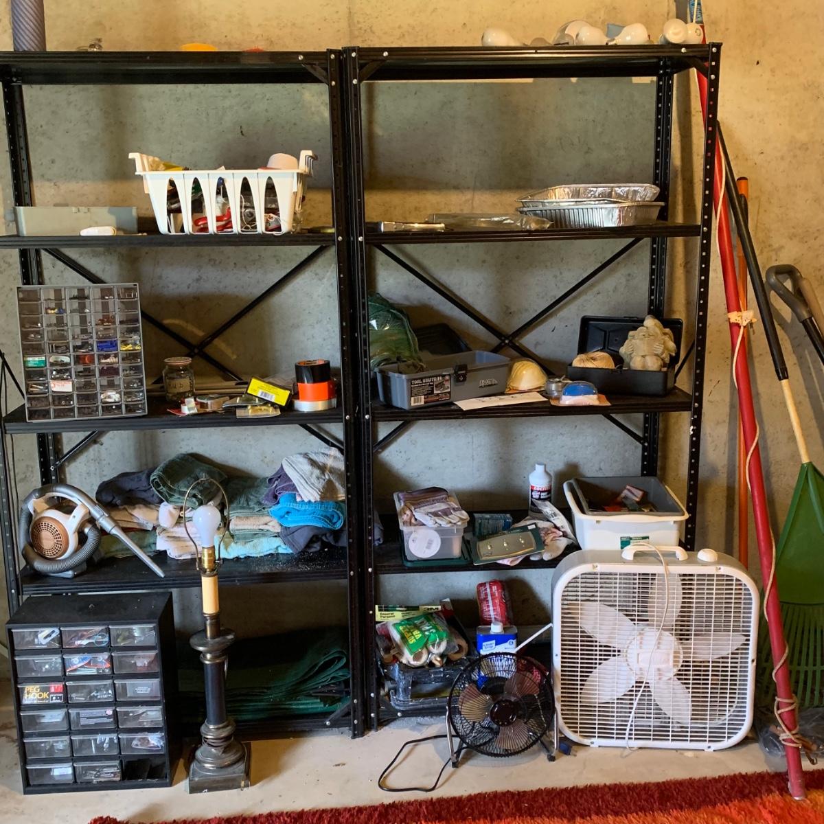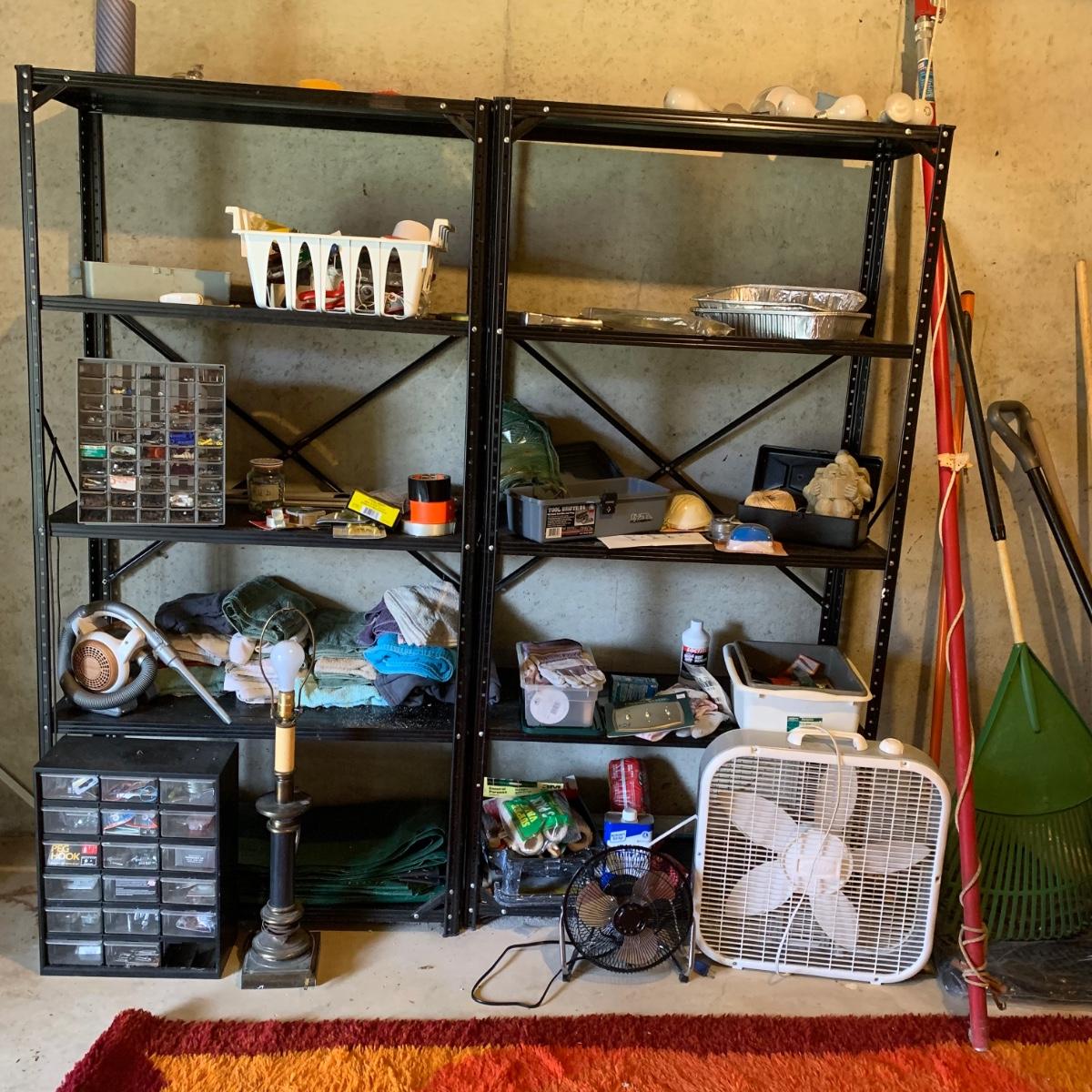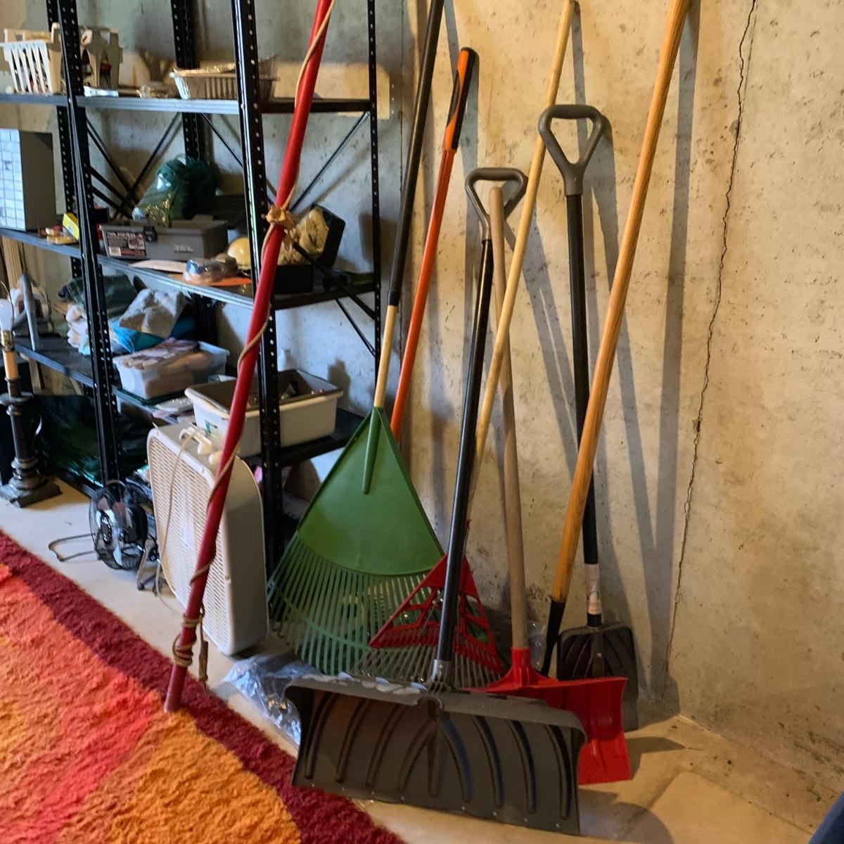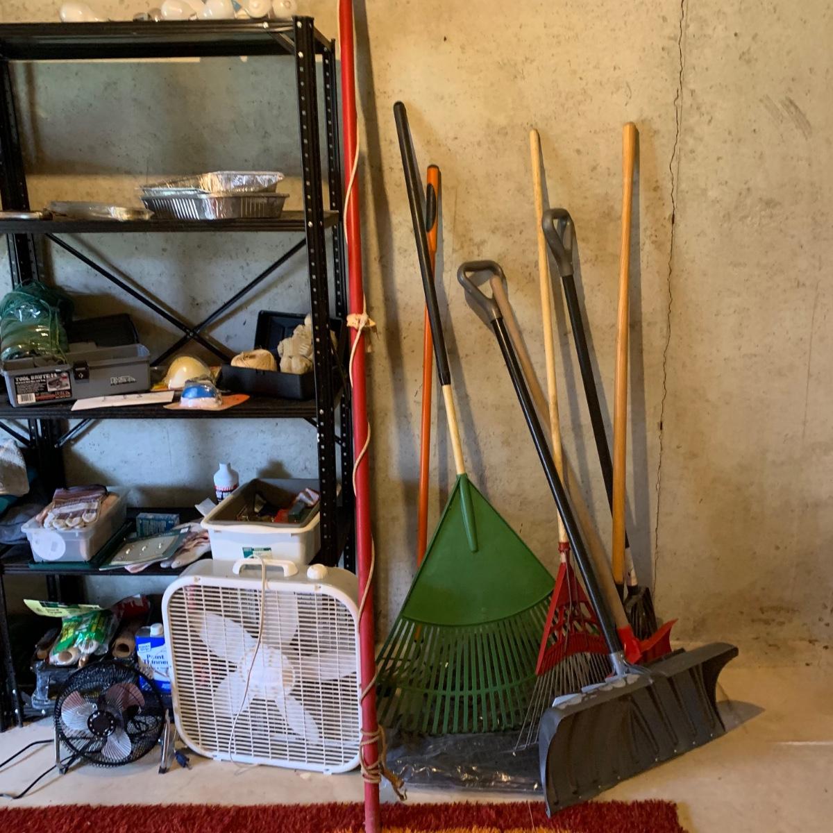 LOT125R: Metal Shelving, Tools, Rakes & Much More