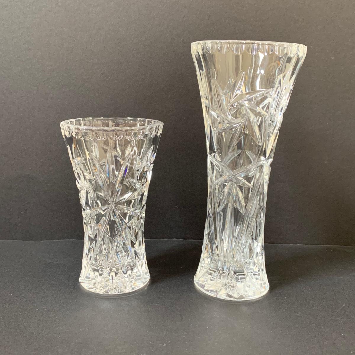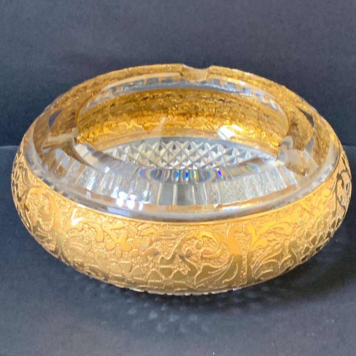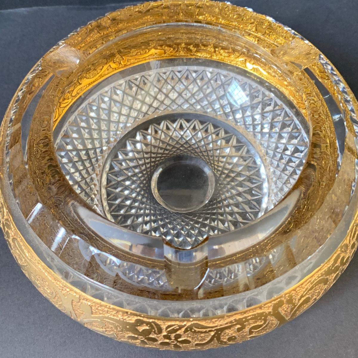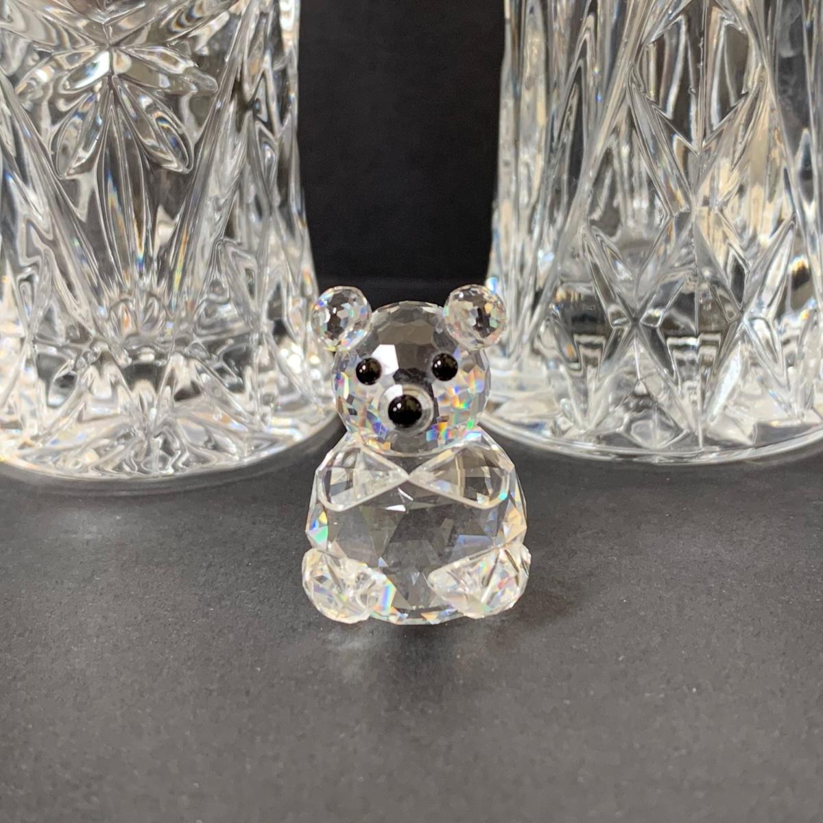 LOT 133R: Elegant Crystal Collection: Decanter, Vases, Gold-Rimmed Ashtray, Miniature Bear & More