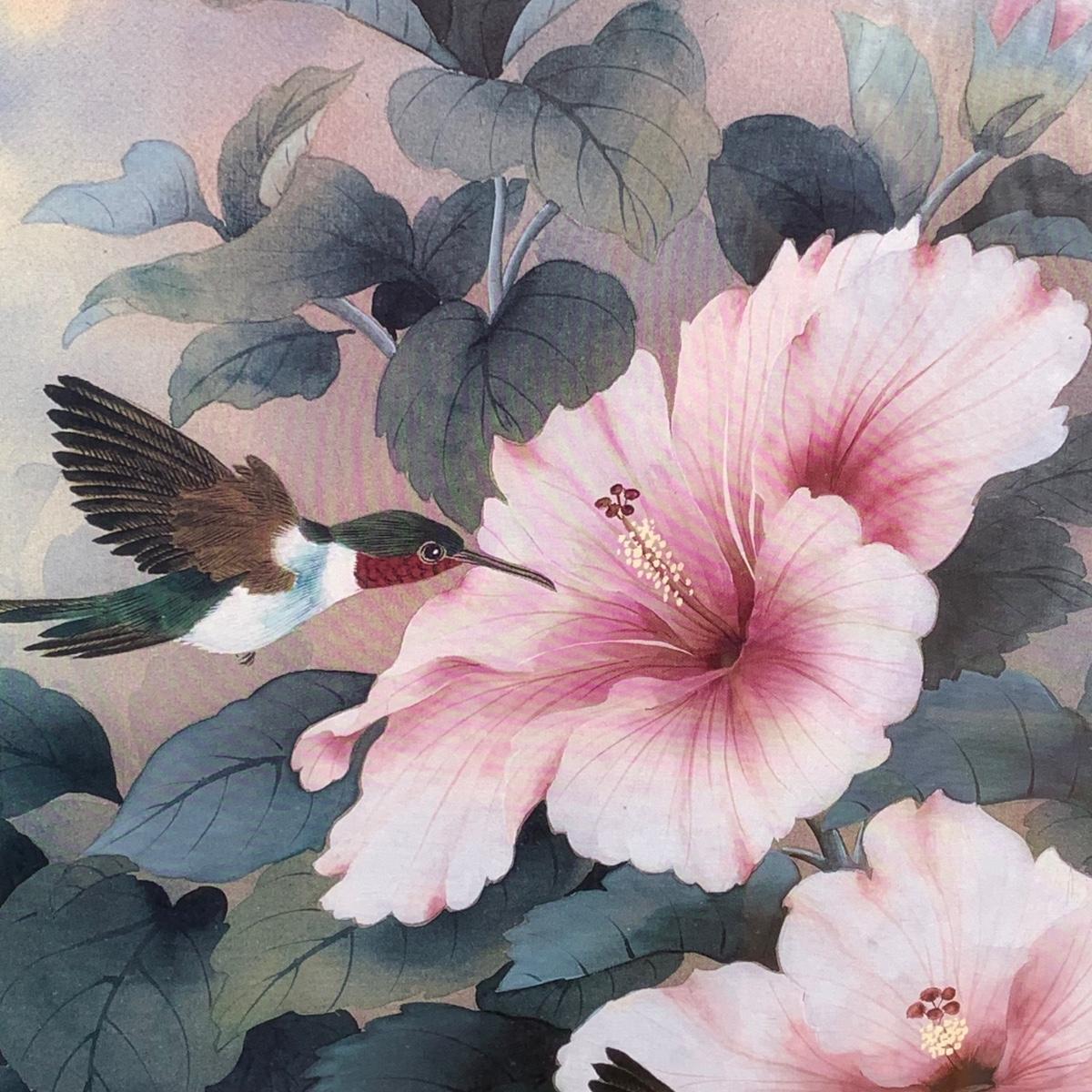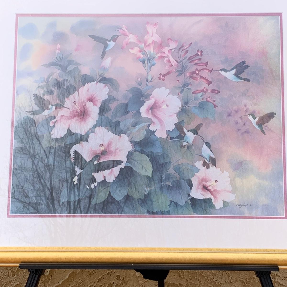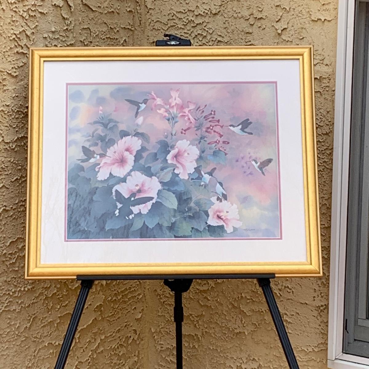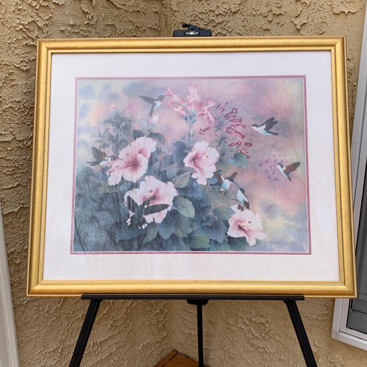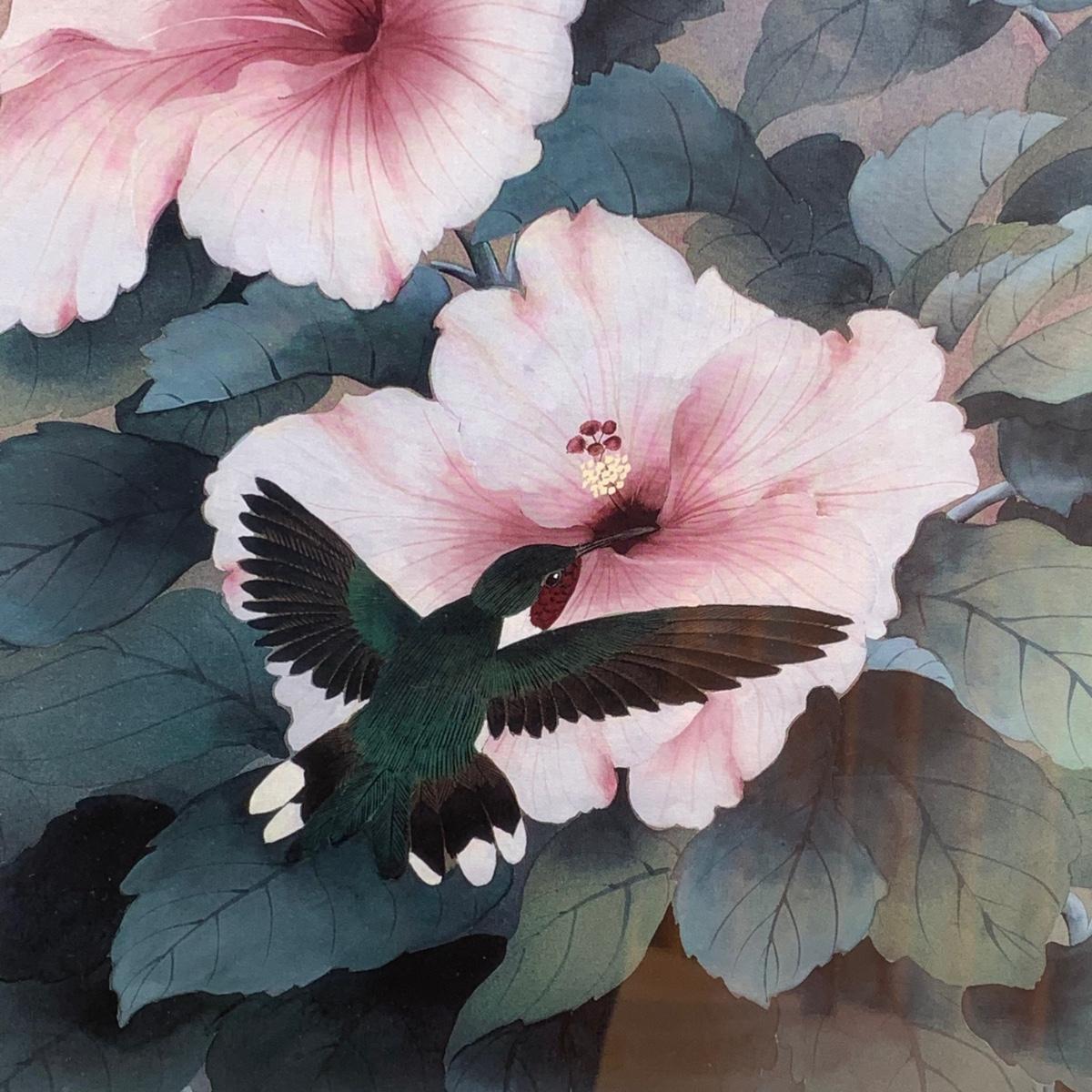 LOT 144R: Signed Framed Humming Bird & Hibiscus Art