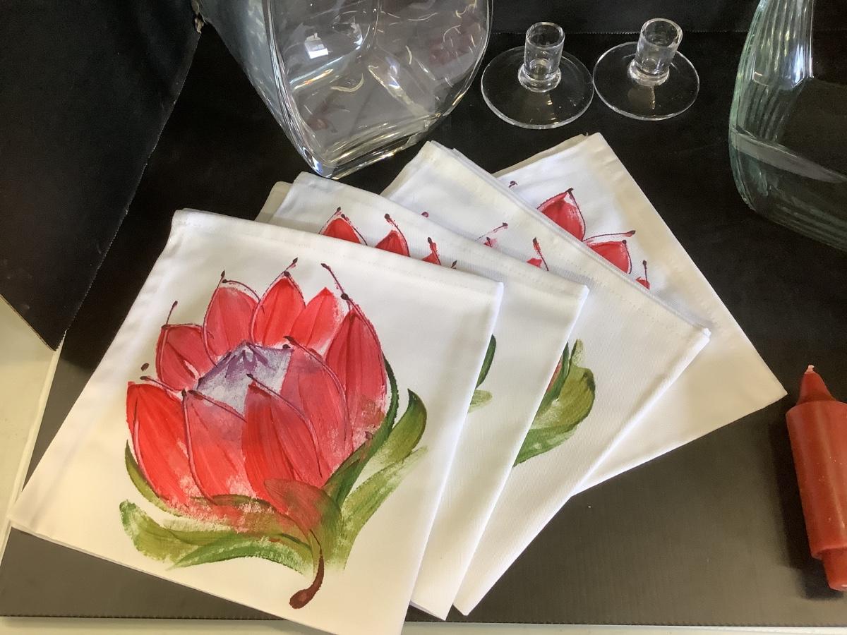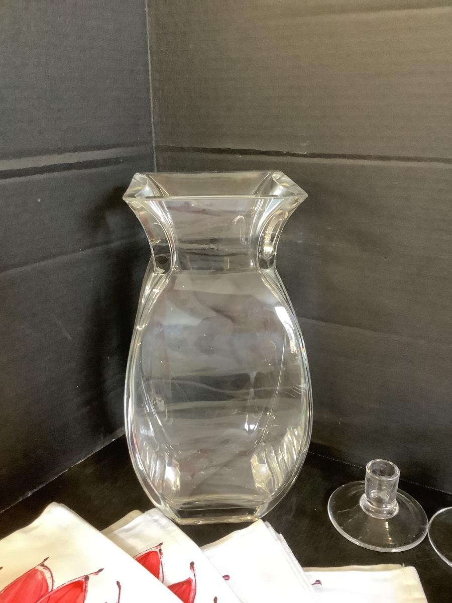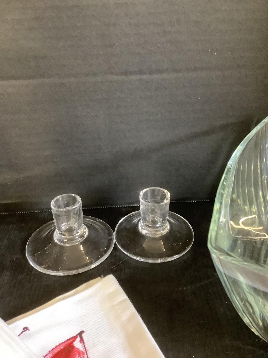 Lot 847. Glass Vase/Bowl,Candlesticks, Handpainted Floral Napkins