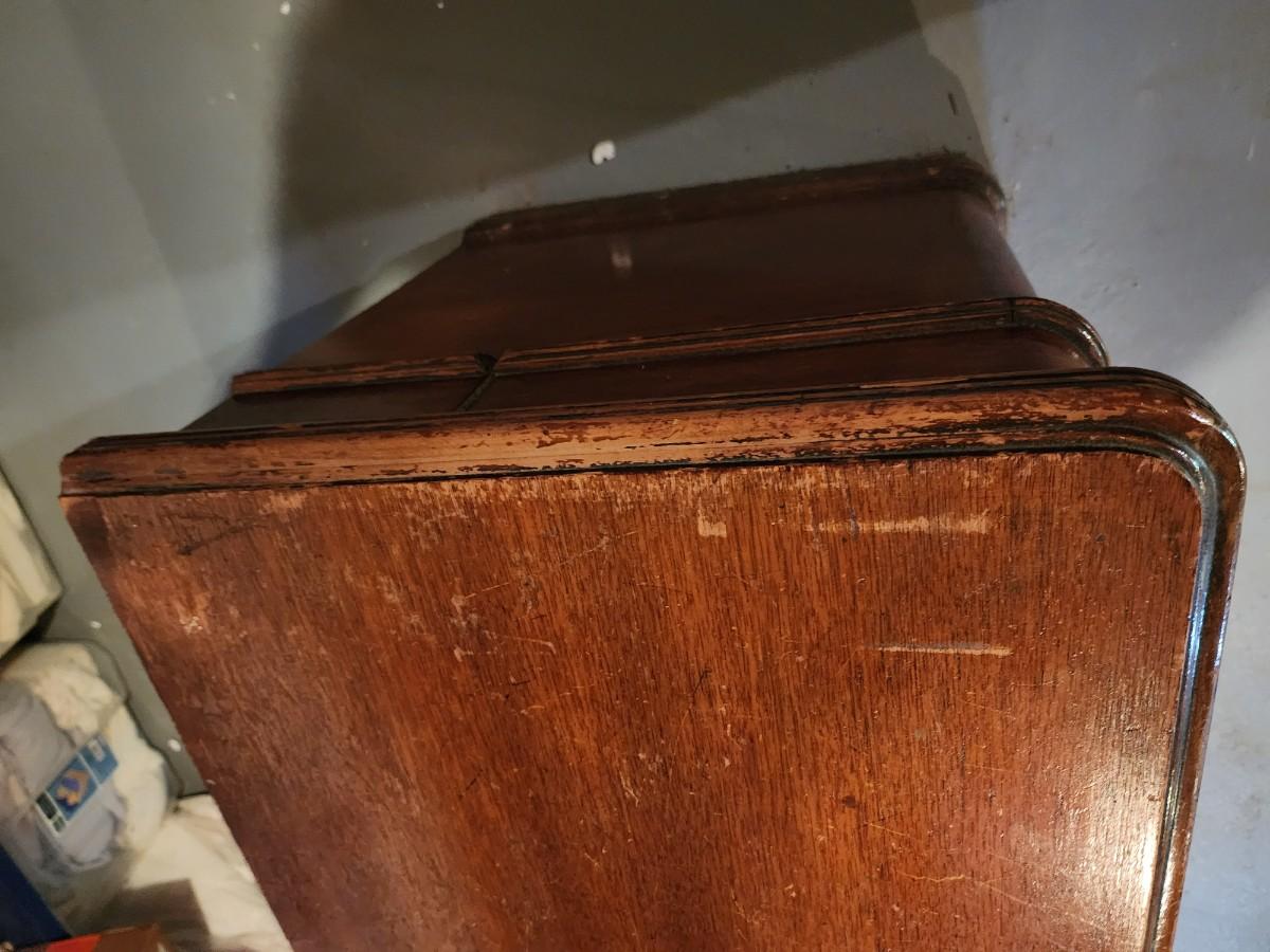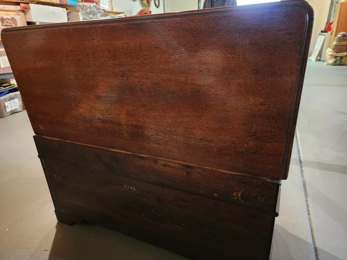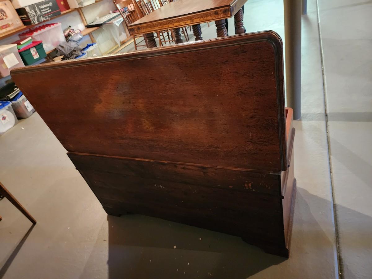 45" W x 22" H x 18.5 D HAS ORIGINAL KEY! Close up PICS show slight wear, THIS is in In beautiful condition considering it is over 80 YEARS OLD!