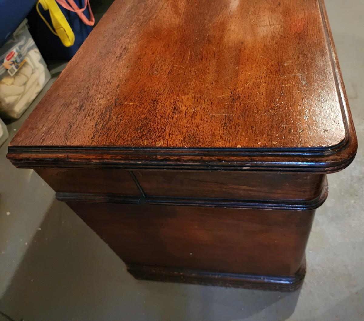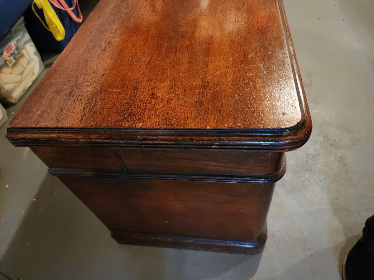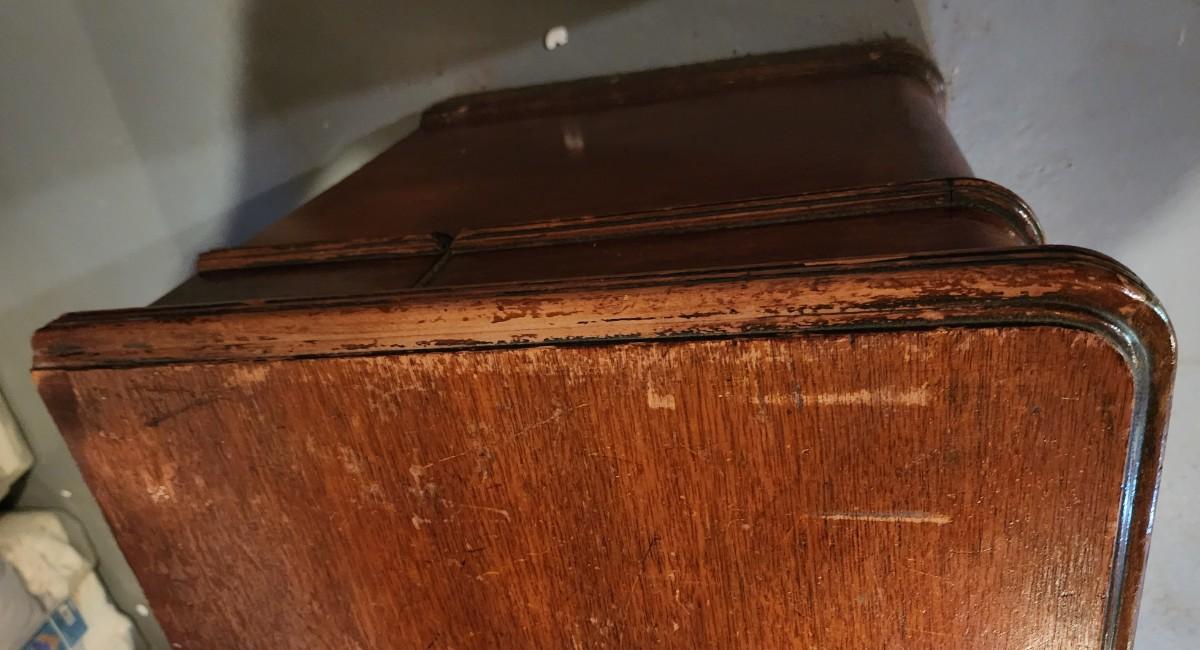 45" W x 22" H x 18.5 D HAS ORIGINAL KEY! Close up PICS show slight wear, THIS is in In beautiful condition considering it is over 80 YEARS OLD!