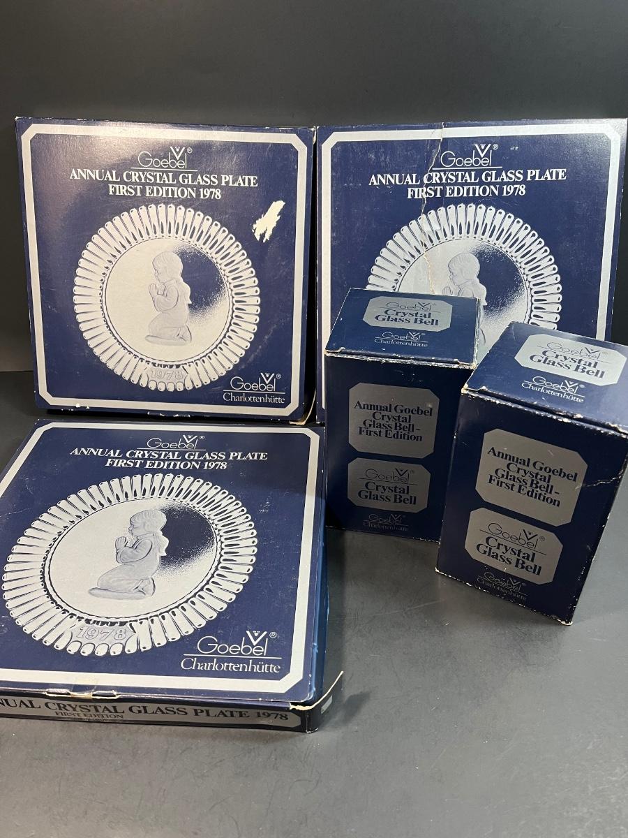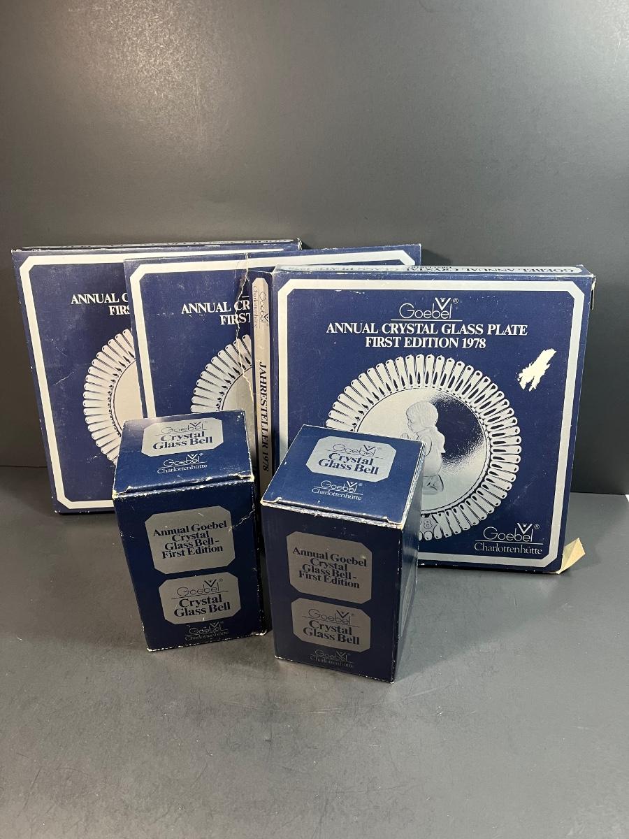 LOT 20: 1978 Goebel Crystal Annual Plates (3) and Bells (2) in Original Boxes