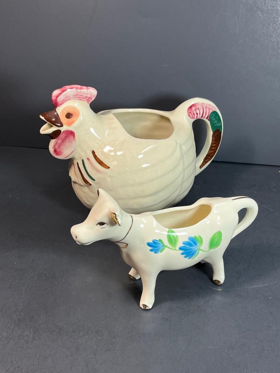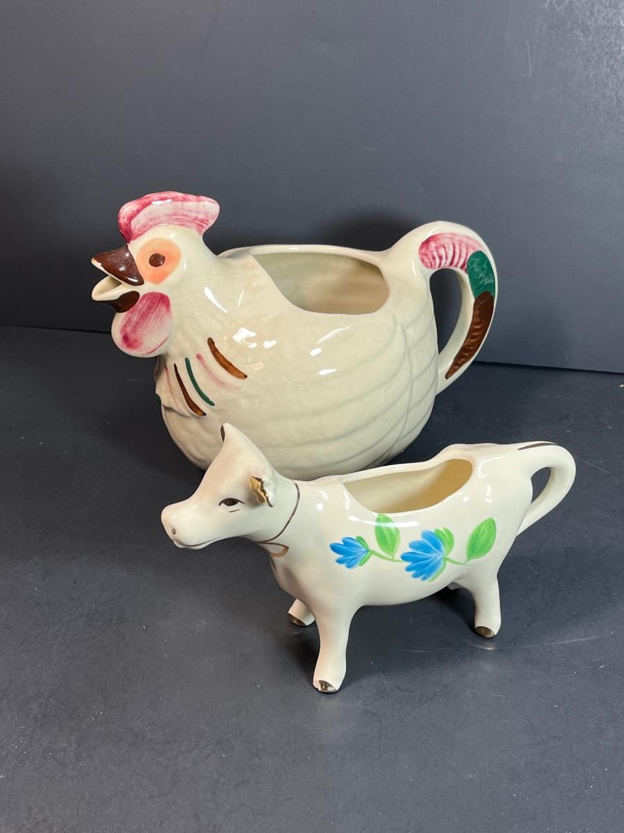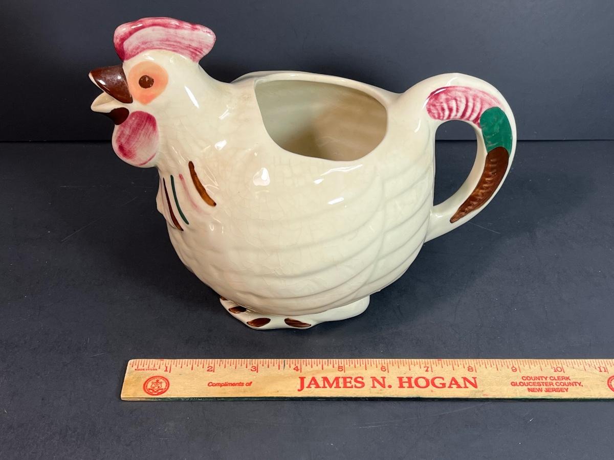 LOT 23: Shawnee Pottery Rooster Pitcher + Vintage Cow Pitcher
