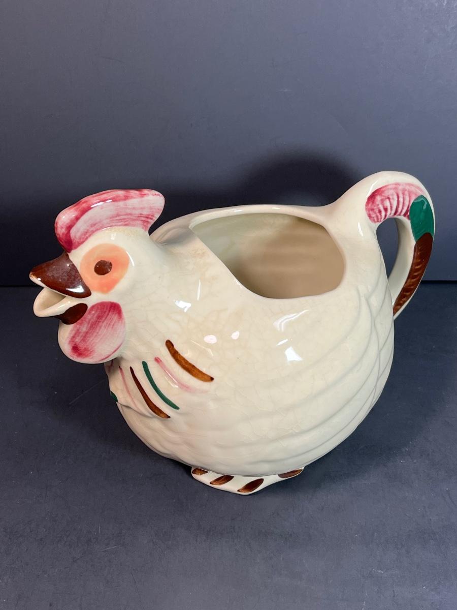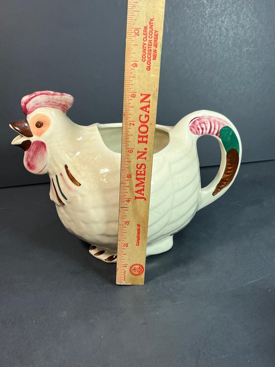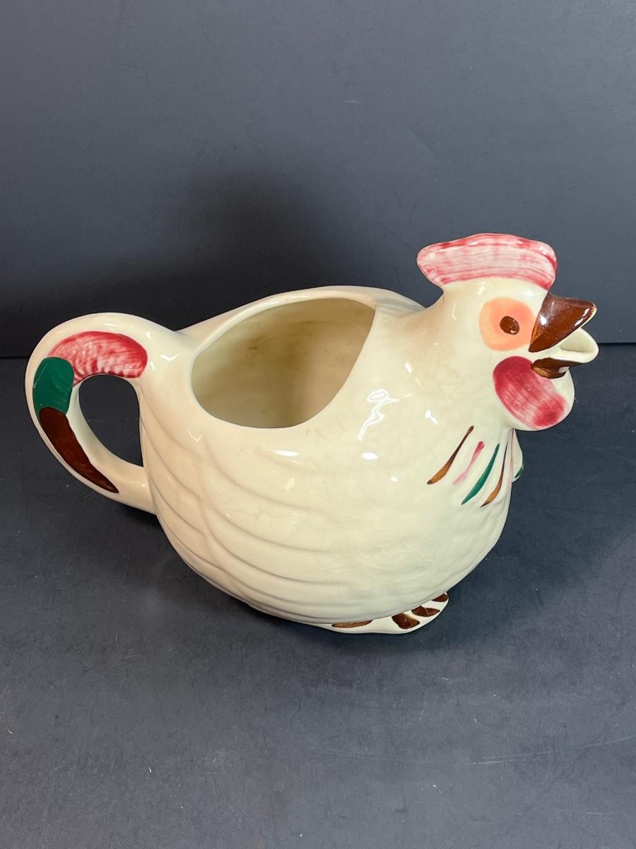 LOT 23: Shawnee Pottery Rooster Pitcher + Vintage Cow Pitcher
