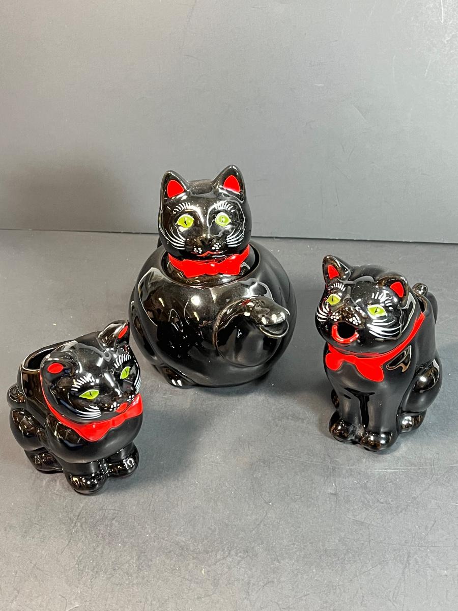 LOT 25: Vintage Japanese Black Cat Tea Set - Product of Shafford Japan