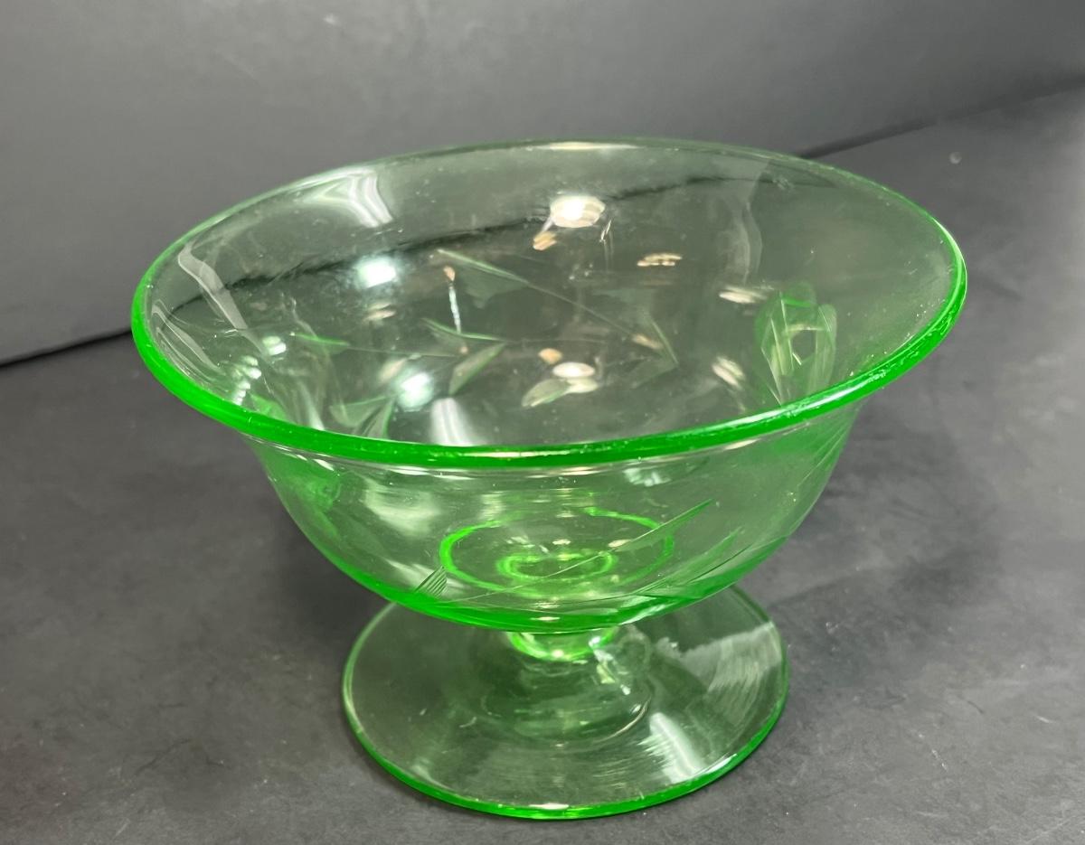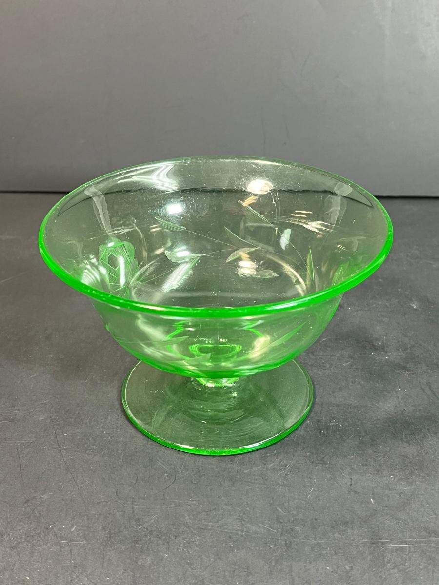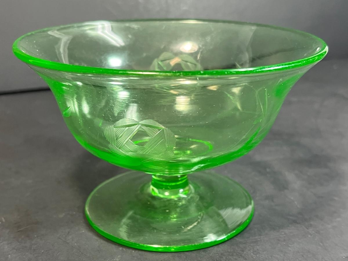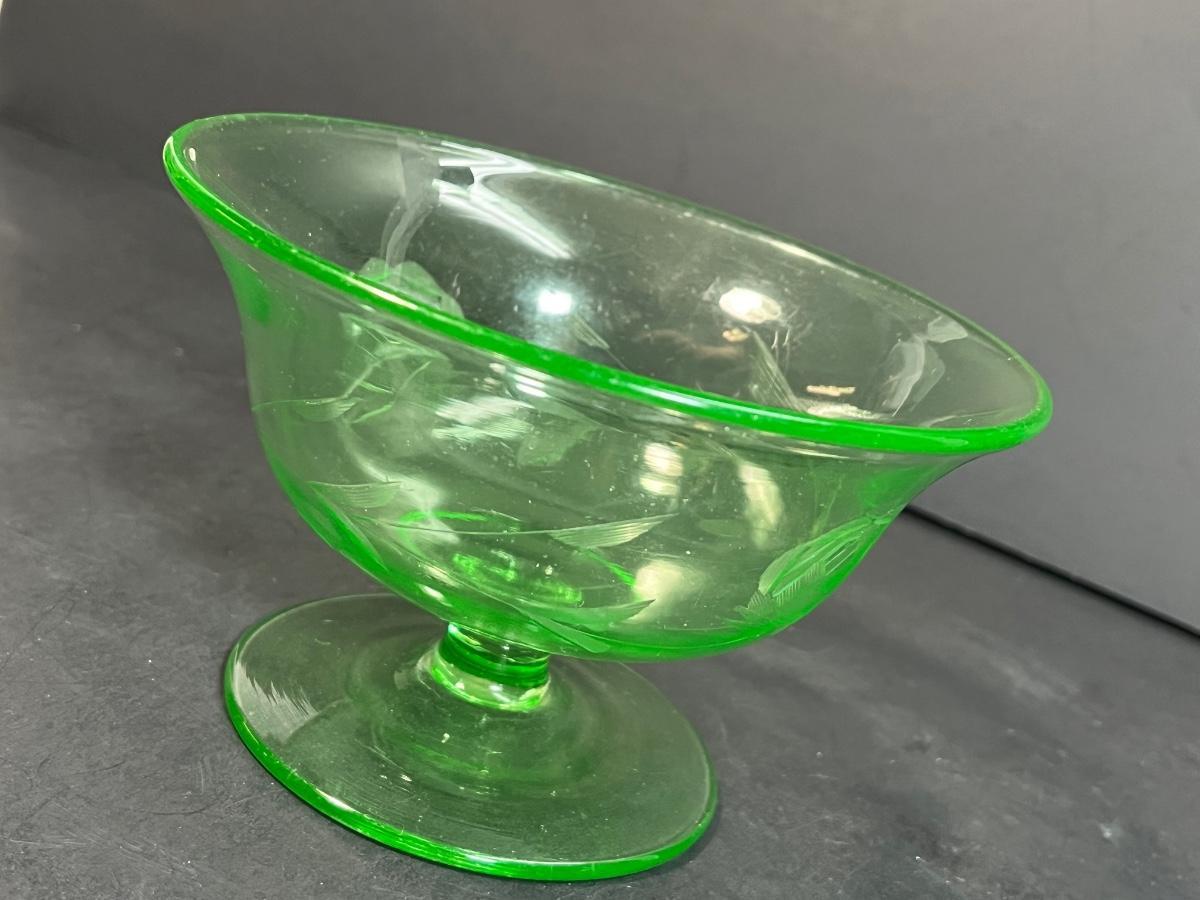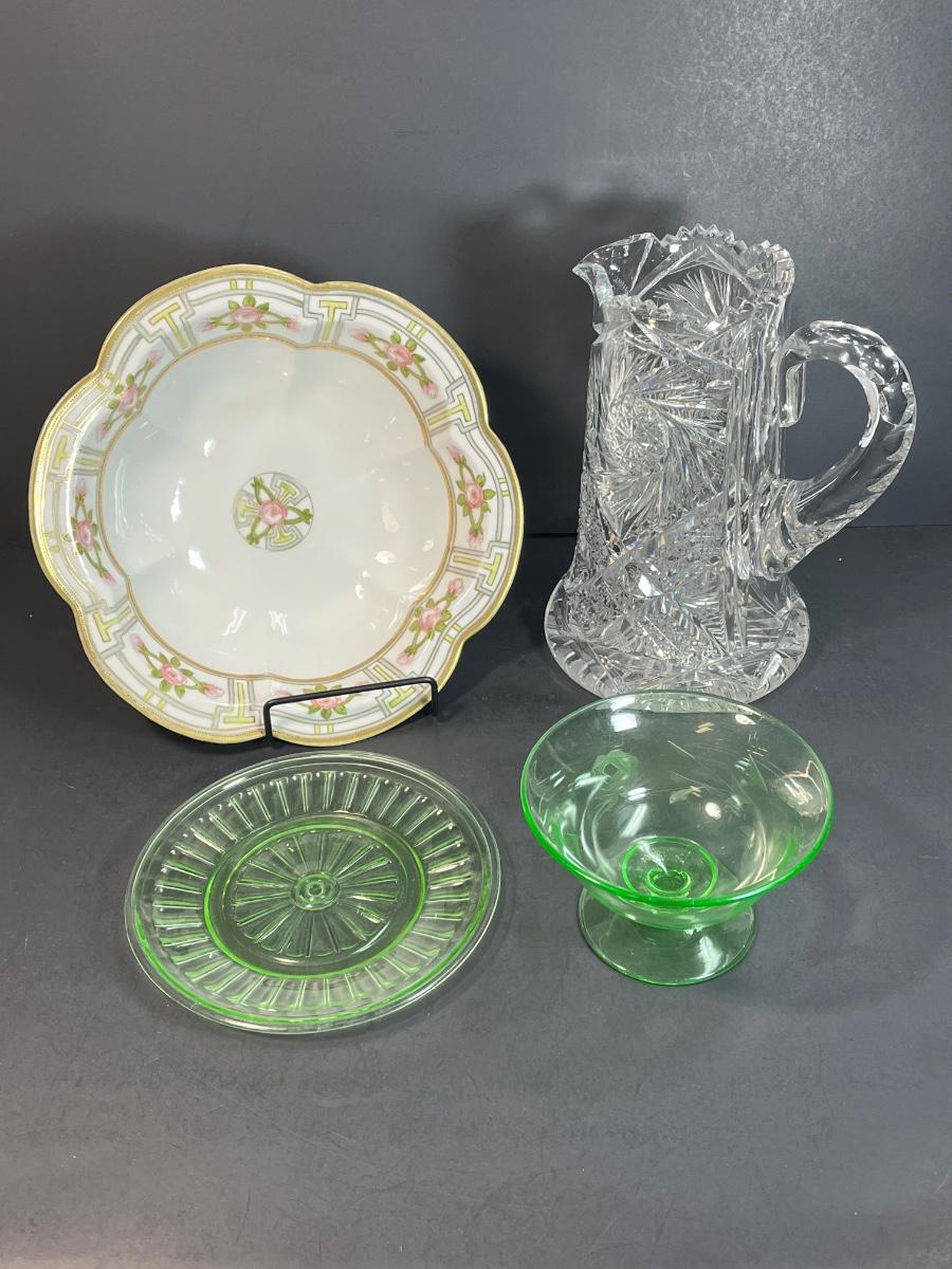 LOT 27: Vintage Japanese Bowl, Crystal Pitcher and Green Depression Glass