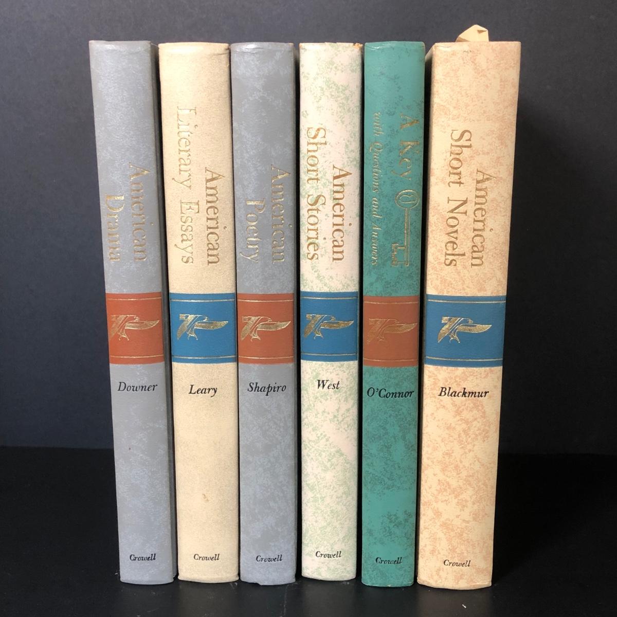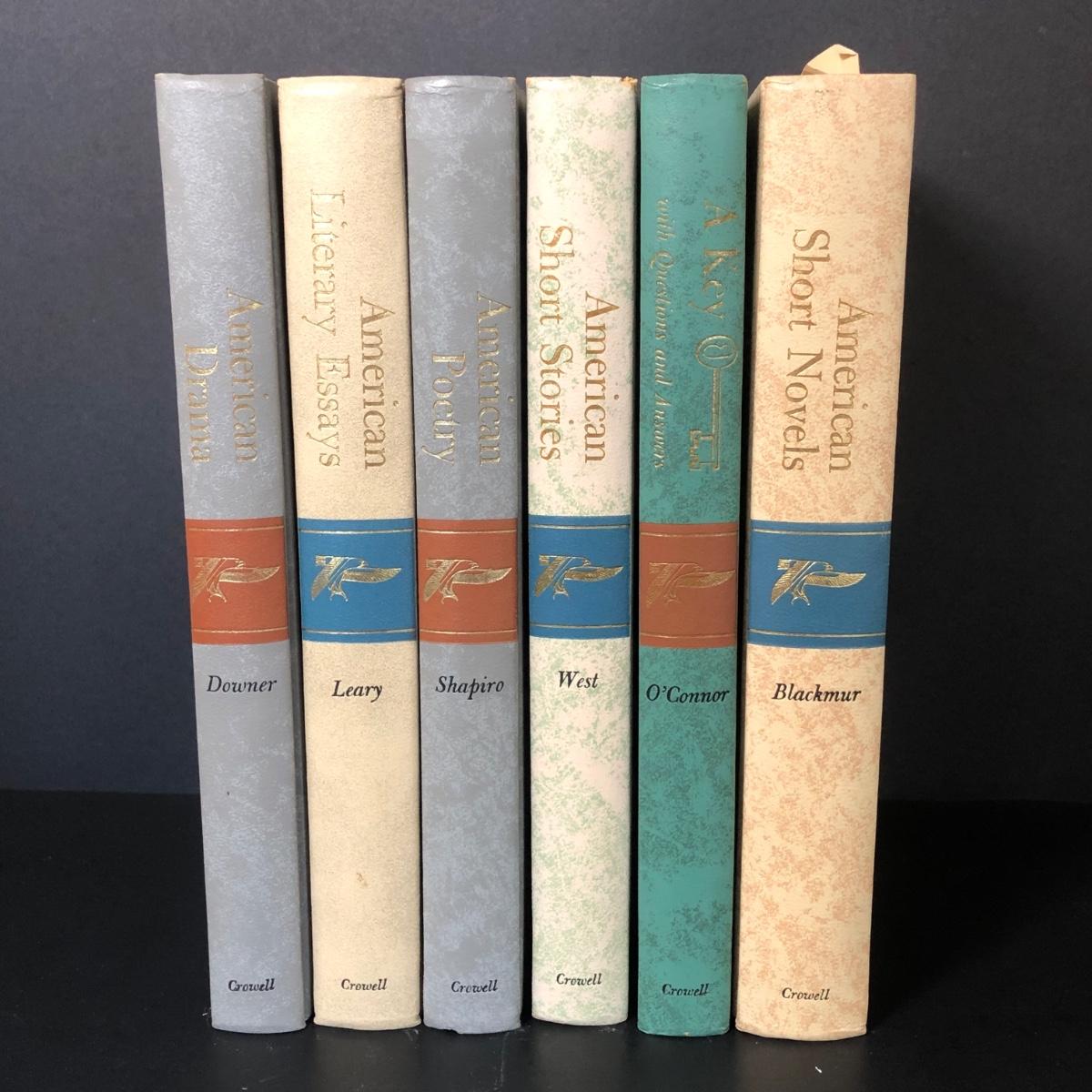 Includes six books: American Short Novels, A Key to American Literature, American Short Stories, American Poetry, American Literary Essays, and American Drama. Books are in used condition with some noticeable damage (see photos).