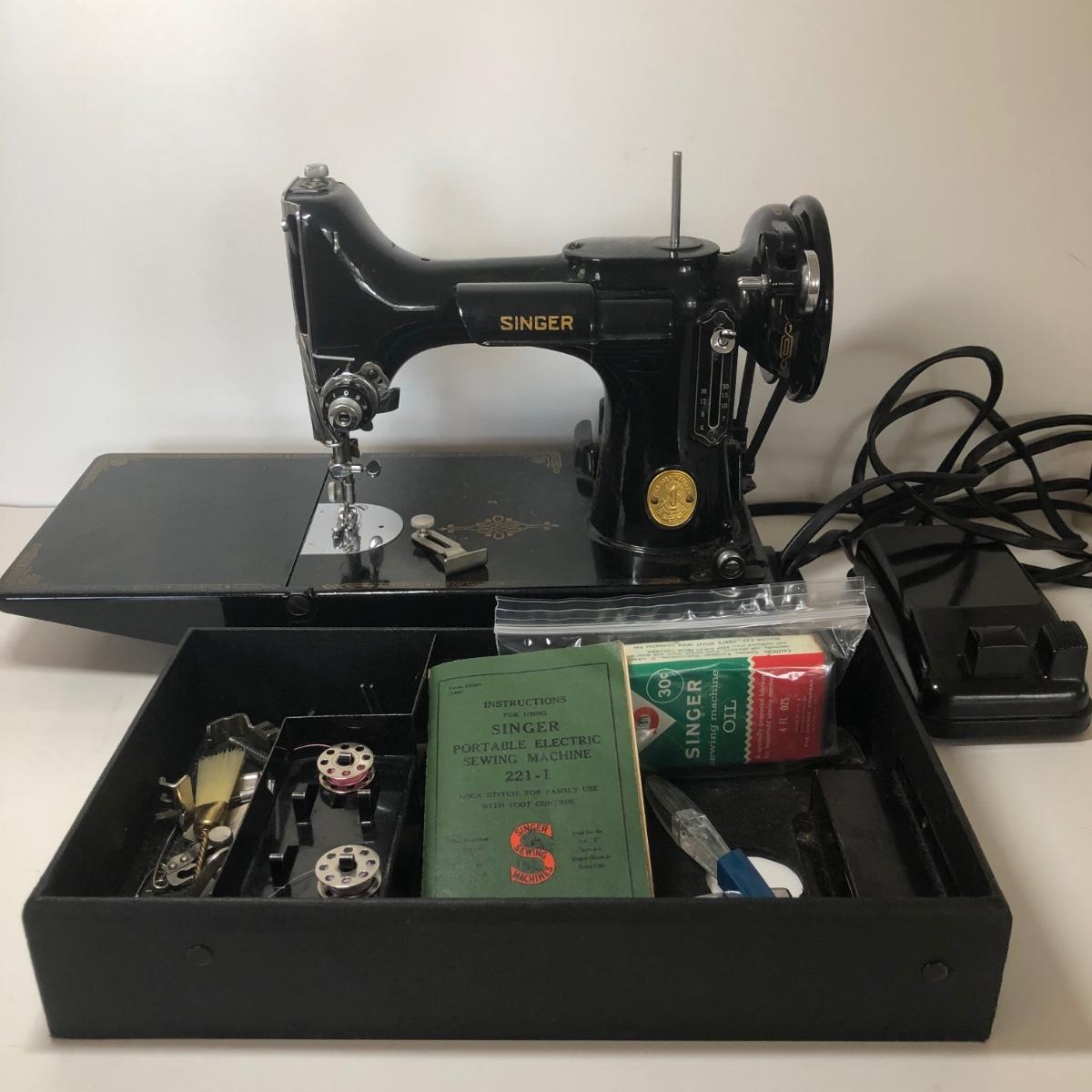 LOT 8M: Vintage Singer Portable Electric Sewing Machine 221-1