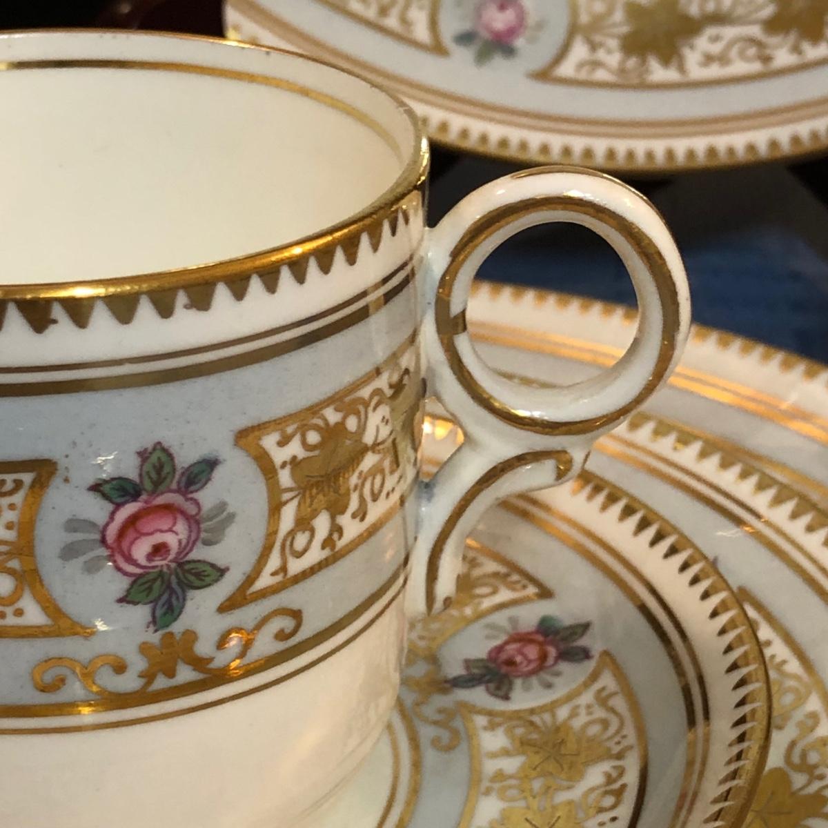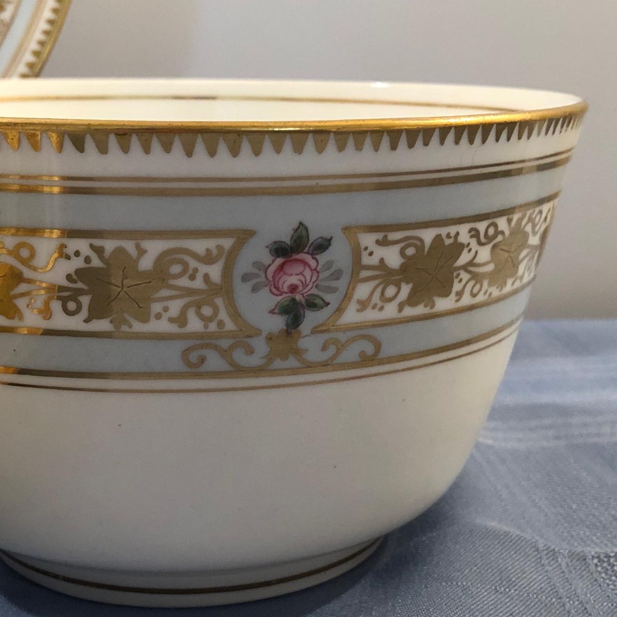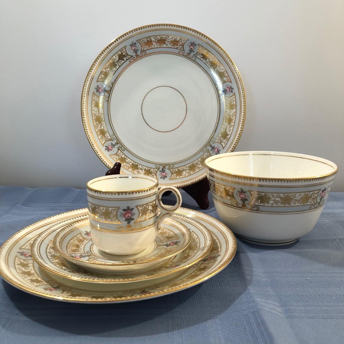 This collection includes 2 dinner plates, 10 medium plates, 10 saucers, 10 tea cups, and one large bowl.