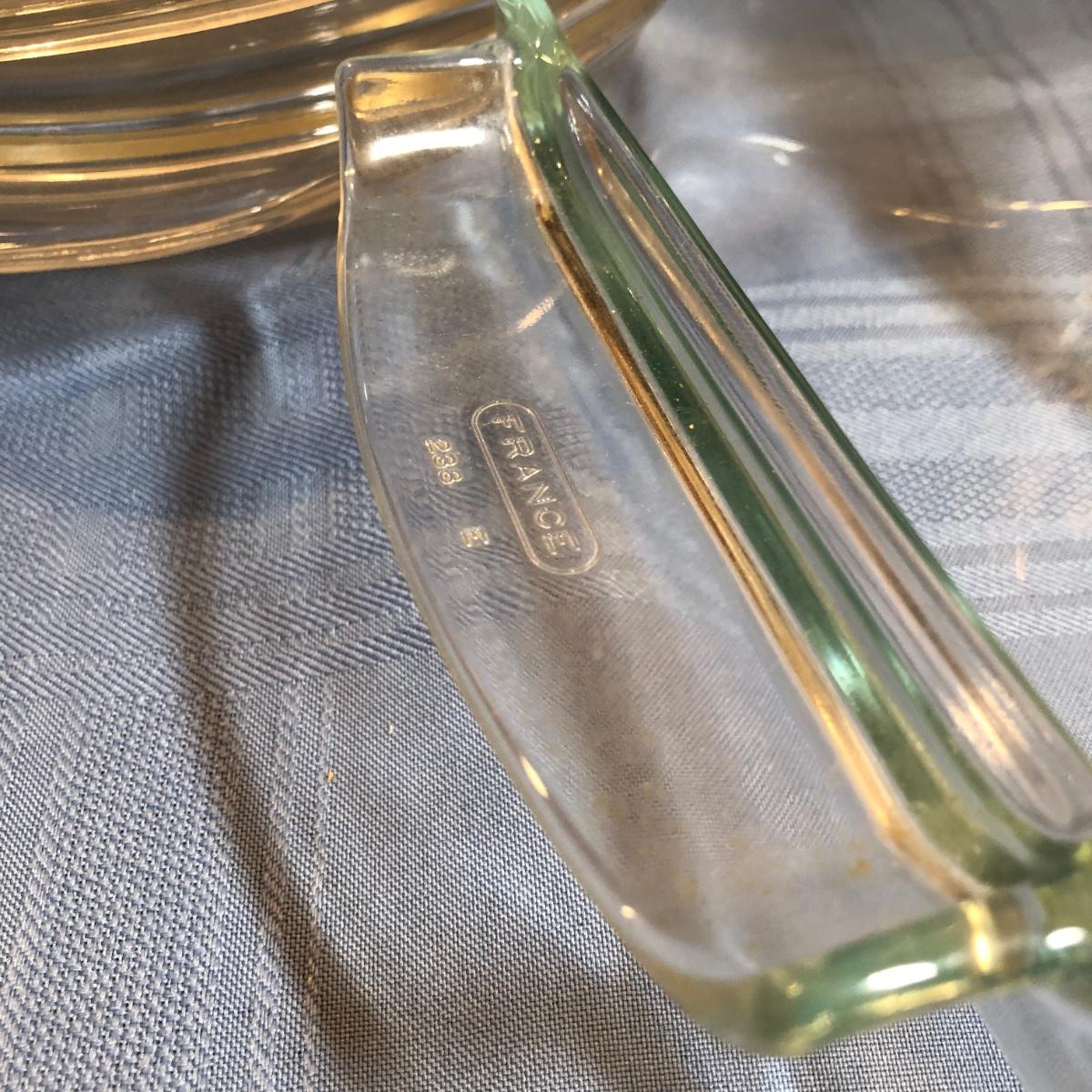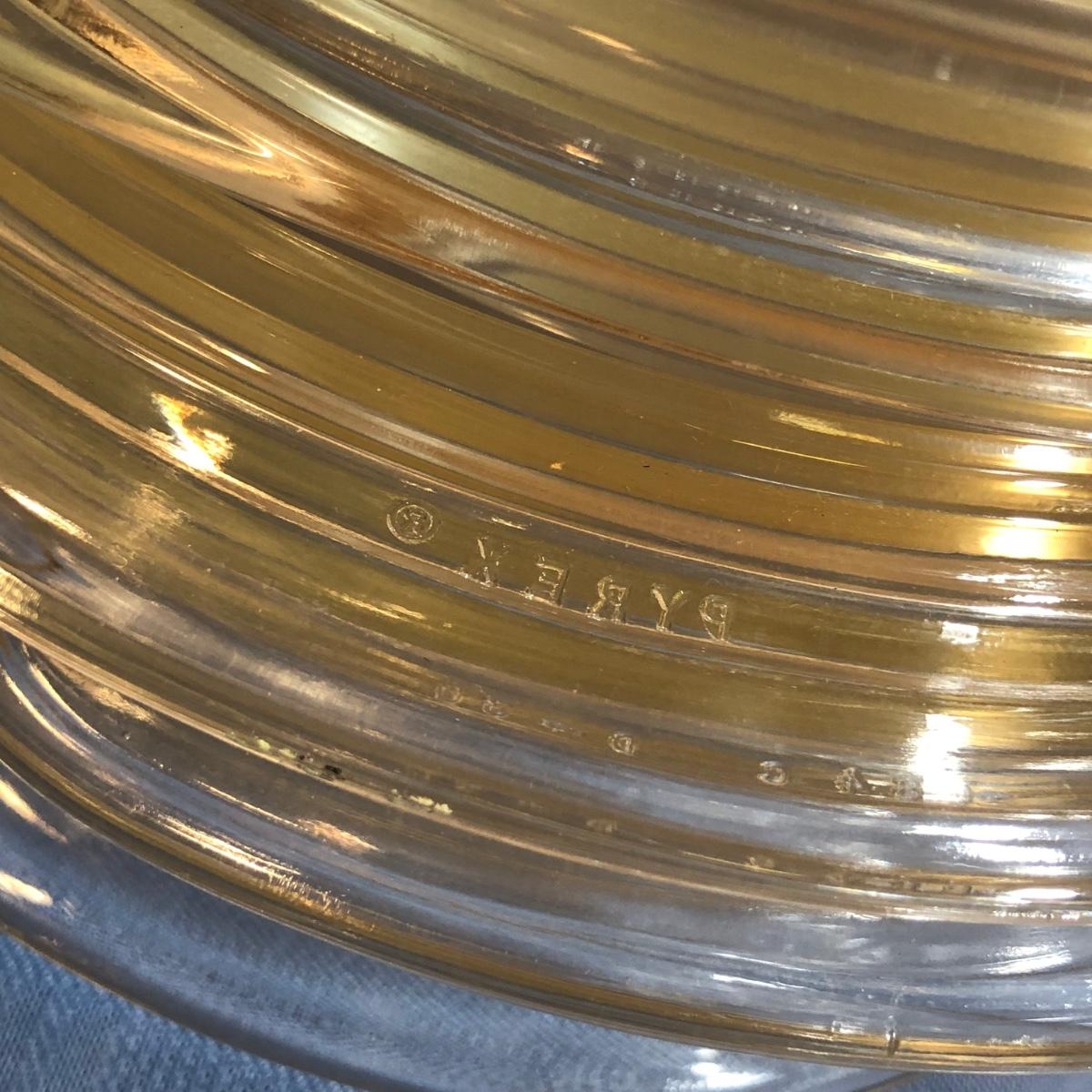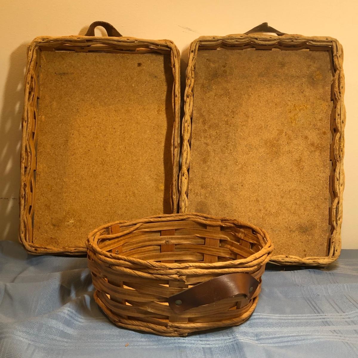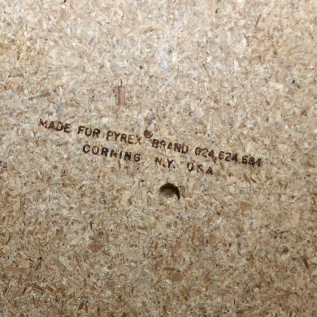 Includes a collection of circular Pyrex baking dishes and one larger rectangular dish. Three baskets are included.