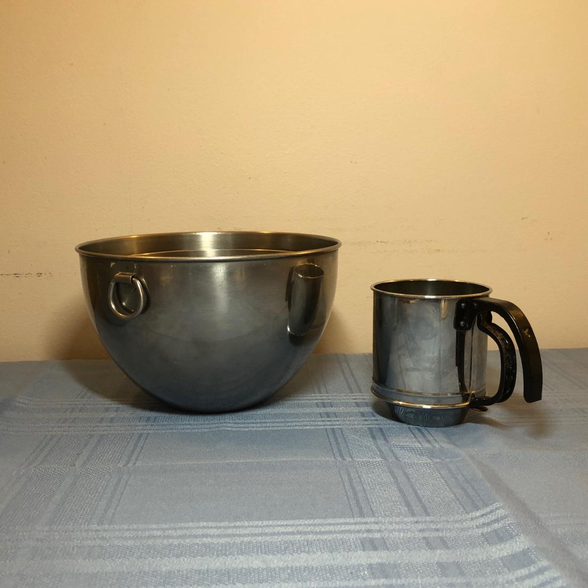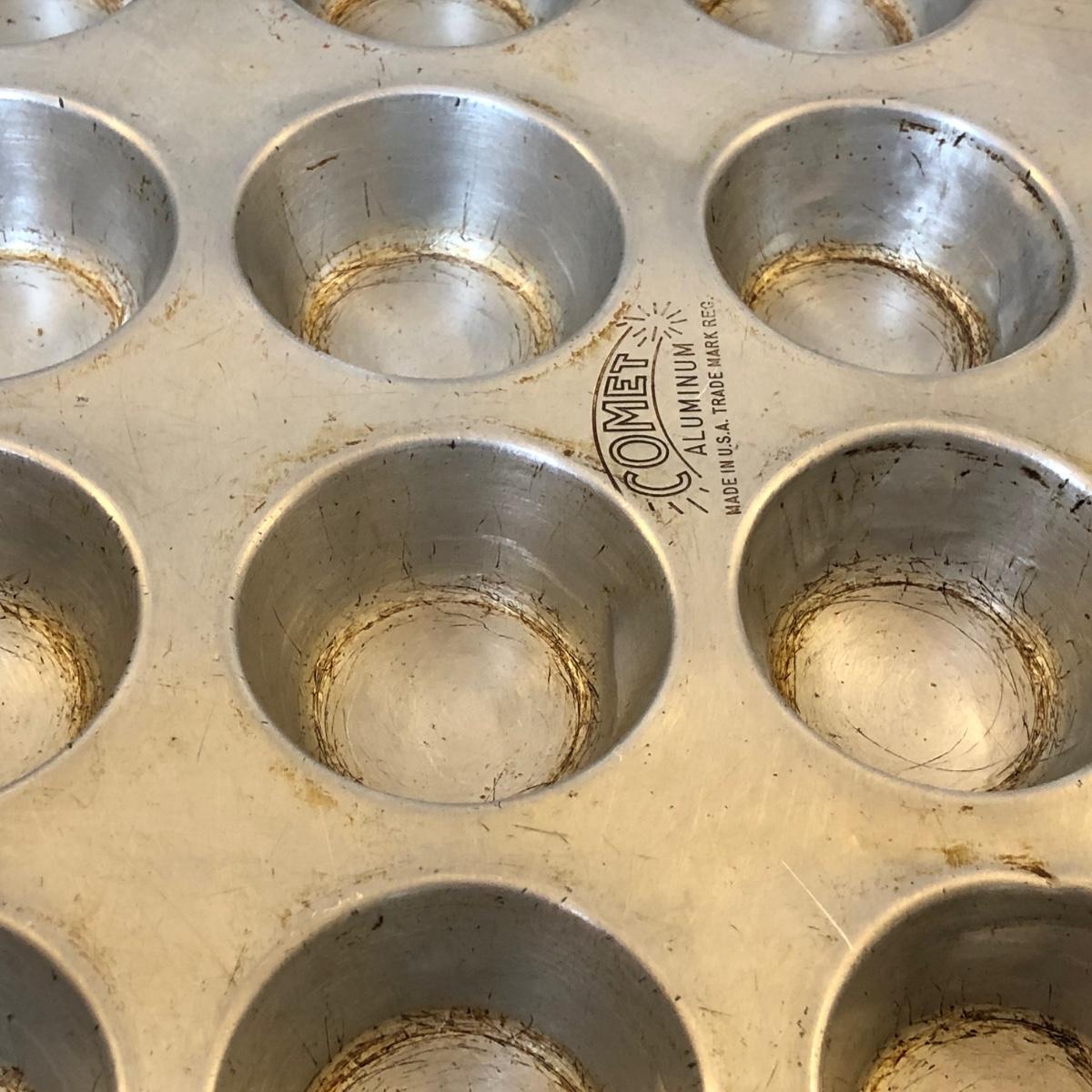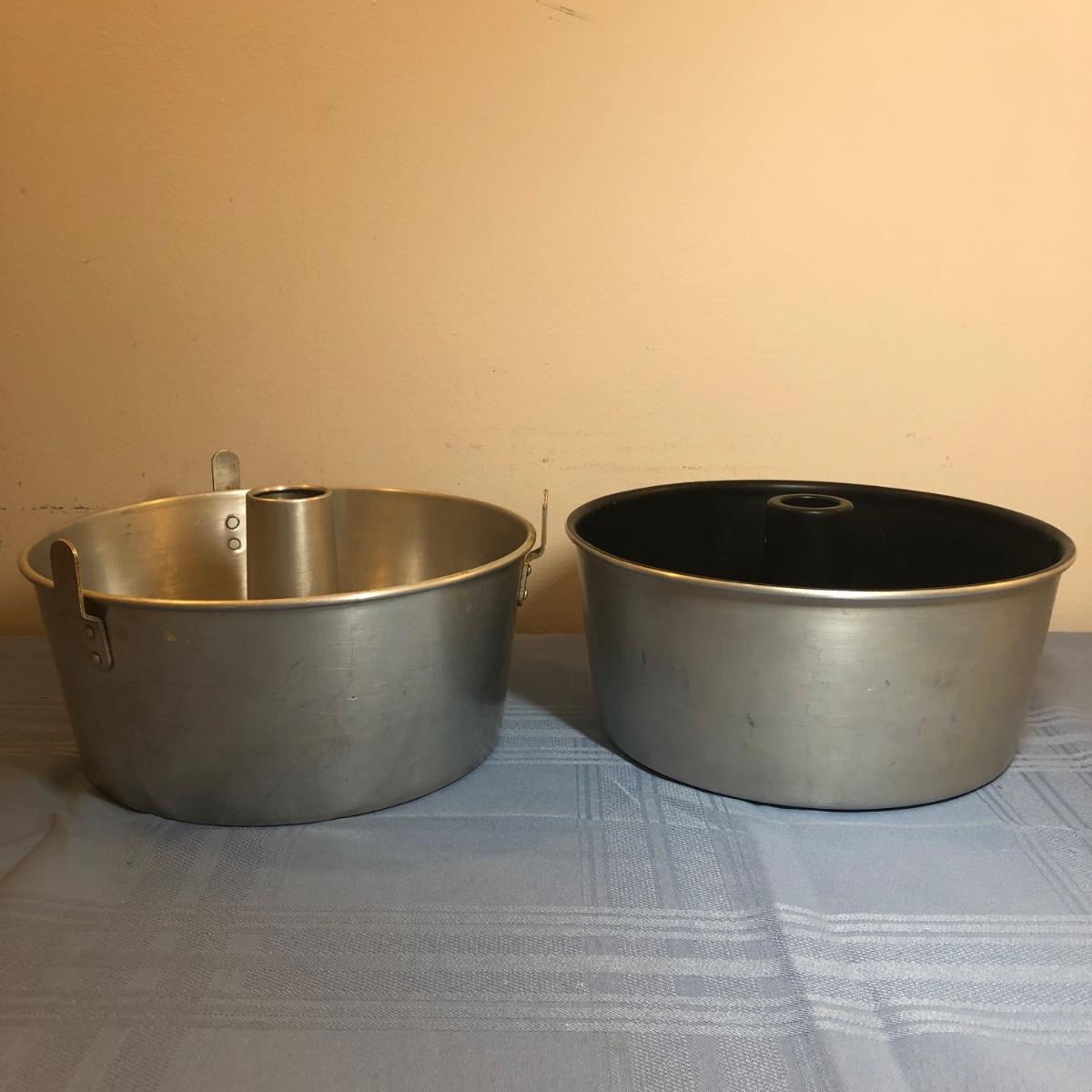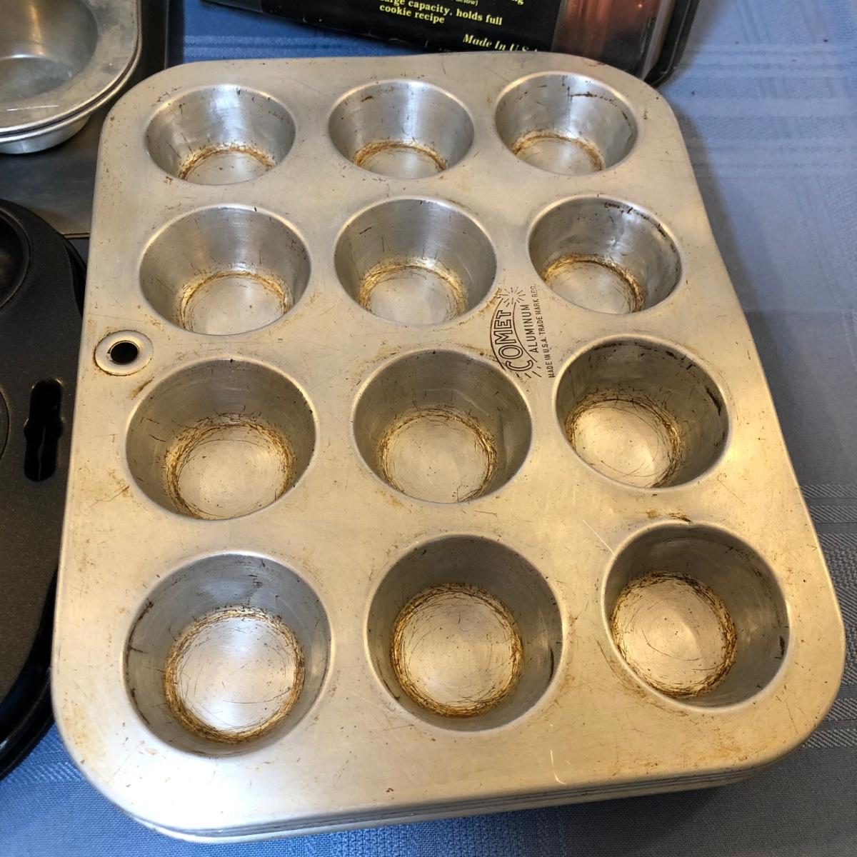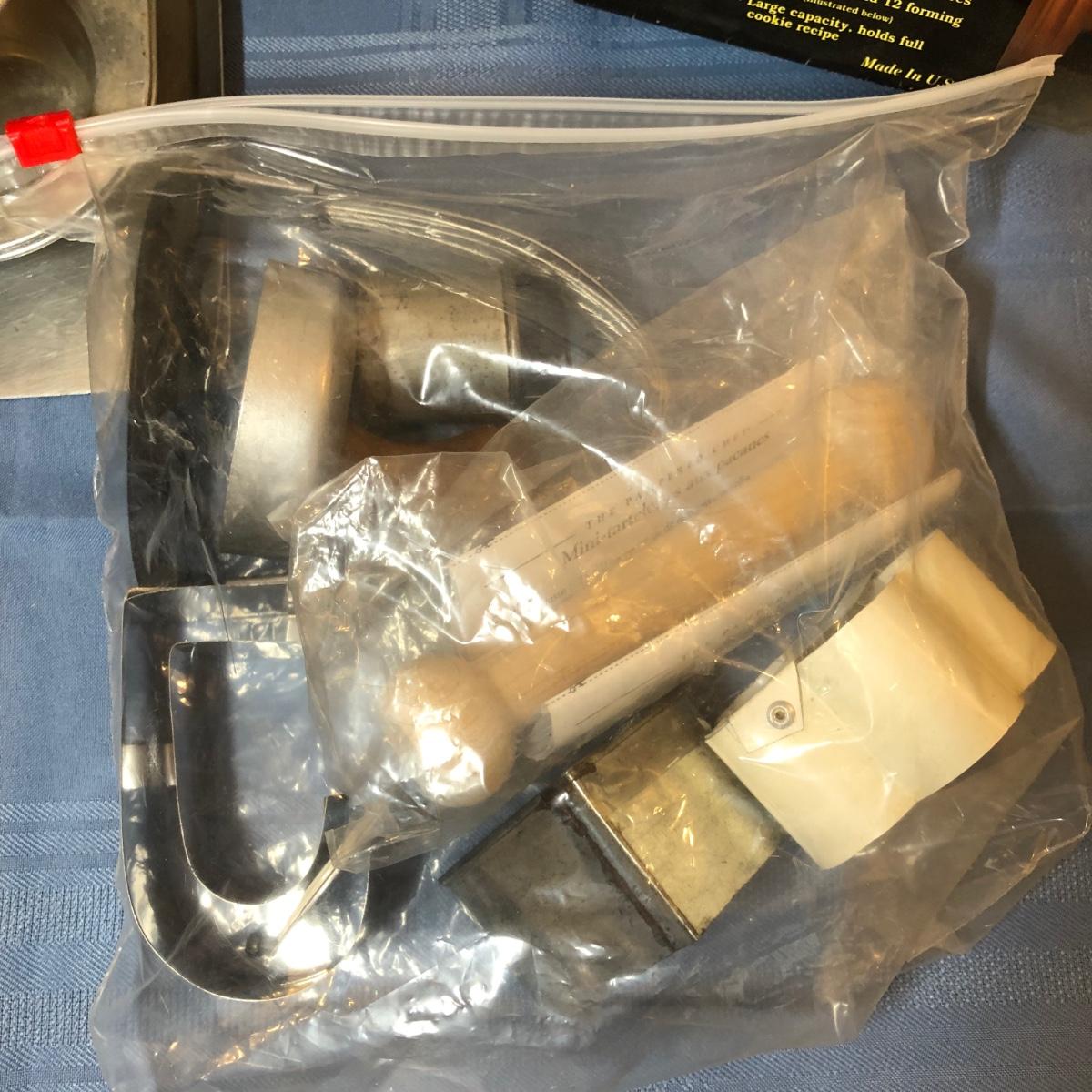 Includes several cupcake pans, cake pans, mixing bowls, donut pans, and two different types of cookie presses.