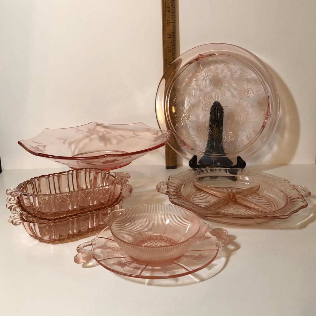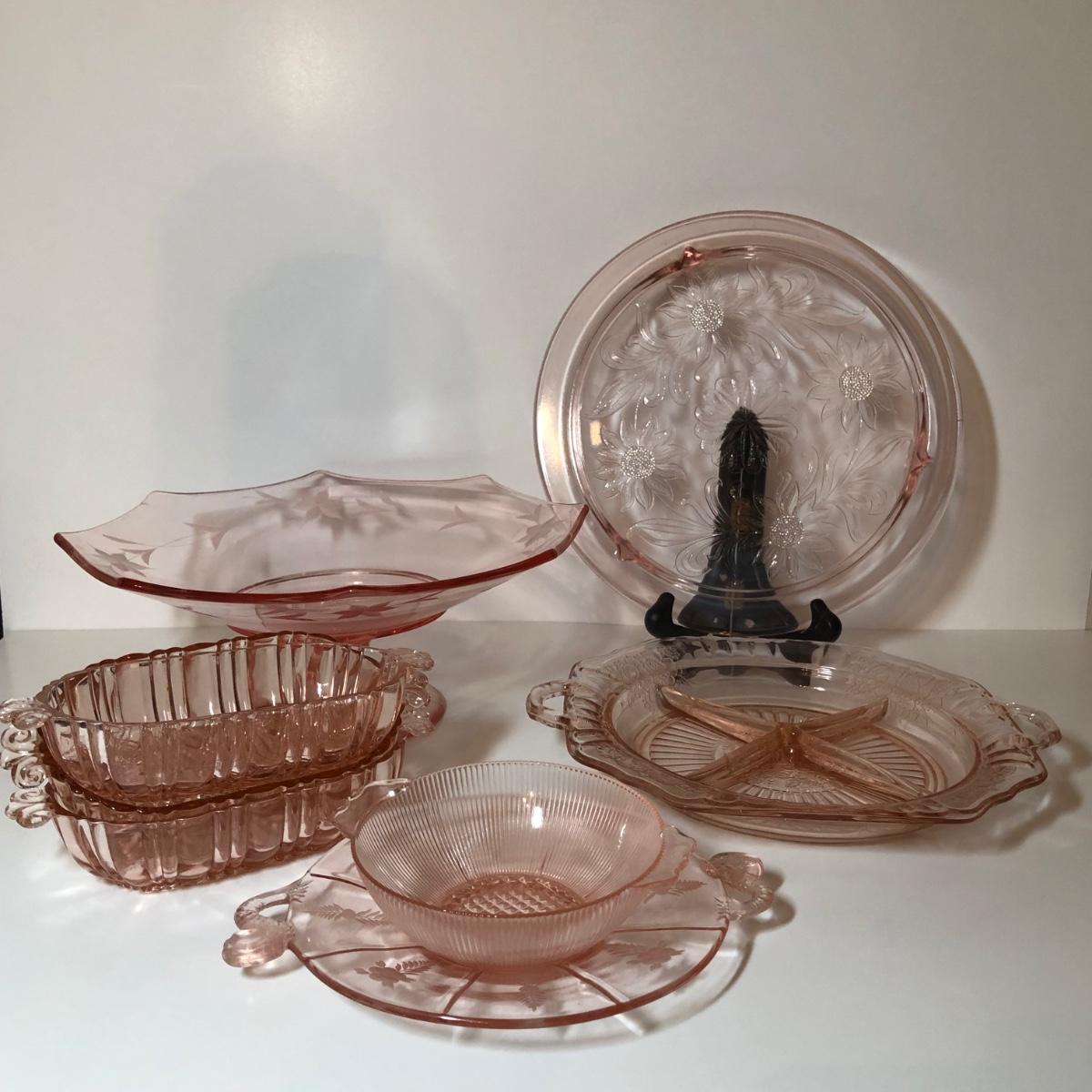 Includes a pedestal dish, footed sunflower plate, candy dishes & more.
