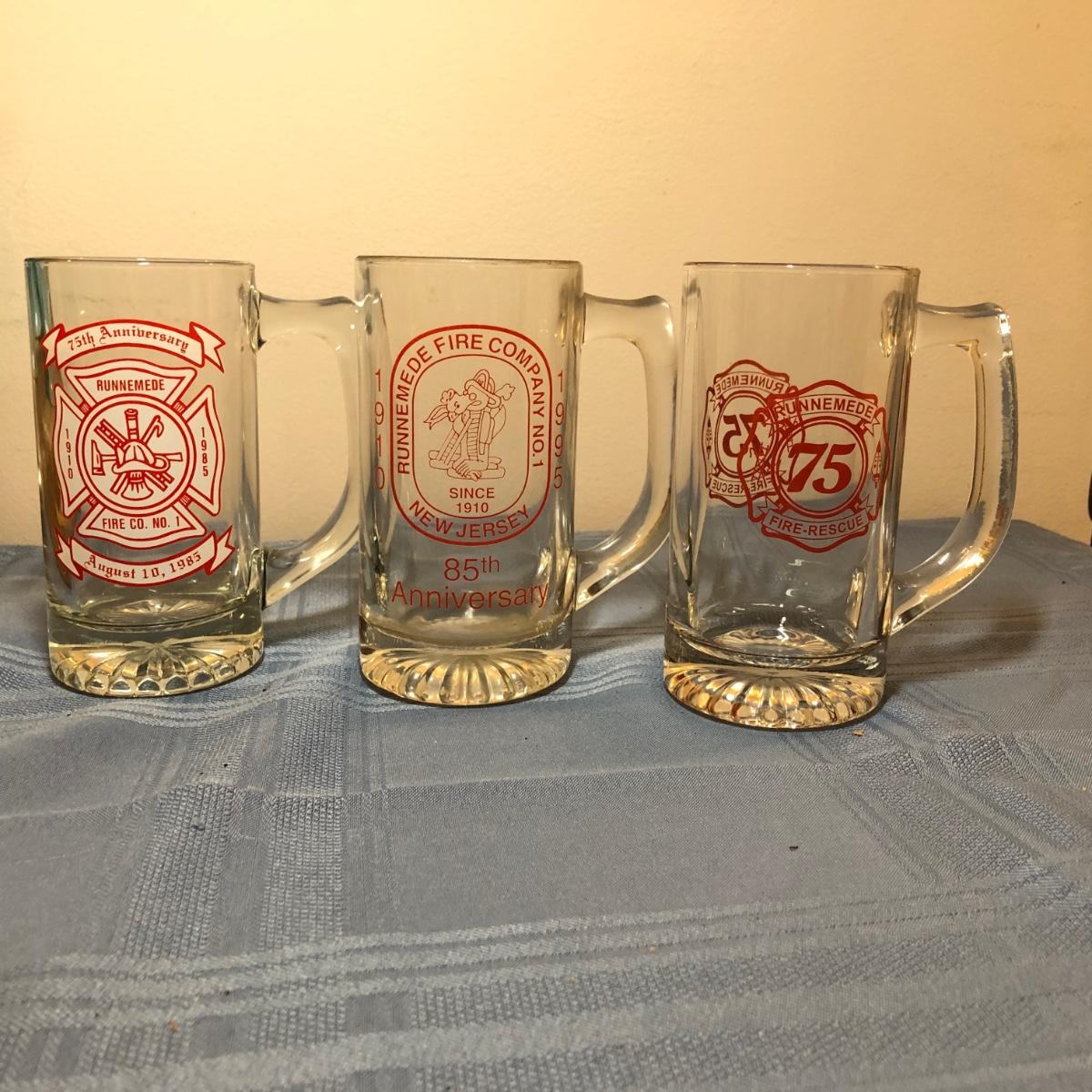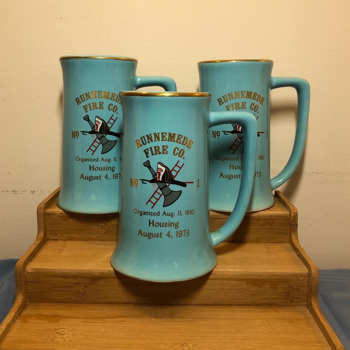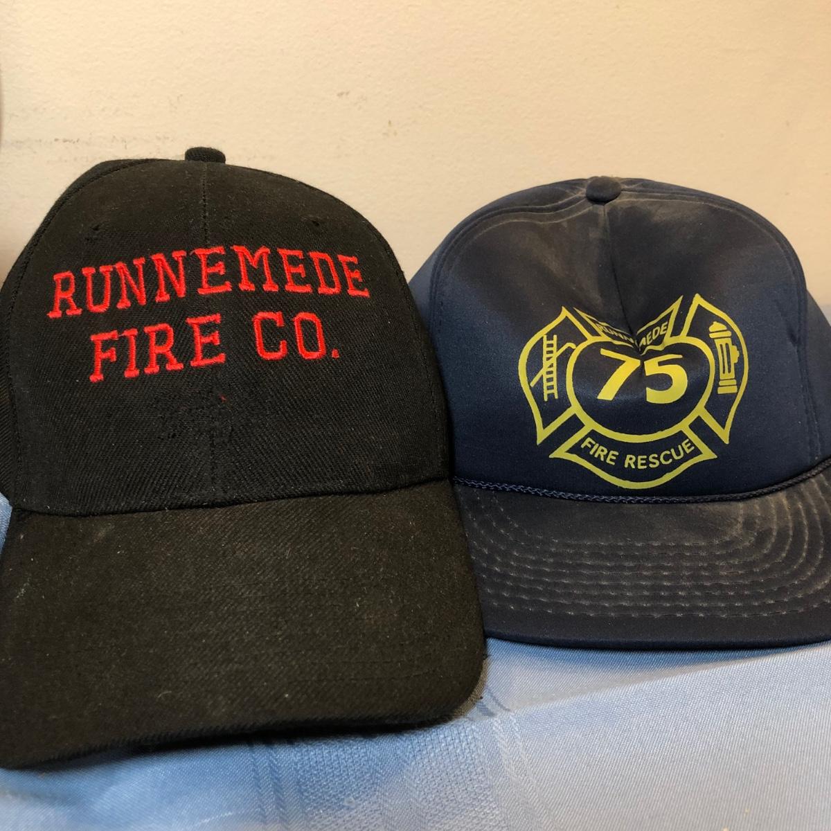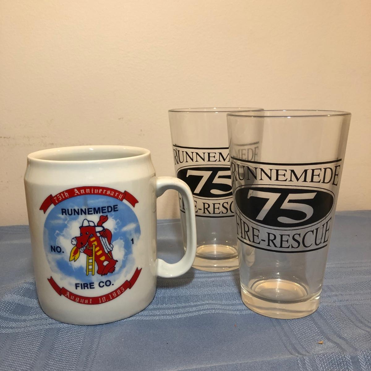 Includes several commemorative mugs from Runnemede Fire Company, a few hats, and a baseball shirt sized medium.