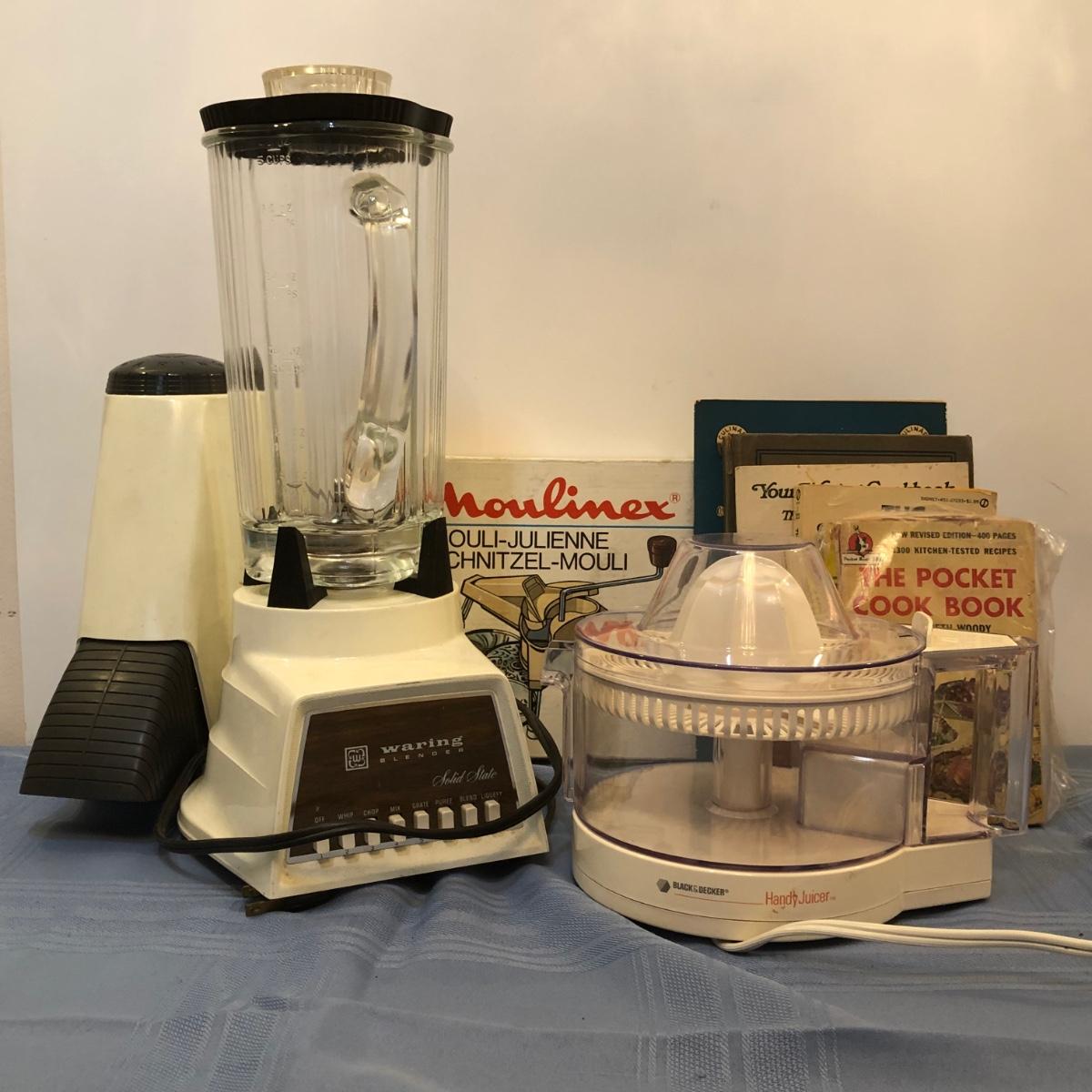 LOT 30M: Waring Blender CC-8W Model 1186 w/ Ice Crusher Attachment, Black & Decker HandyJuicer & Molulinex Mouli-Julienne