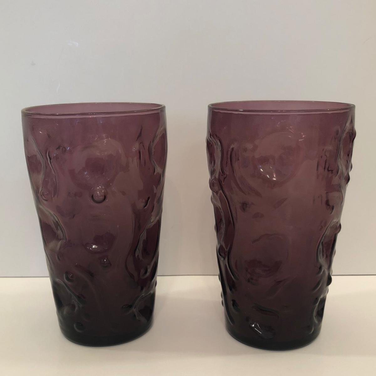 LOT 48M: Vintage Beverage Glasses: Amethyst, Blue, Grey