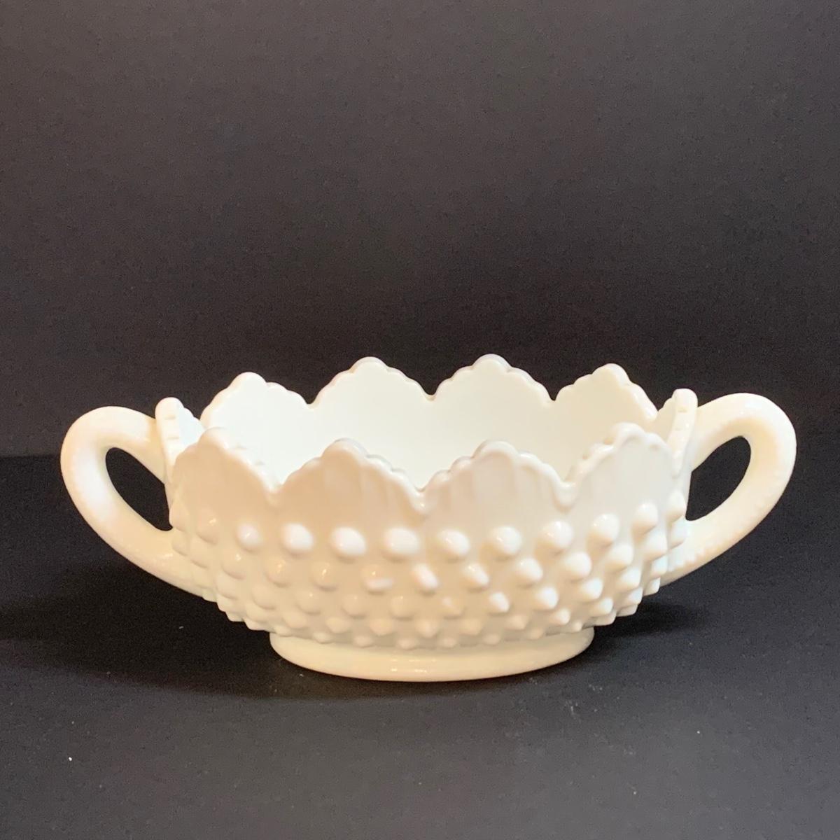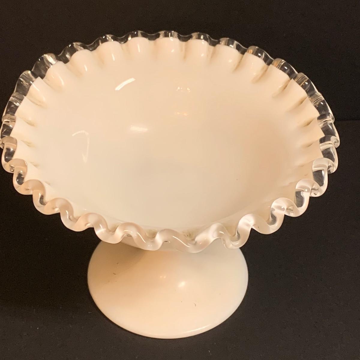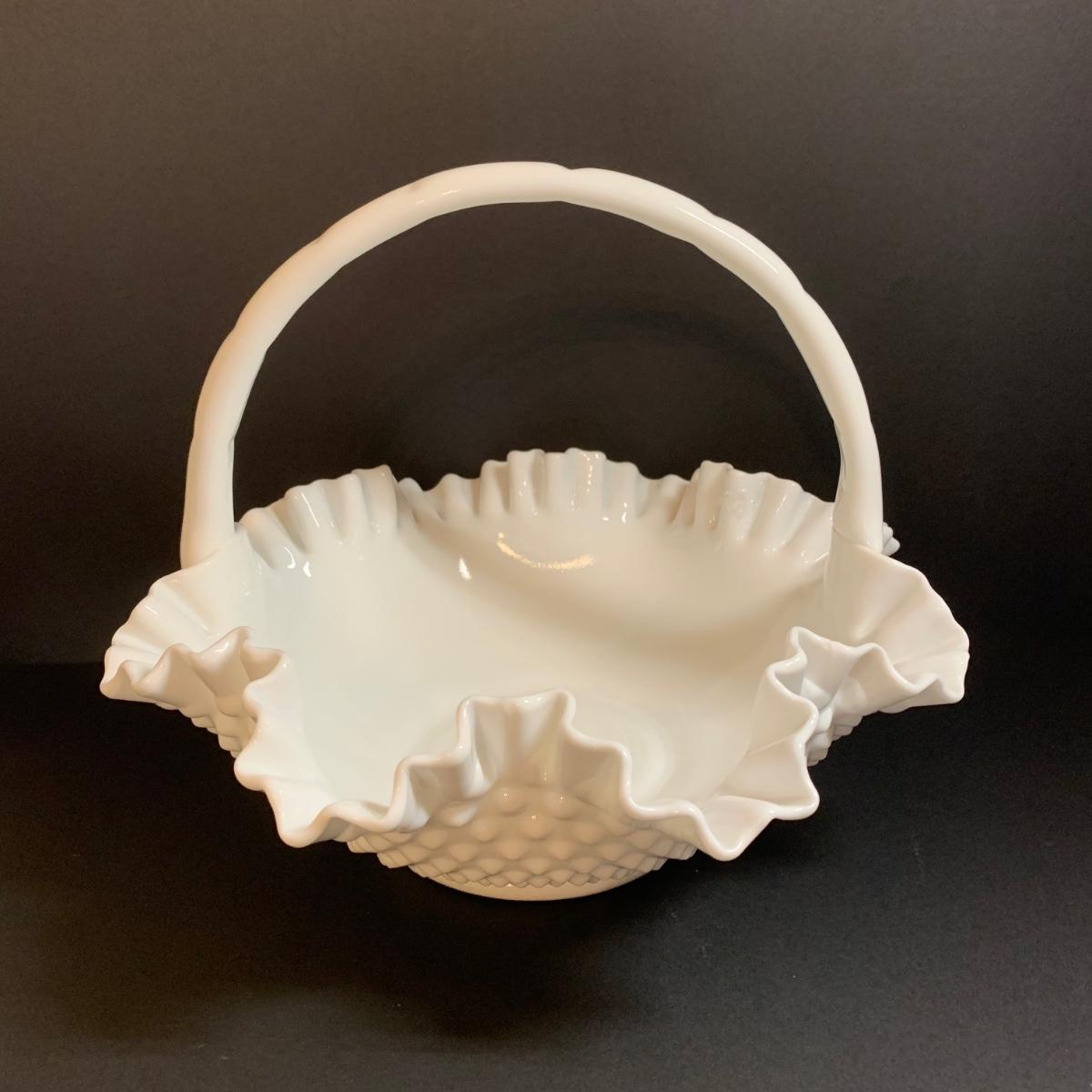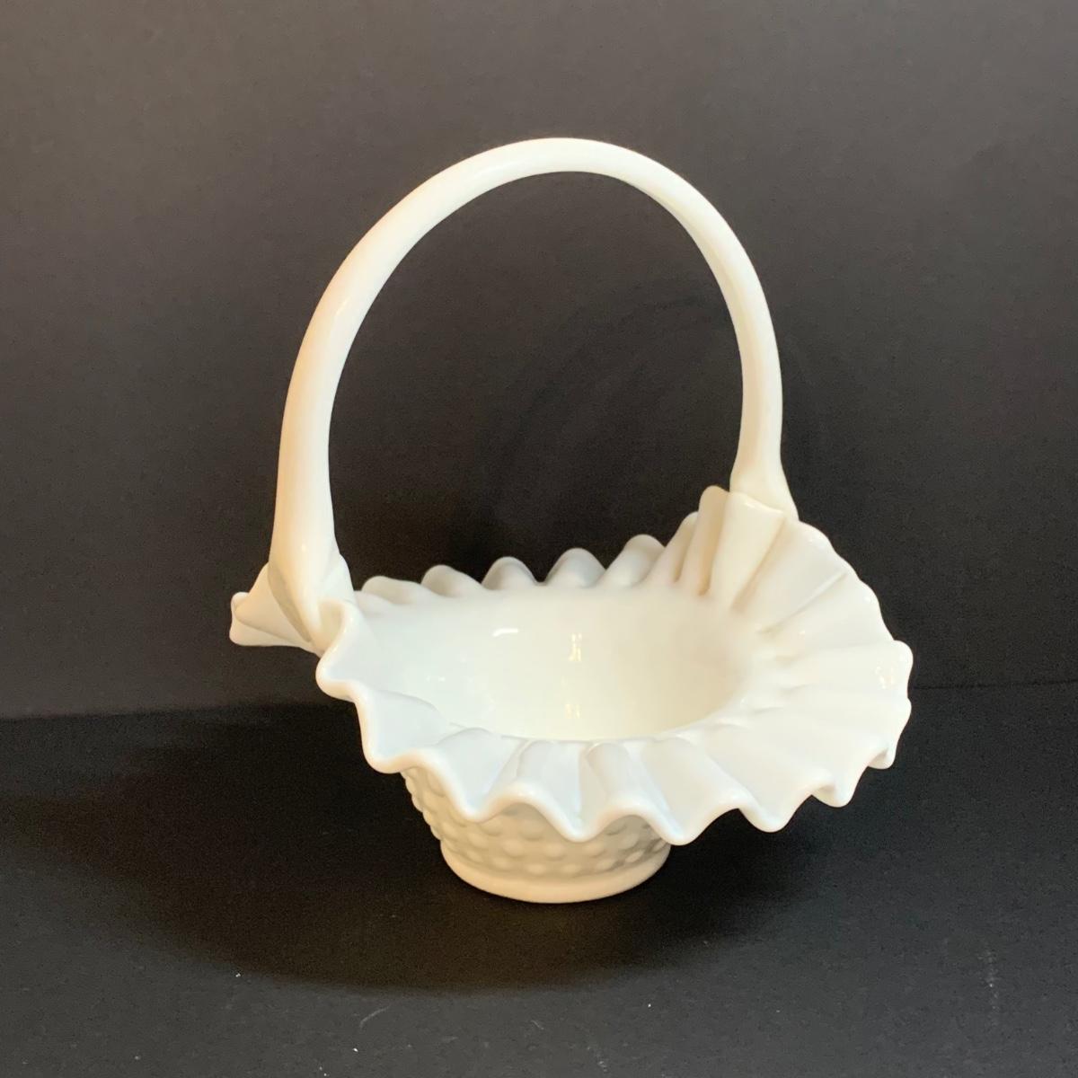 LOT 62R: Milk Glass Baskets, Bowl and Compote Dishes. 2 of the 4 Pieces are Marked Fenton
