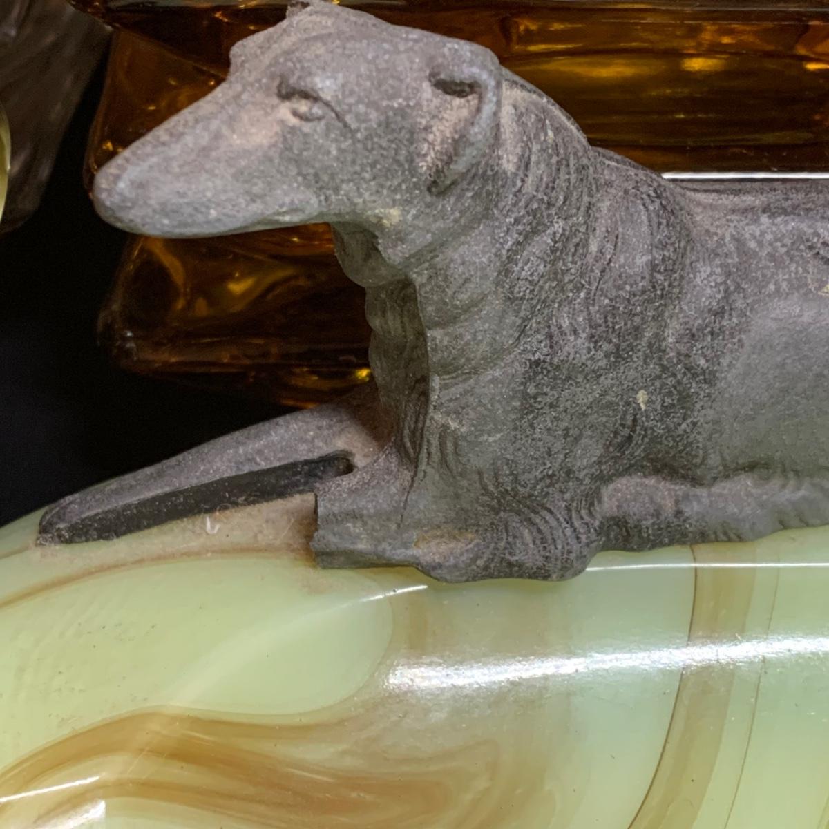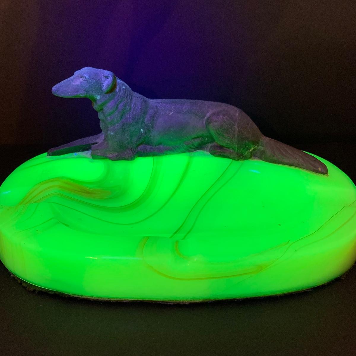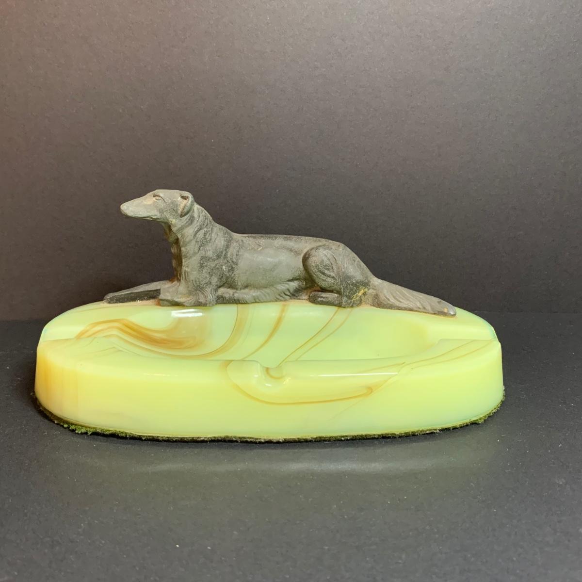 LOT 64R: Large Collection of Ashtrays Featuring a Metal Dog on Uranium Glass