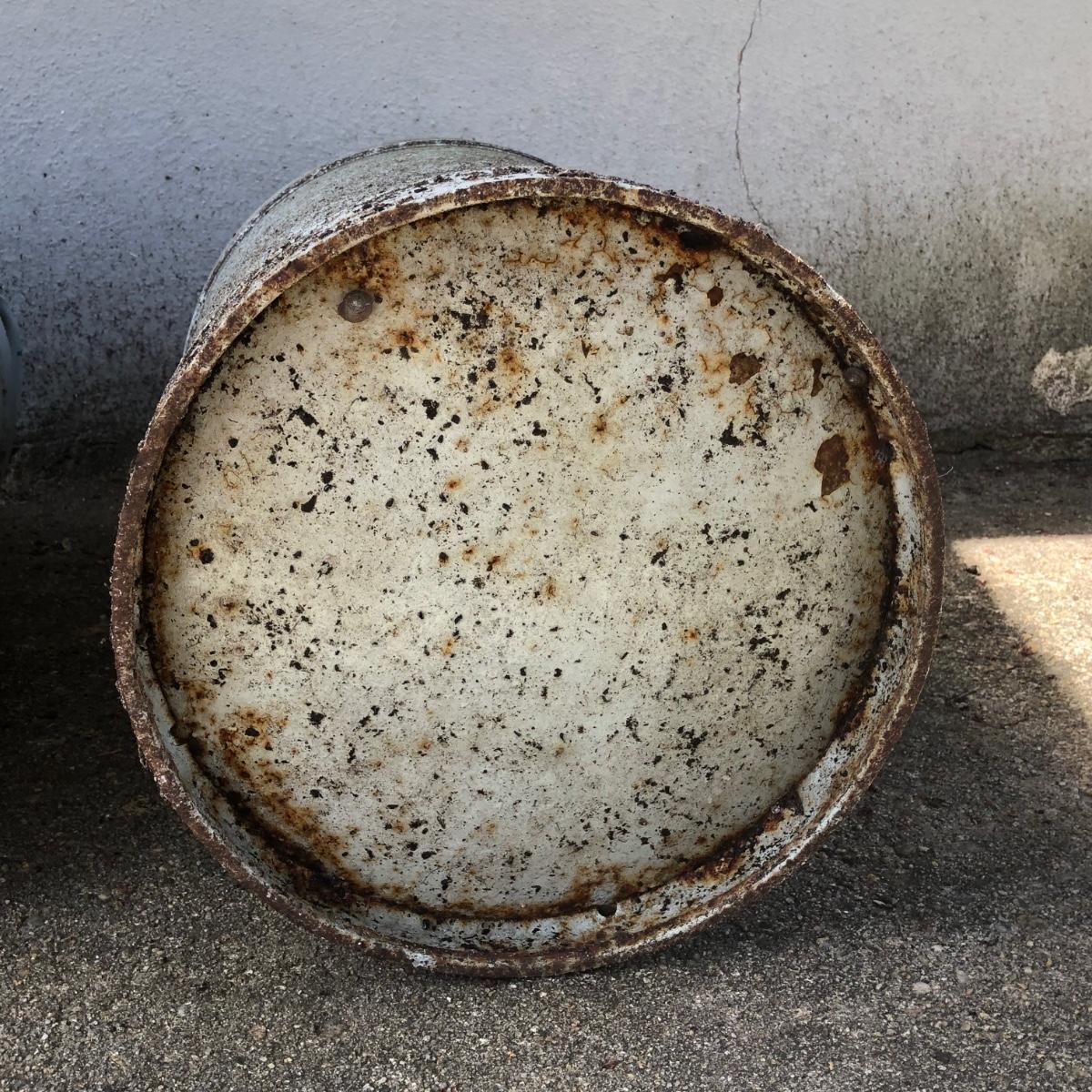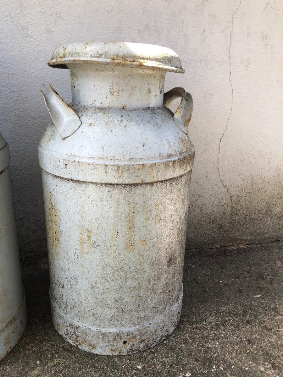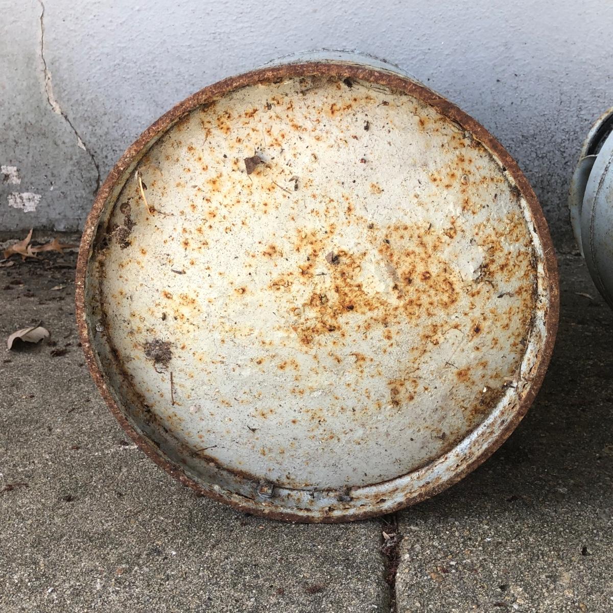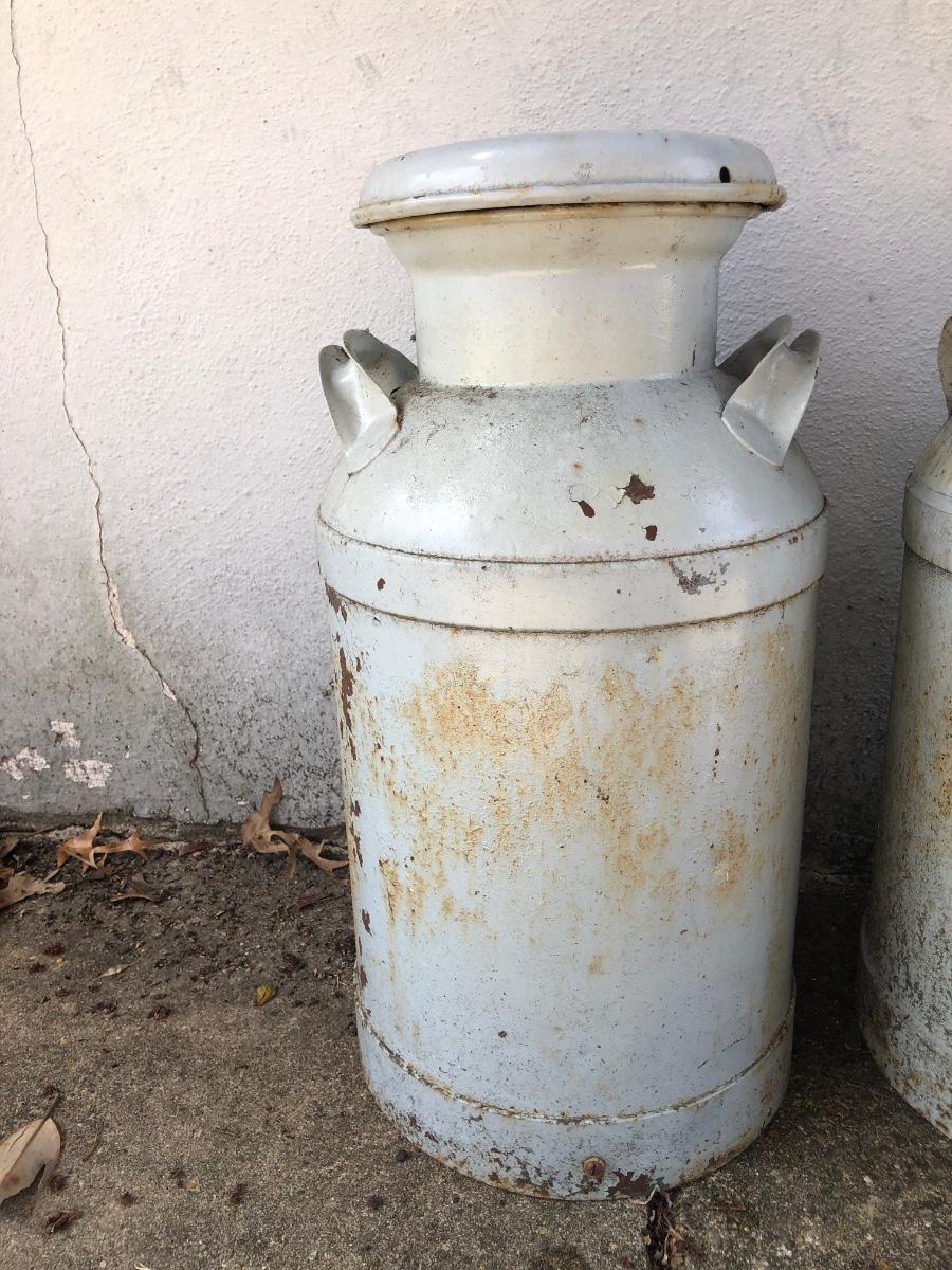 Two vintage milk cans. Both are rusted but bottom is in tact.