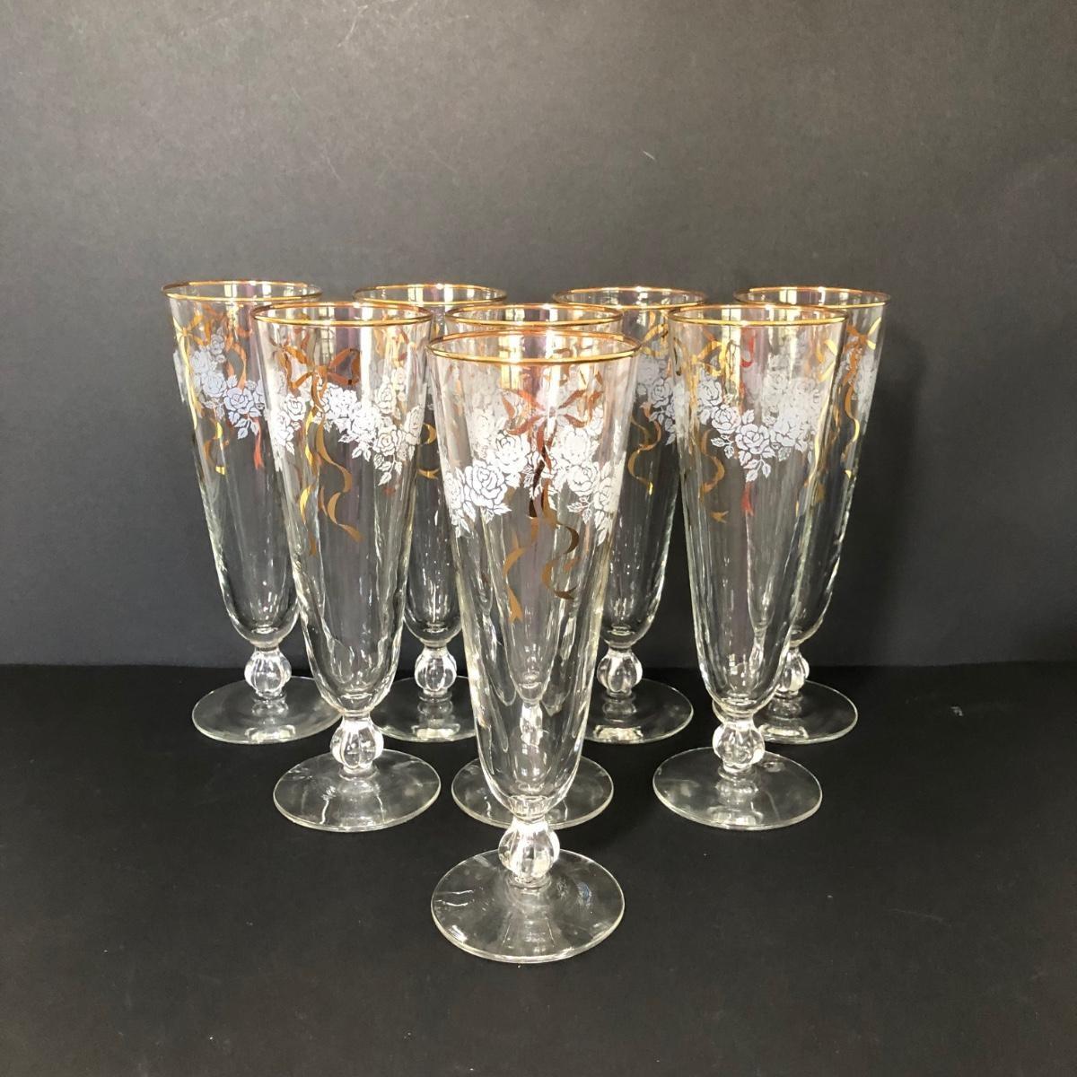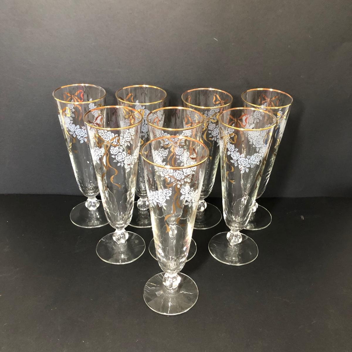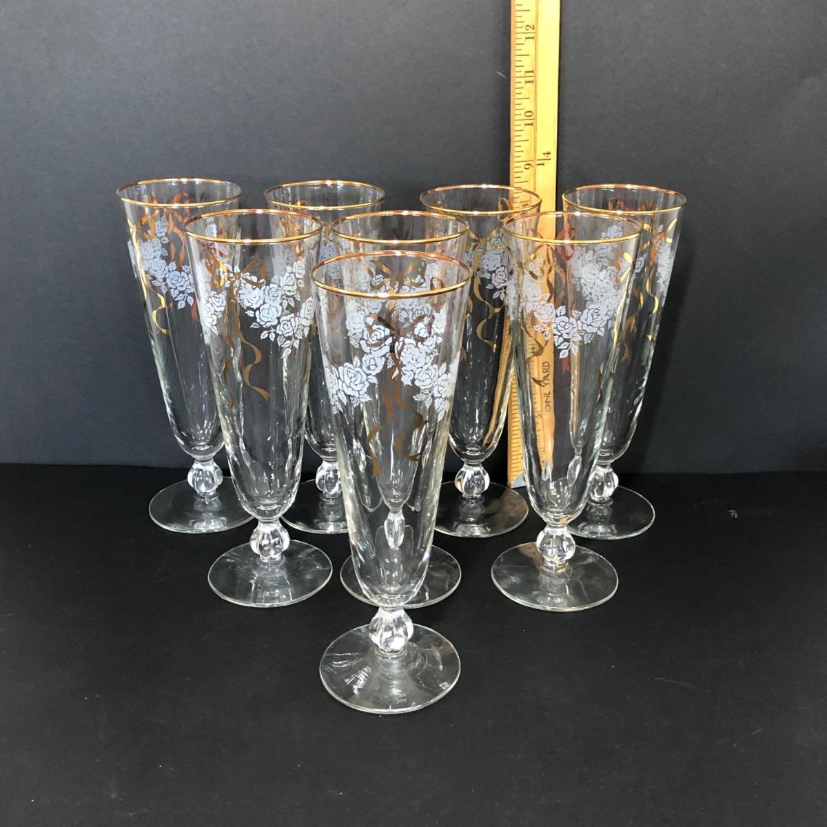 LOT 77M: Vintage Libbey Rose Classic Footed Pilsner Beer Glasses