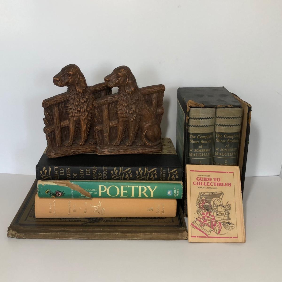 LOT 79M: Vintage Anthology Book Collection & Farm Dog Bookends