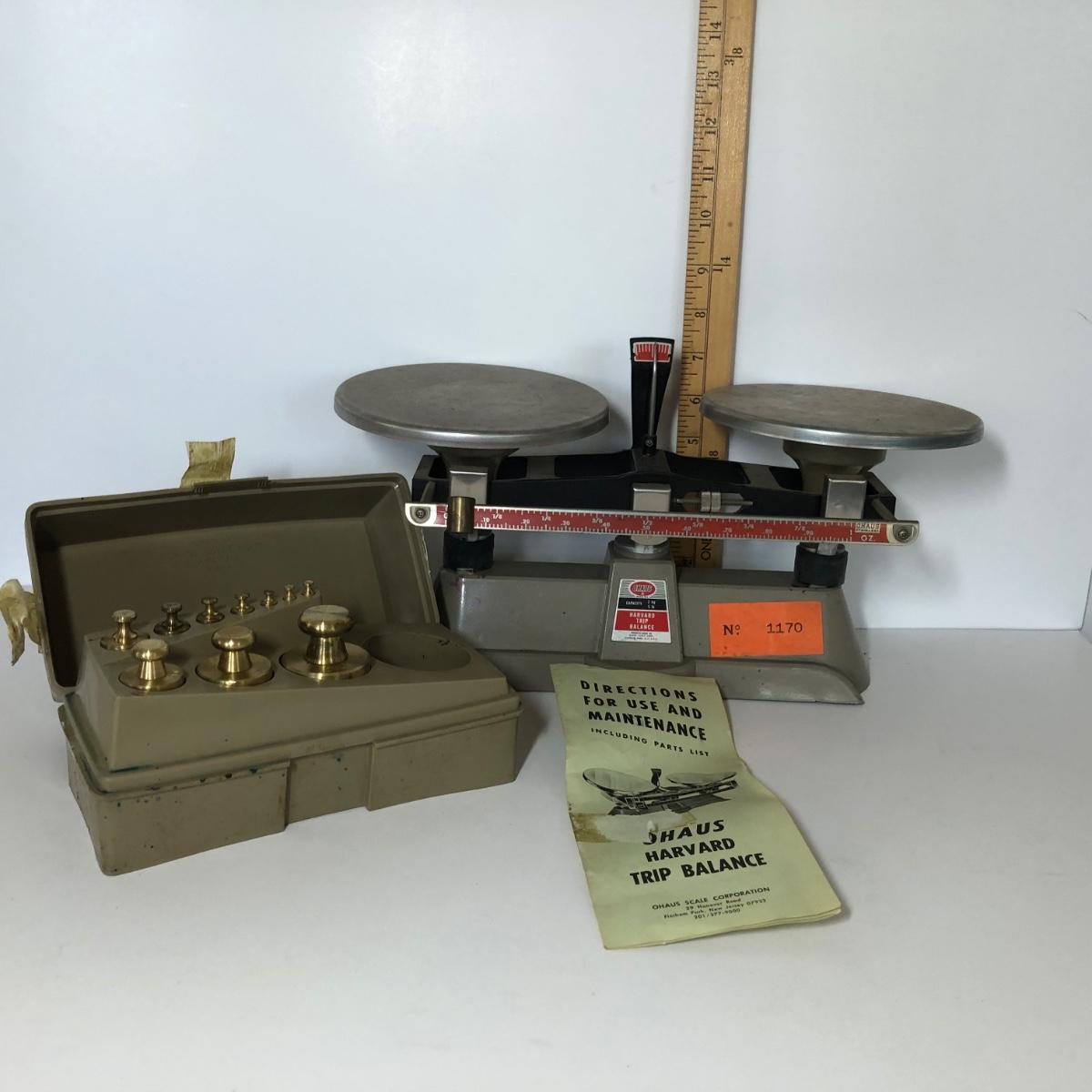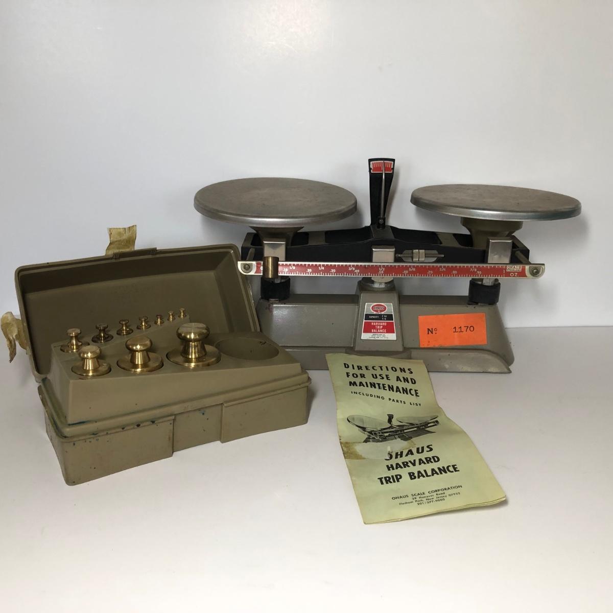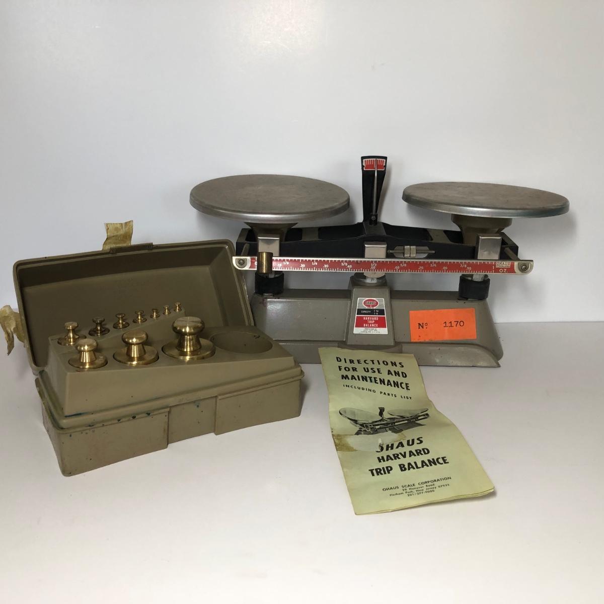 LOT 81M: Ohaus Harvard Trip Balance Scale No. 1170 & Ohaus Weight Set (incomplete)