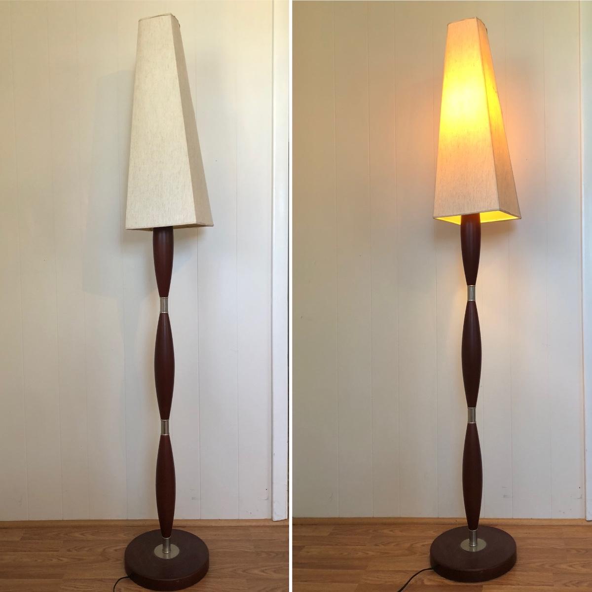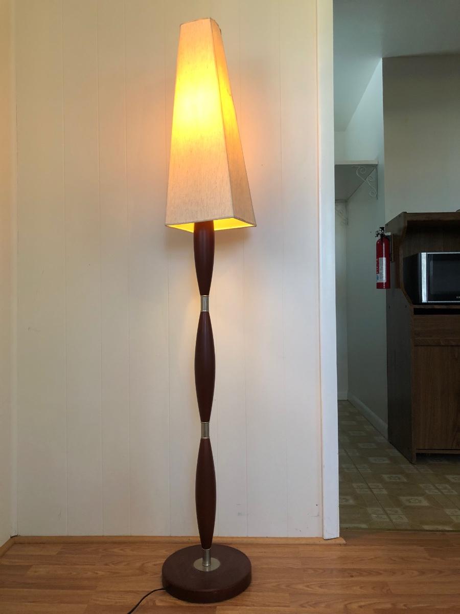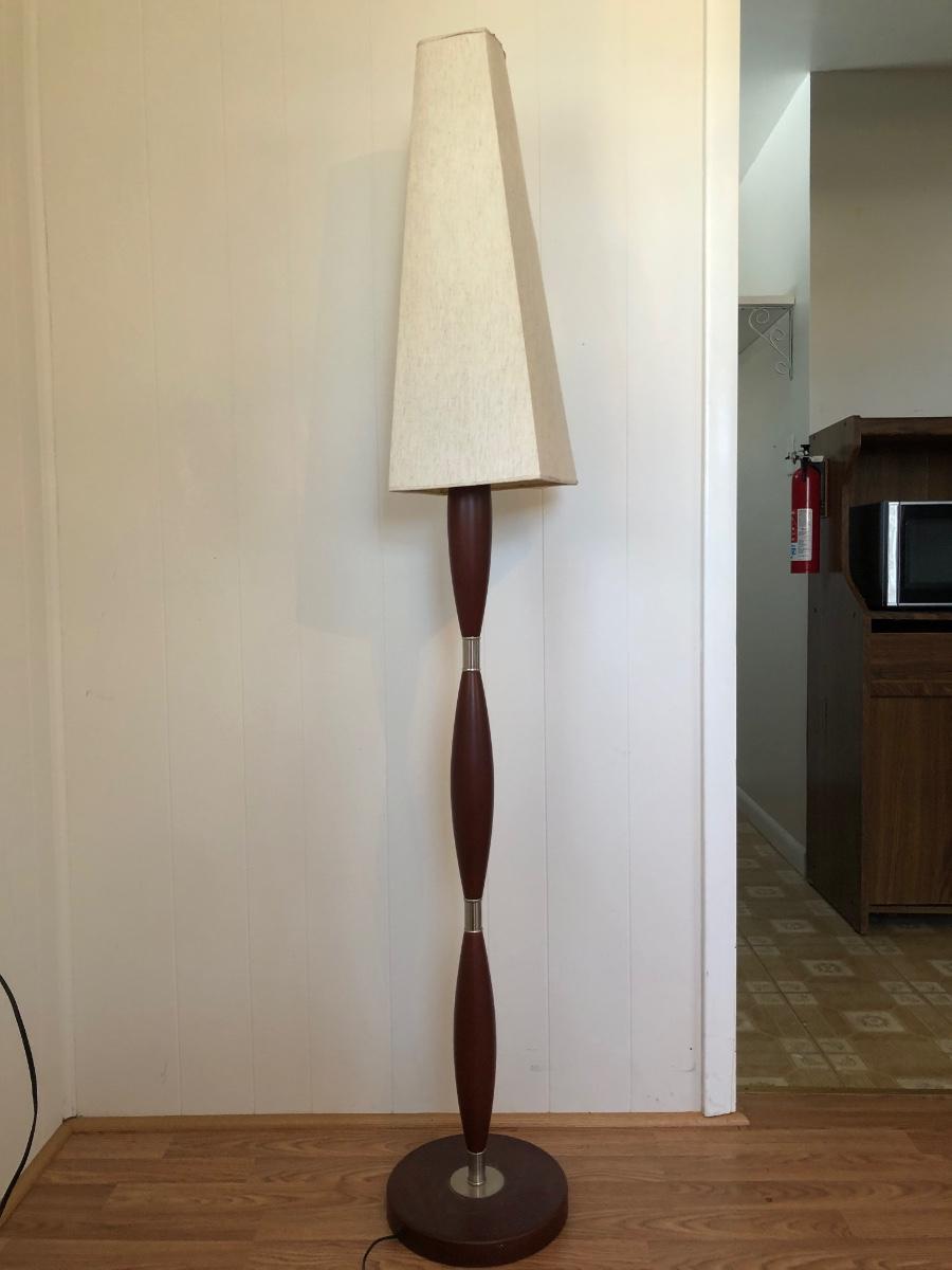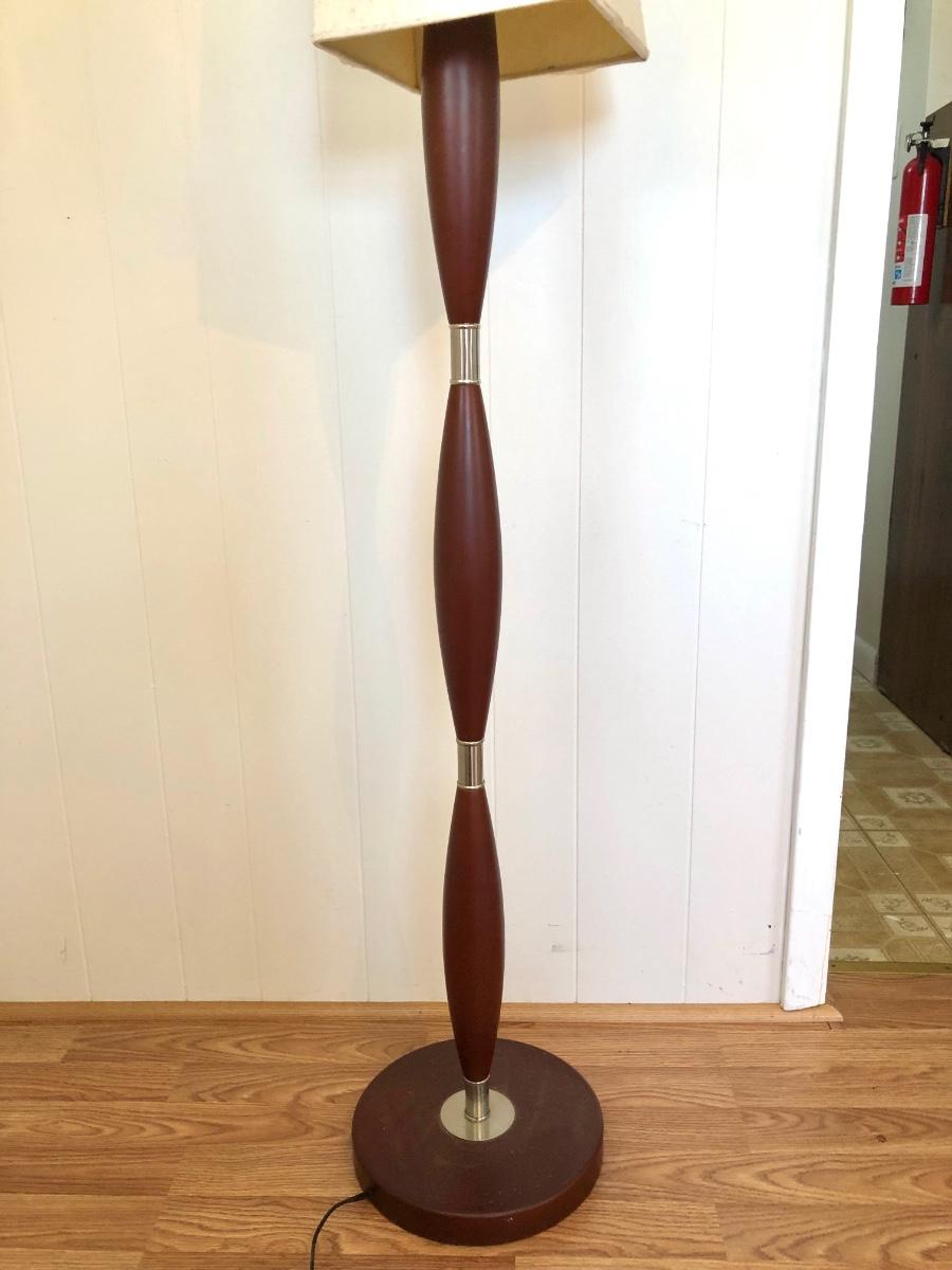 LOT 91M: MCM Wooden Floor Lamp w/Silver Accents