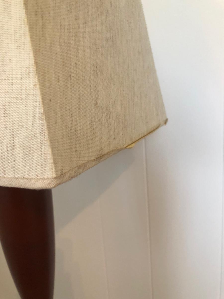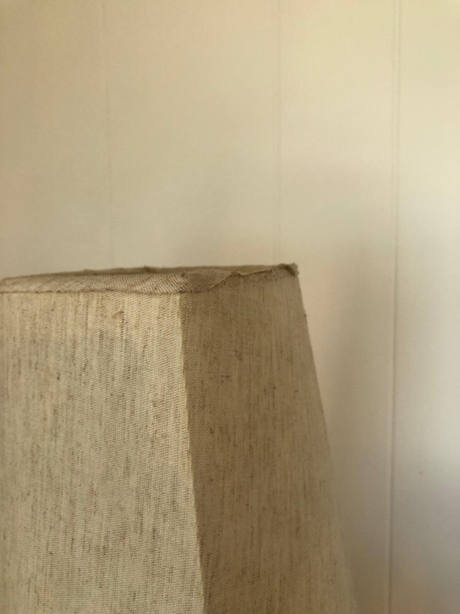 Lamp is in working condition and is 64 inches tall. There is small fraying on the lampshade (see photos).