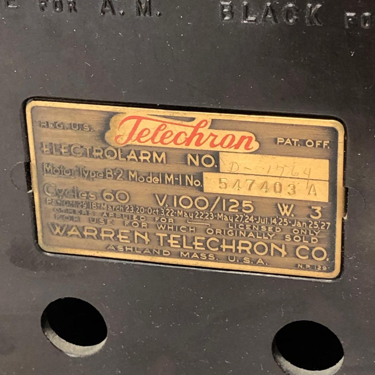 LOT 101M: Vintage Telchron Bakelite Electrolarm Clock Model M-1