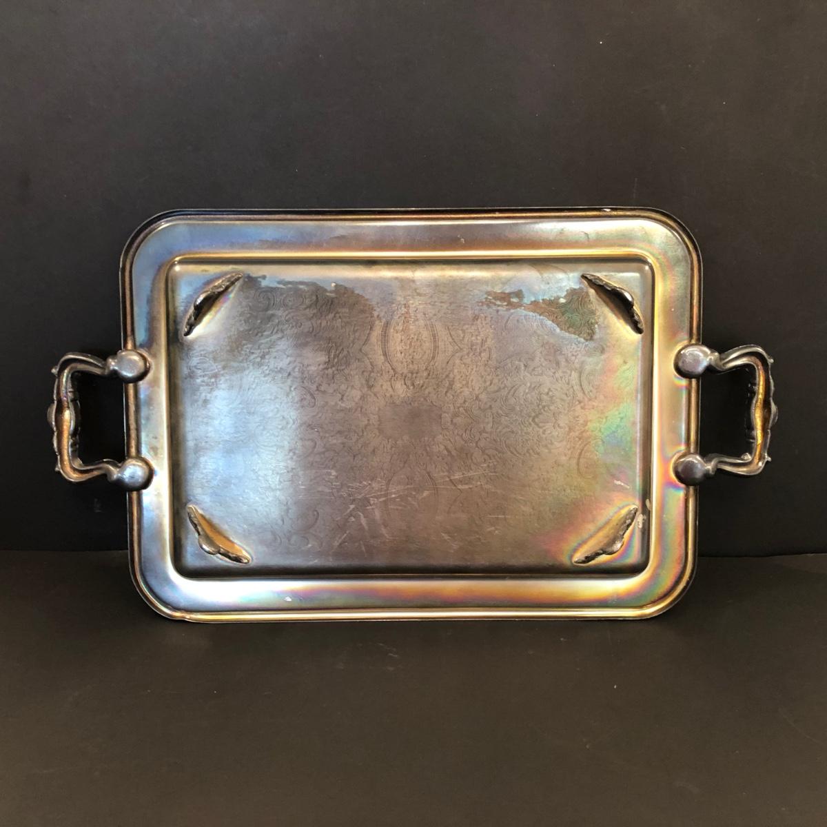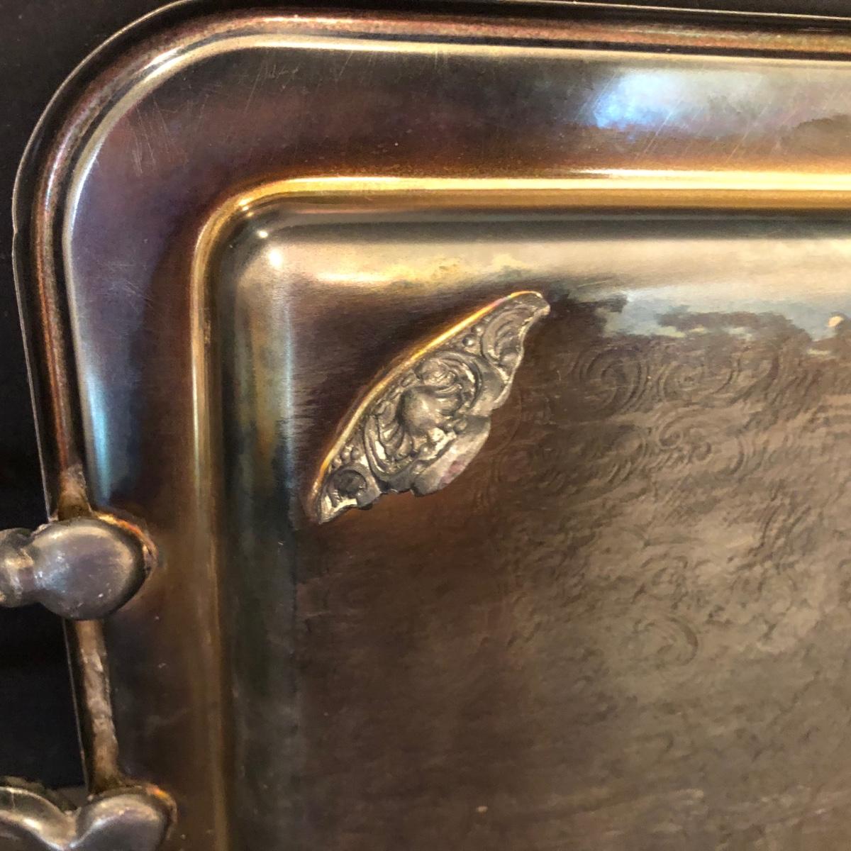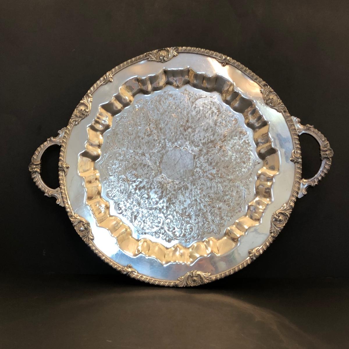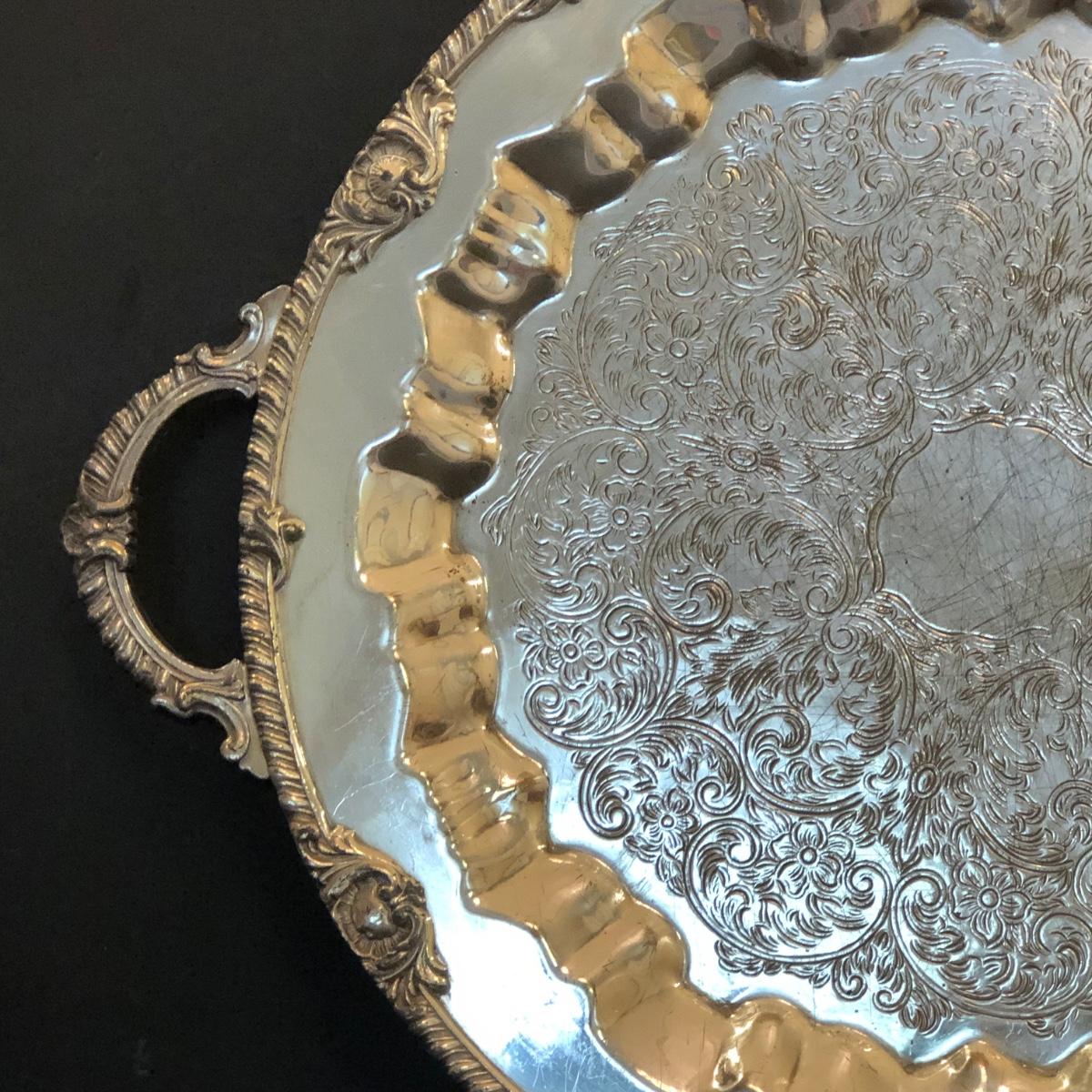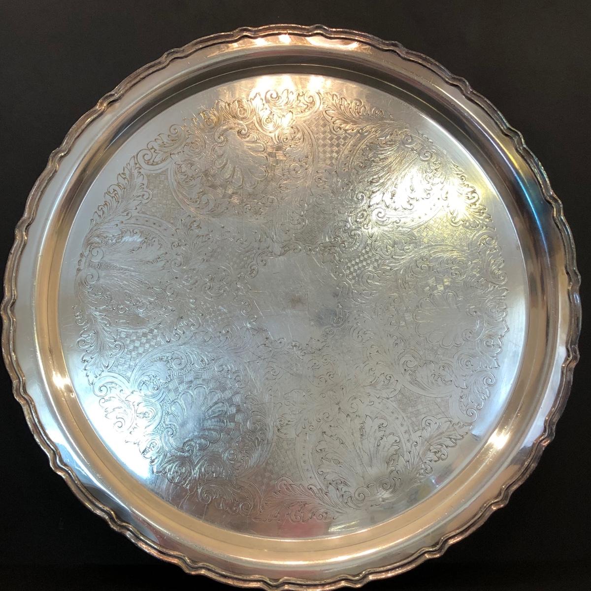 LOT 104M: Coronet Silver on Copper Platter & Silver Plate Serving Collection