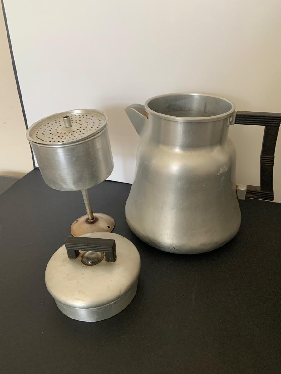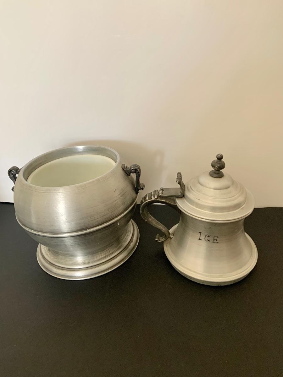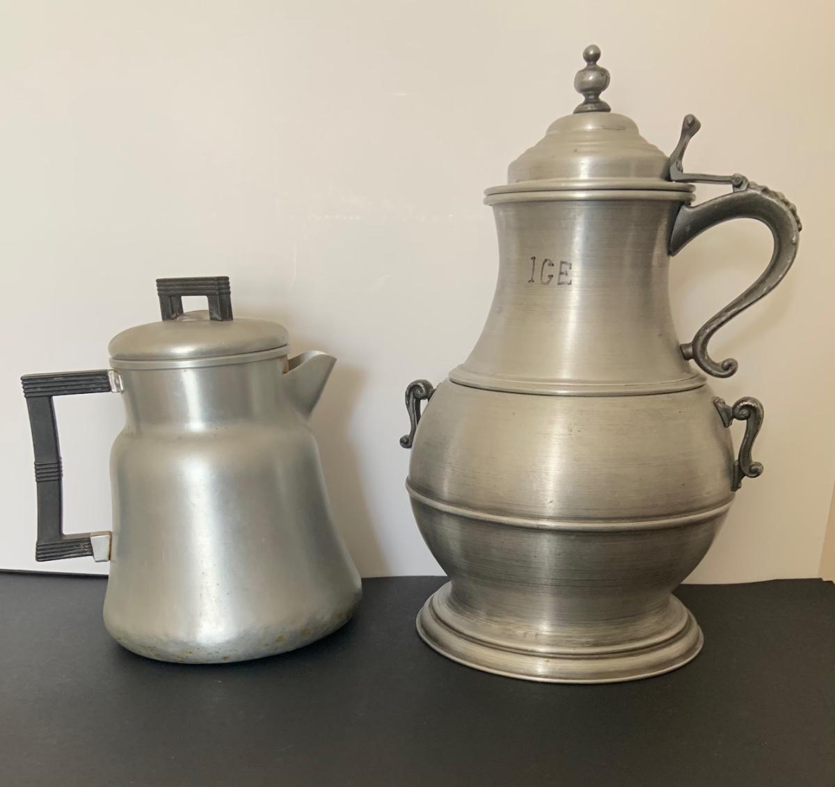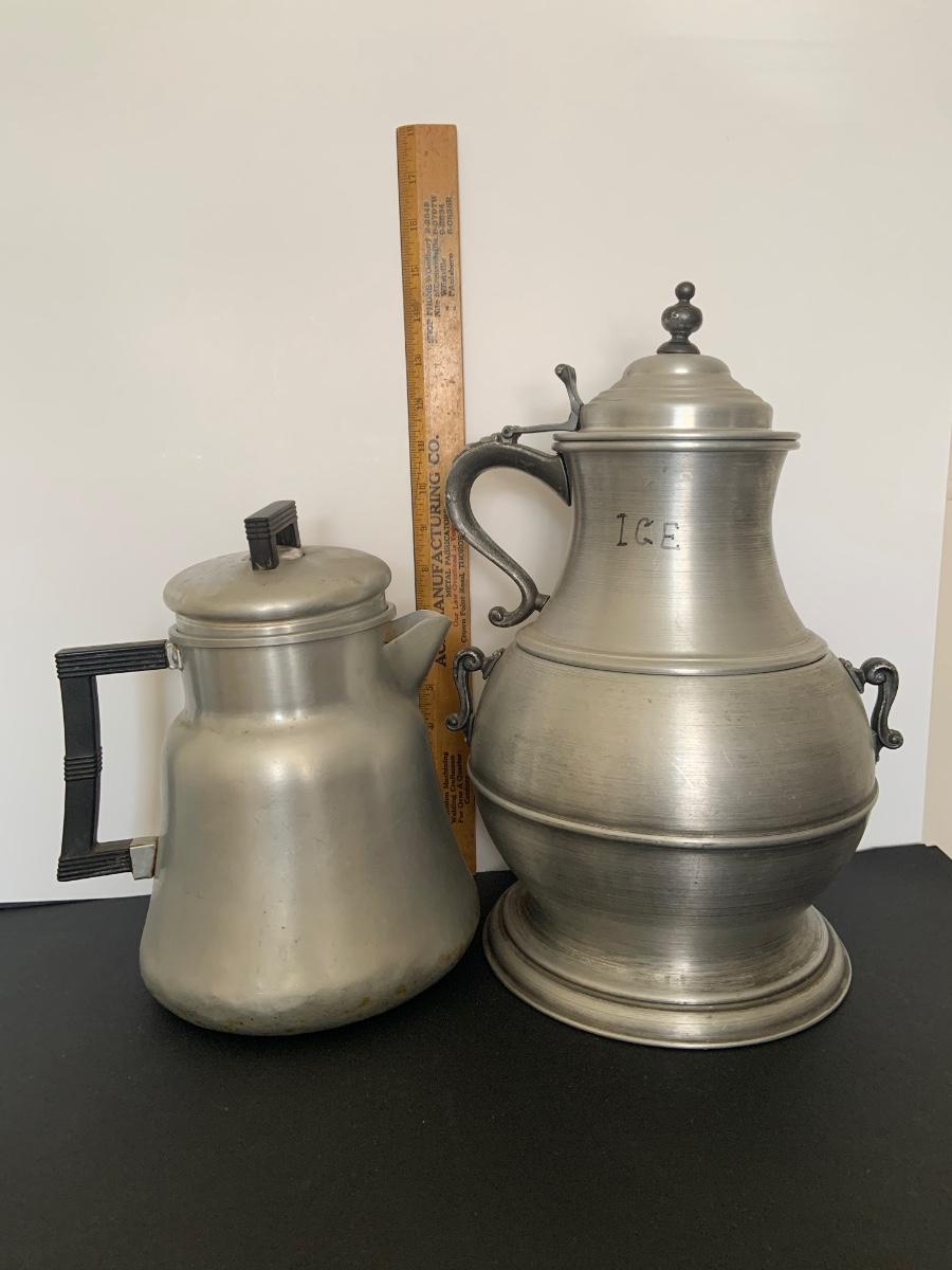 LOT:109G: Seymour Mann Olde Tankarware Pewtertone Faux Coffee Pot Ice Bucket and Wear-Ever Aluminum Coffee Pot