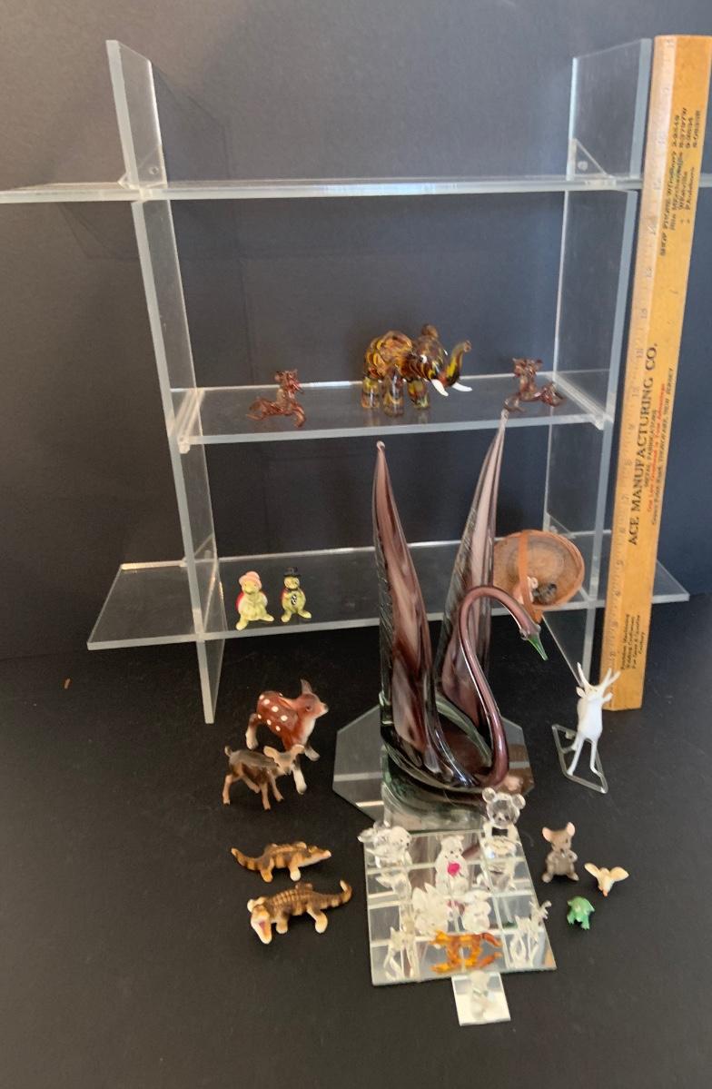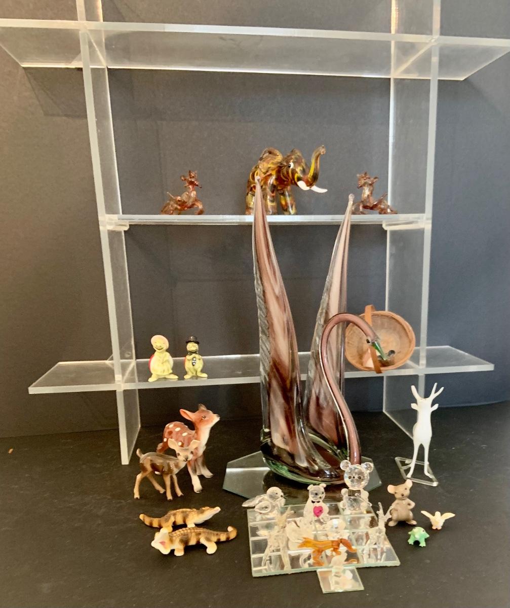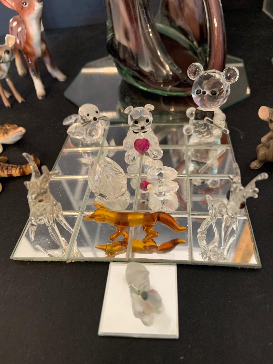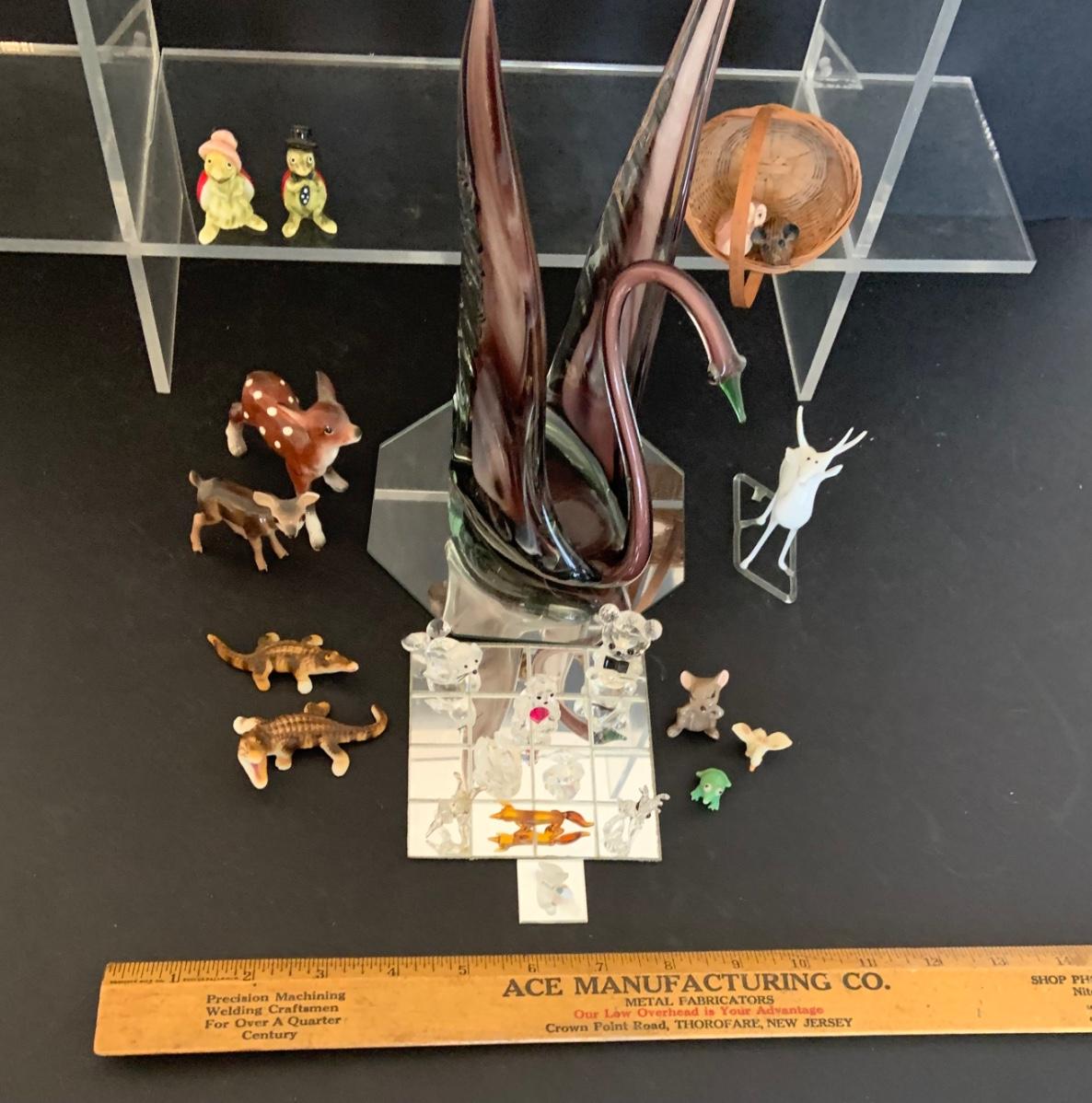 LOT:115G: Glass Menagerie Part 2: Including Pulled Glass Swan, Crystal Bears, Seal & Other Animals, Porcelain Deer, Mouse Ladybugs Glass Elephant and More