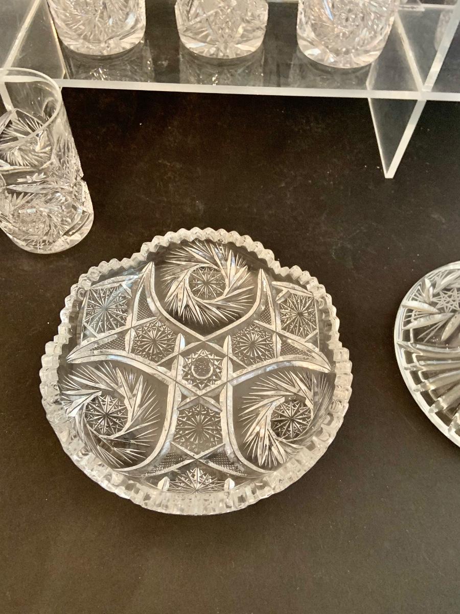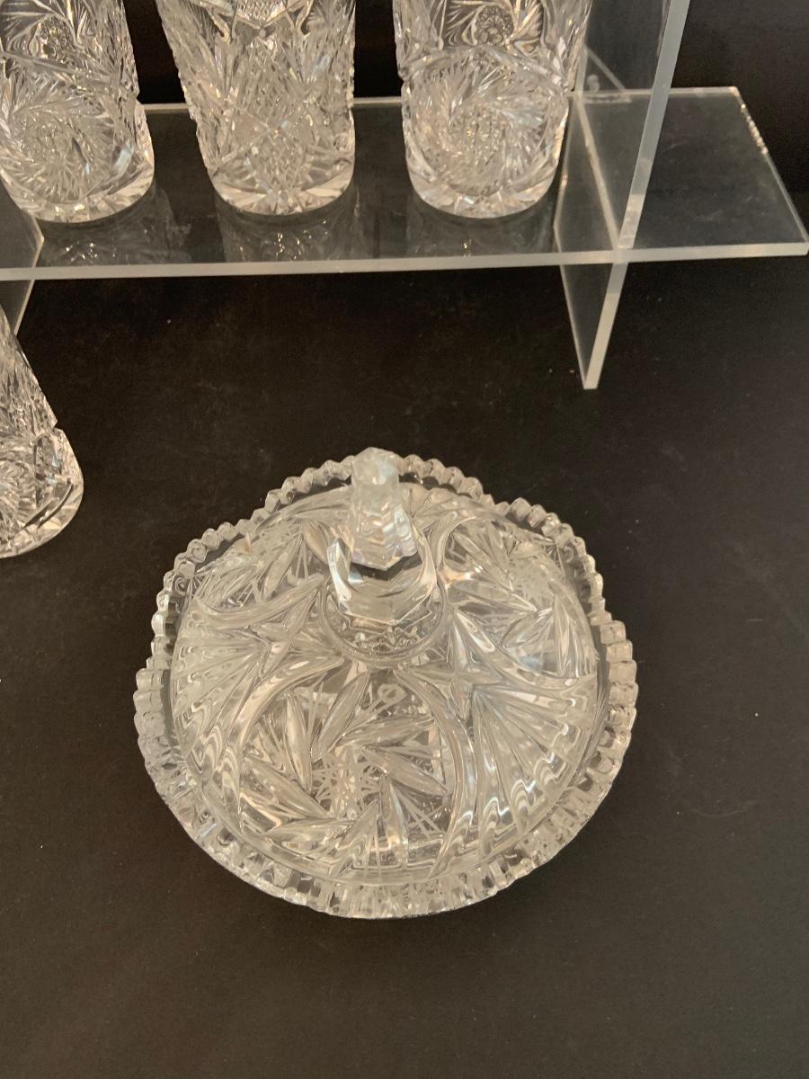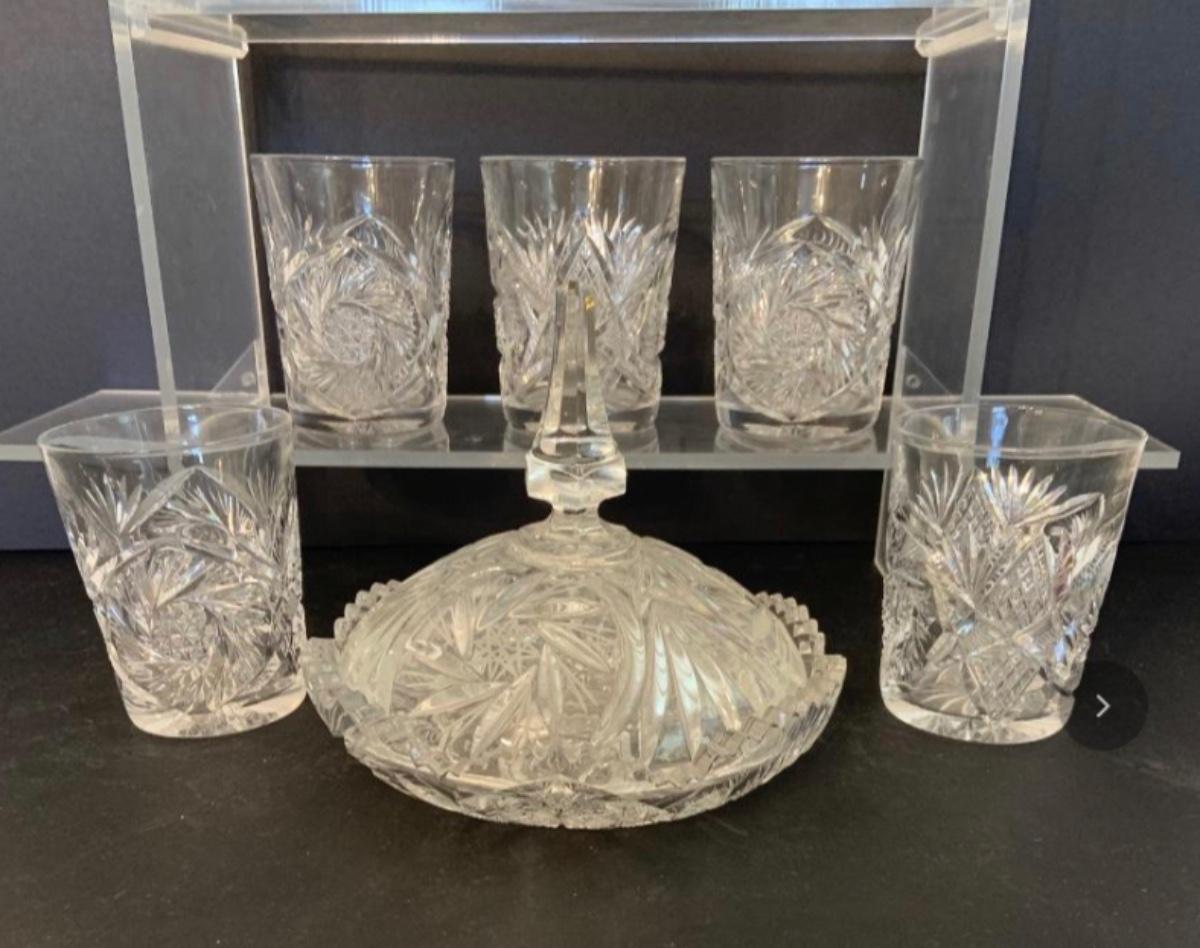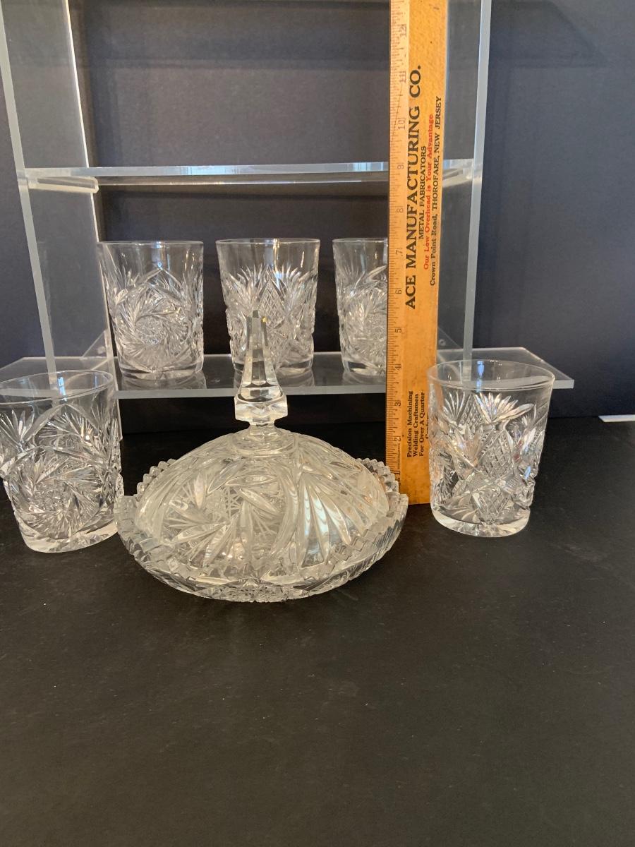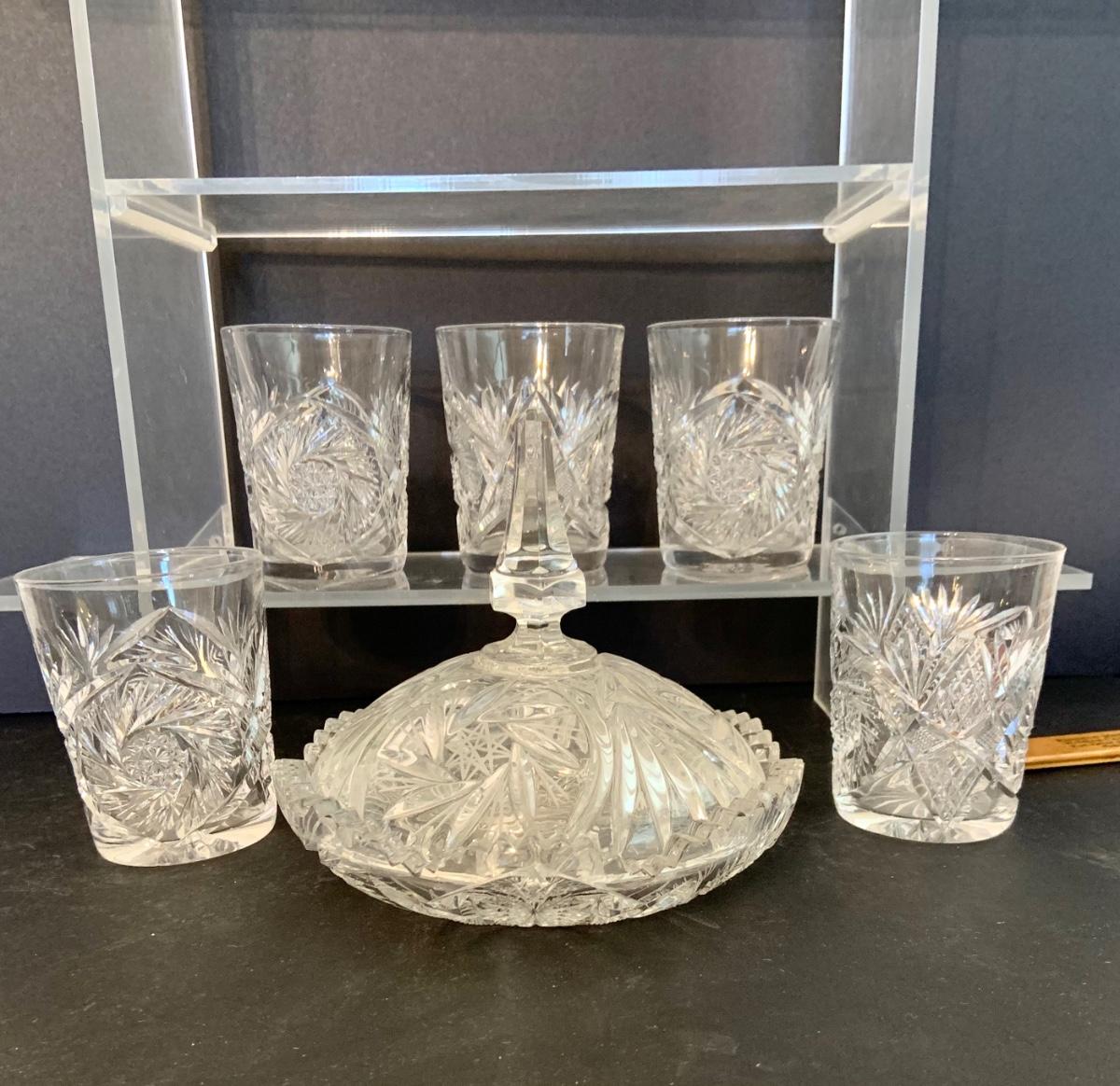 LOT:116G: Crystal Tumblers and Covered Candy Dish